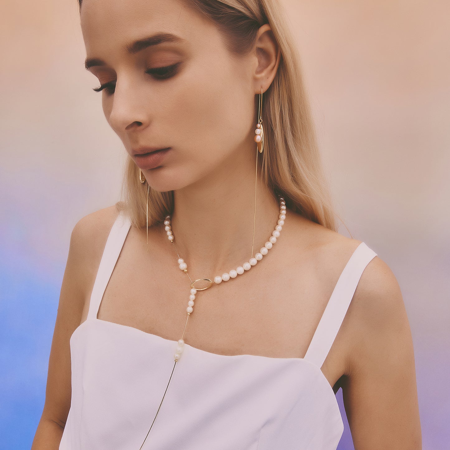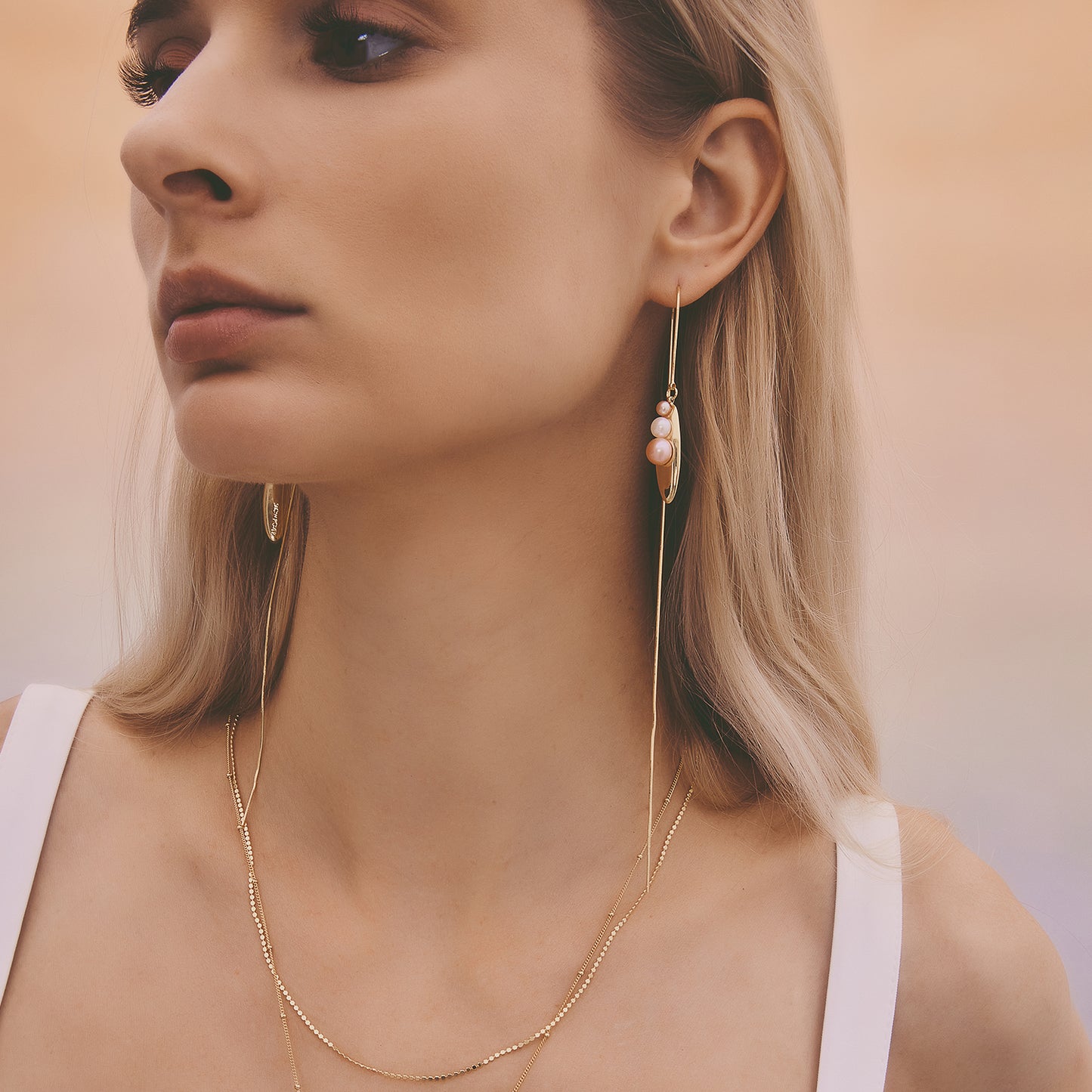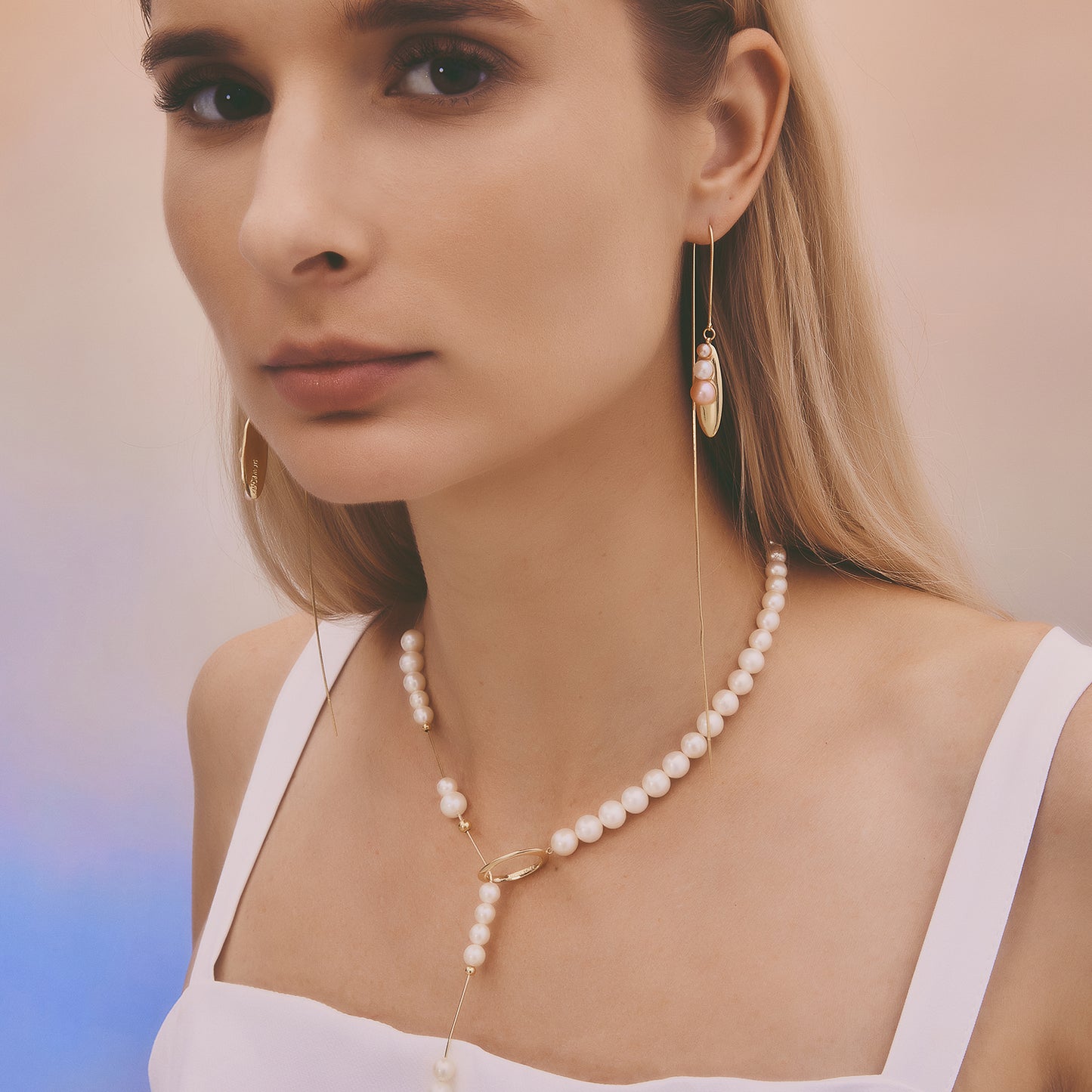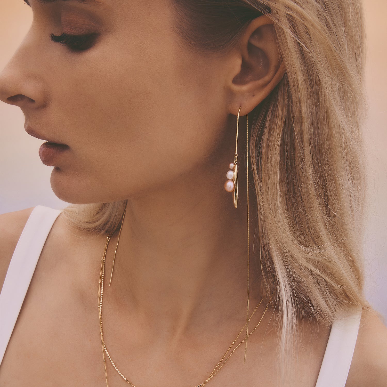 多重宇宙系列 - 時空旅行珍珠長耳線 - 厚鍍18K金