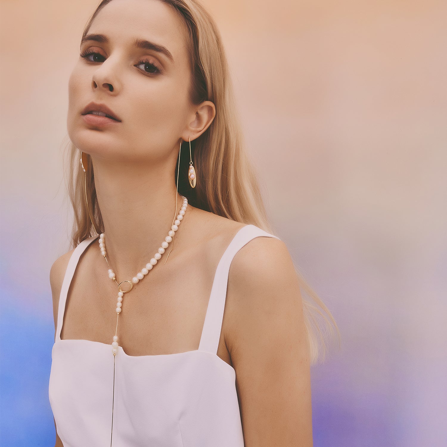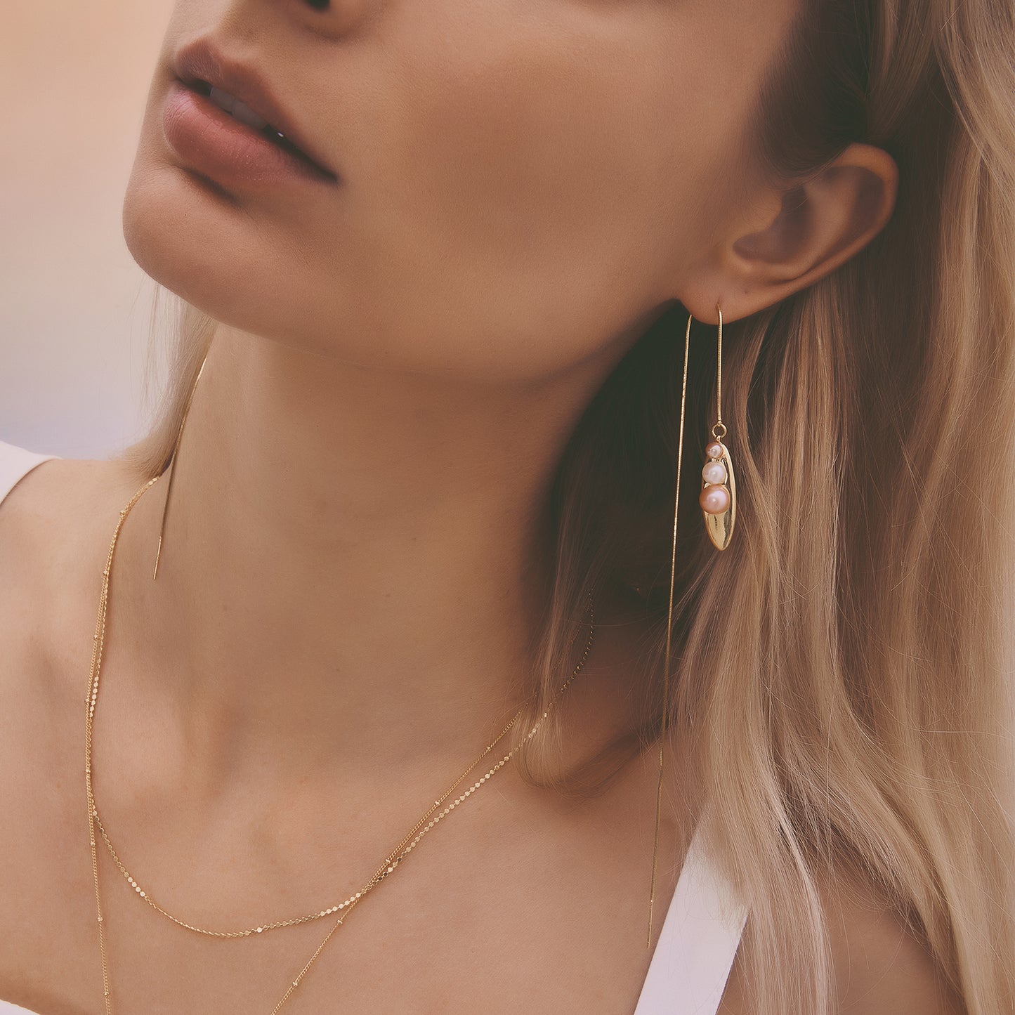 多重宇宙 時空旅行珍珠長耳線-厚鍍18K金