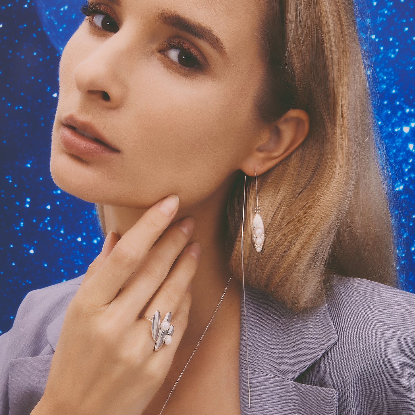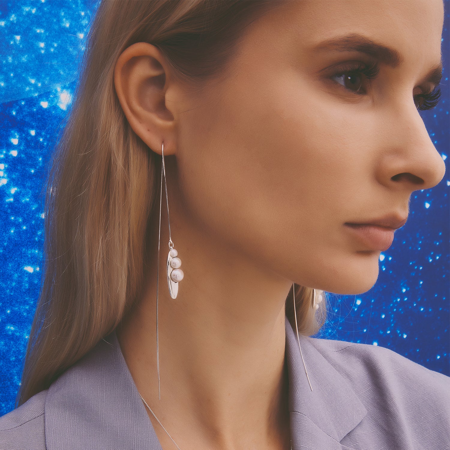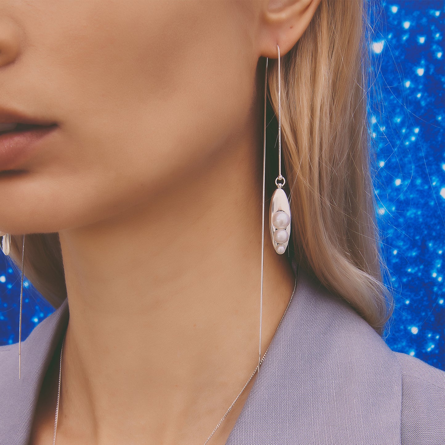 多重宇宙系列 - 時空旅行珍珠長耳線-純銀