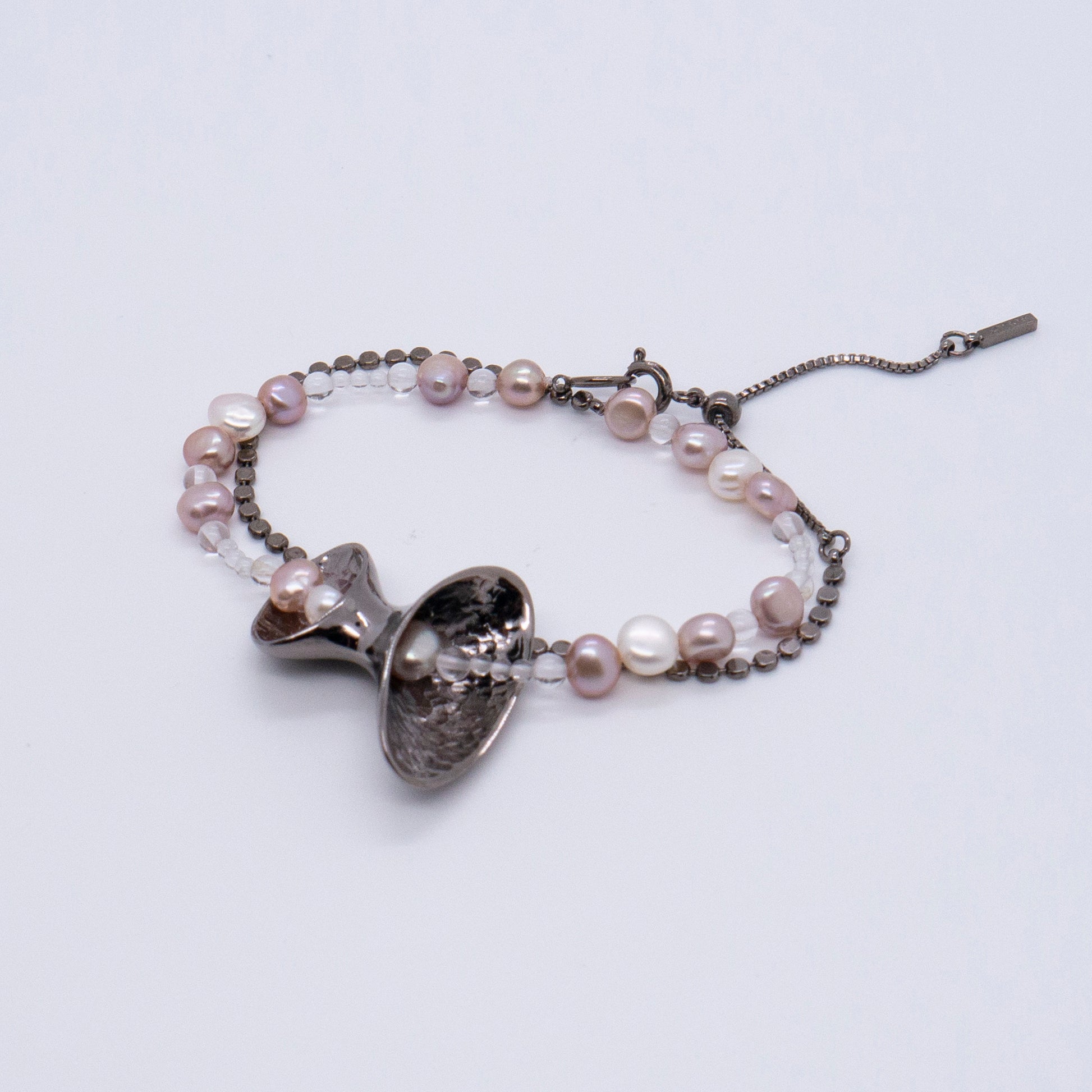 - 材質:黃銅厚鍍黑金、天然淡水珍珠、白水晶