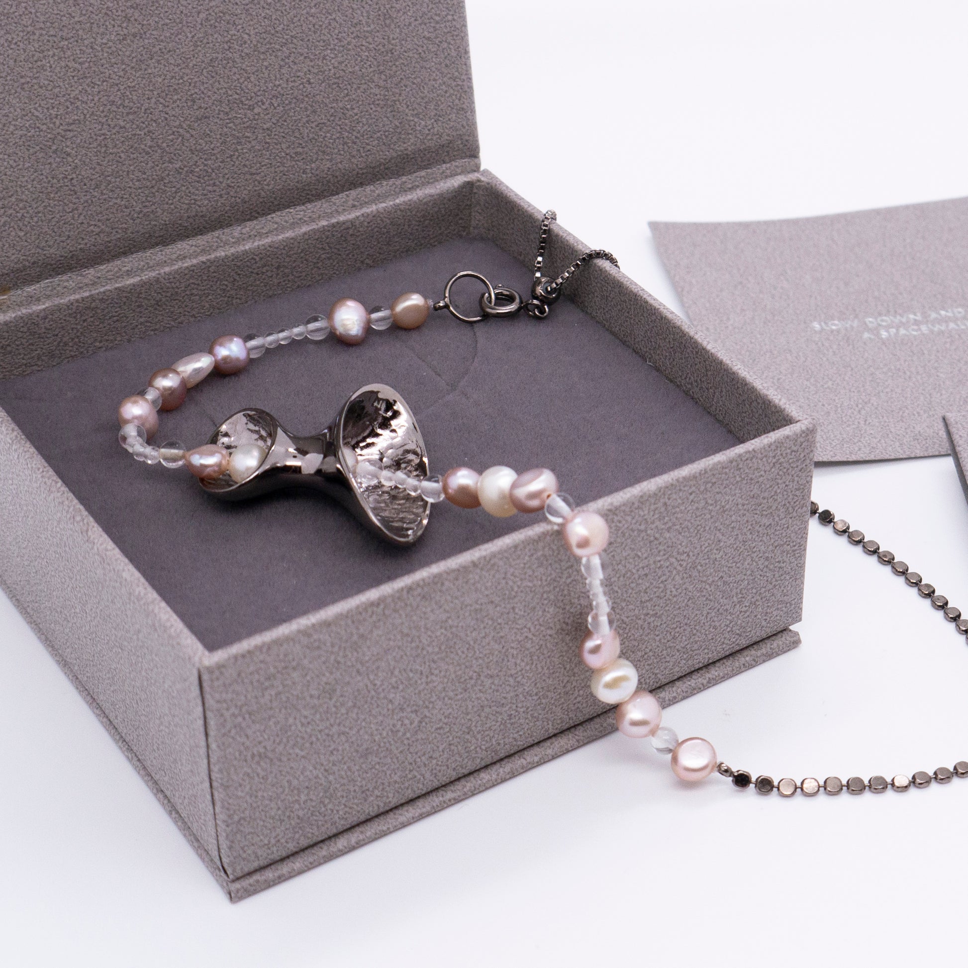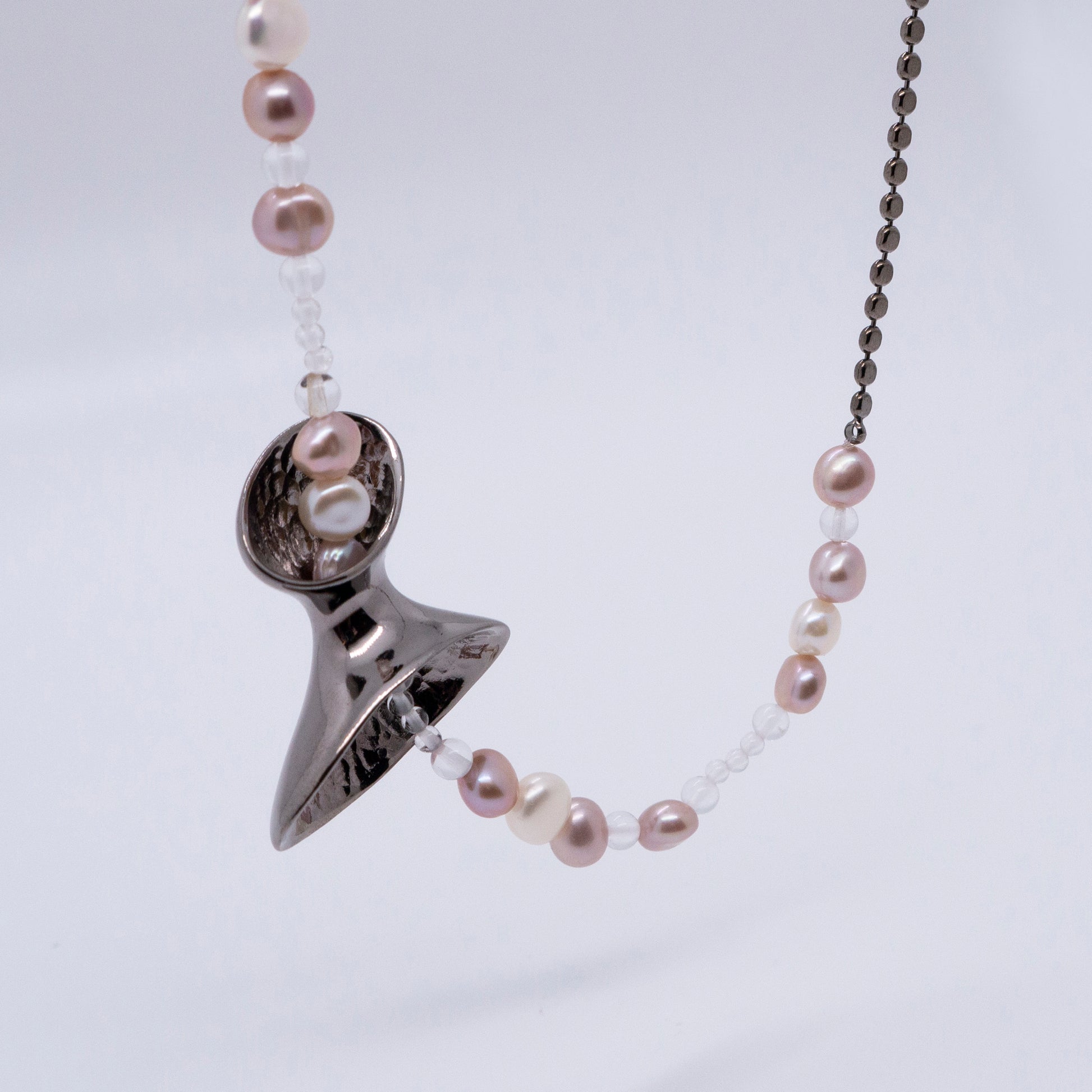 多重宇宙系列 - 蟲洞珍珠手鍊/項鍊 - 厚鍍黑金