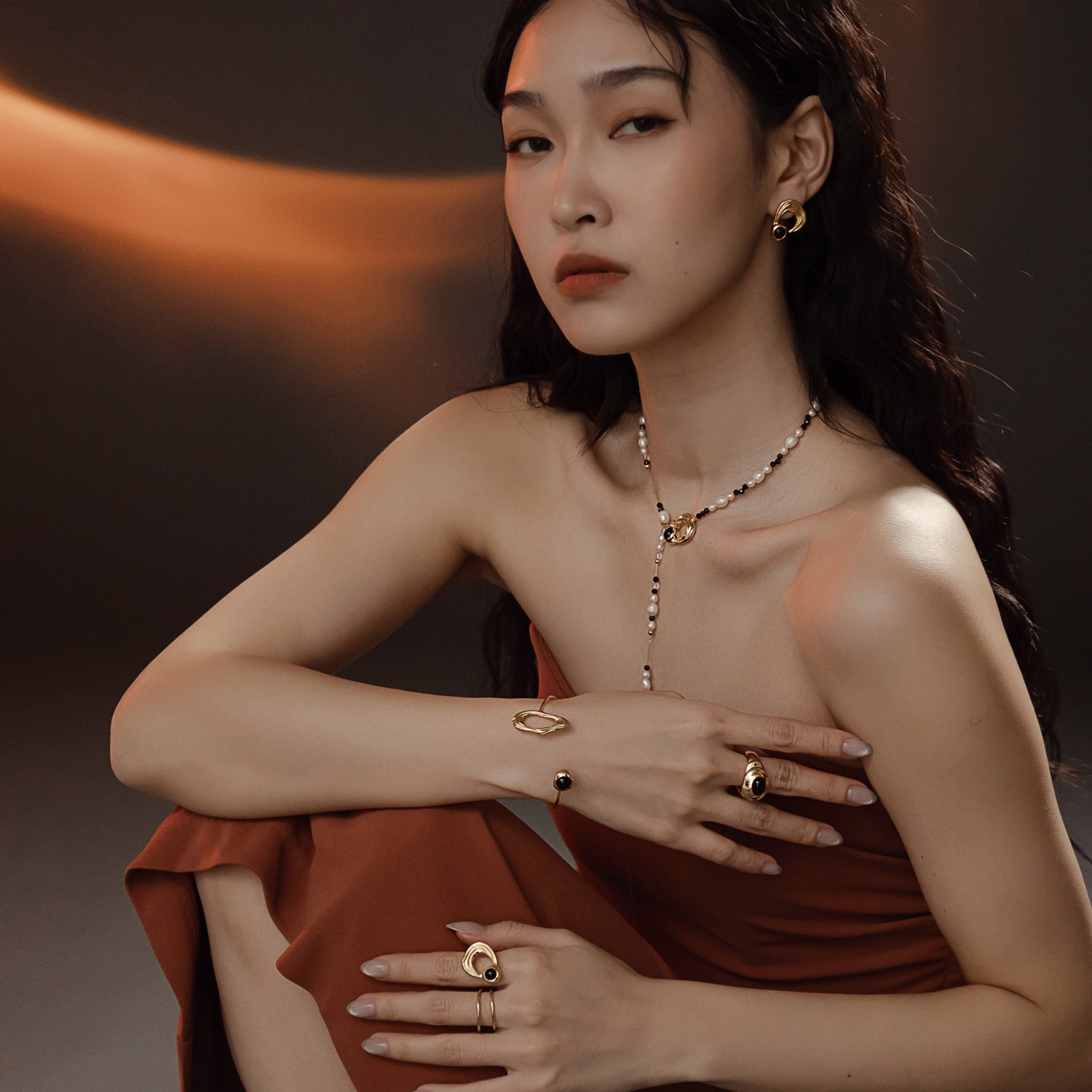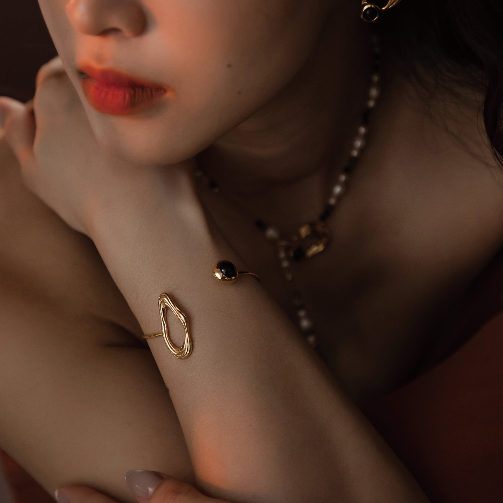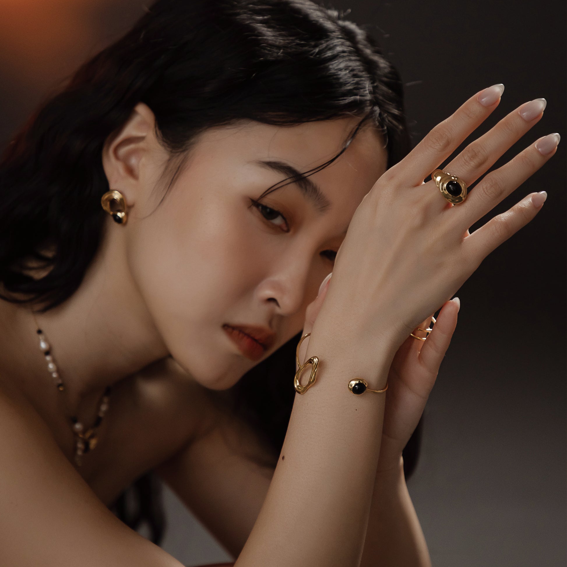 - 材質:黃銅厚鍍18K金、黑瑪瑙石