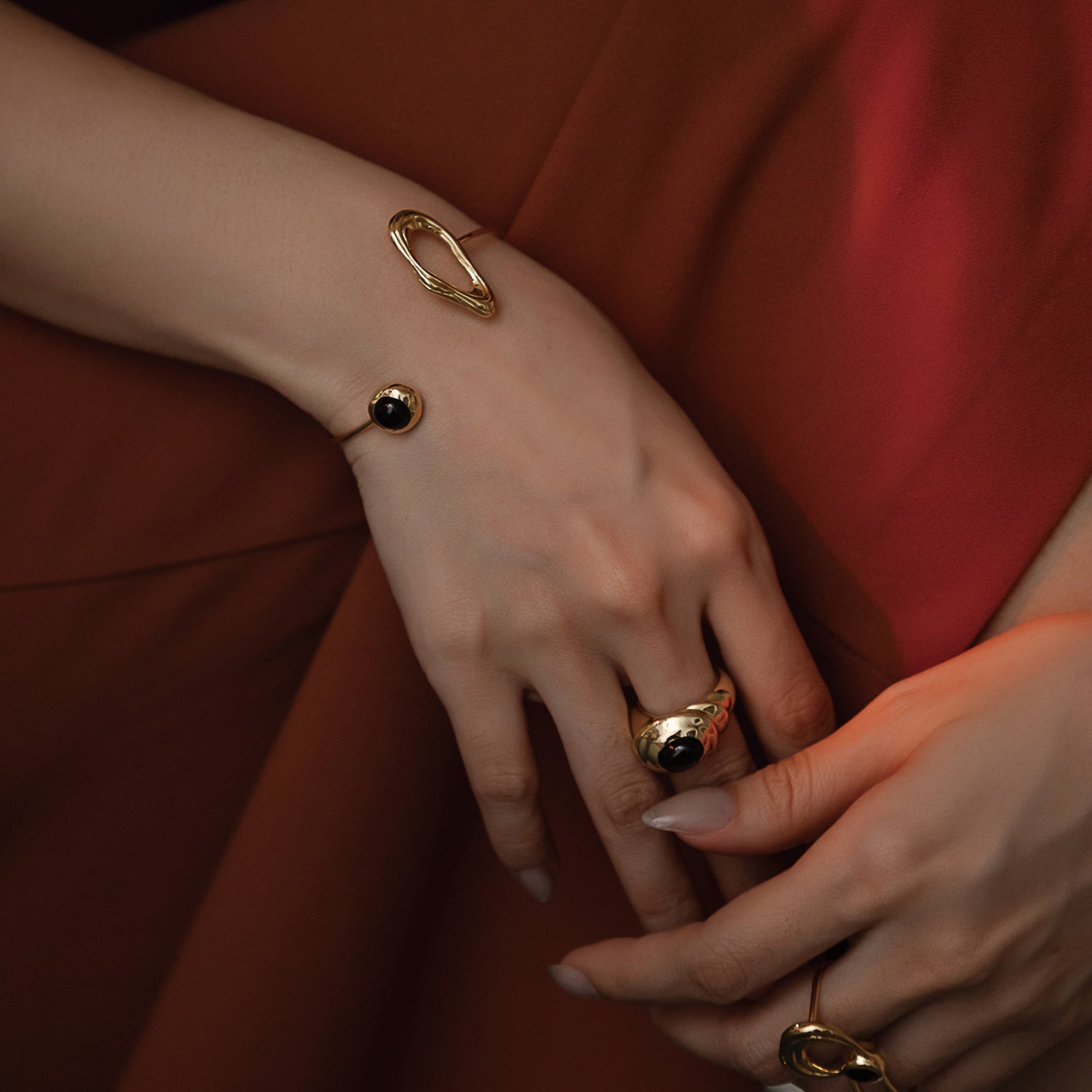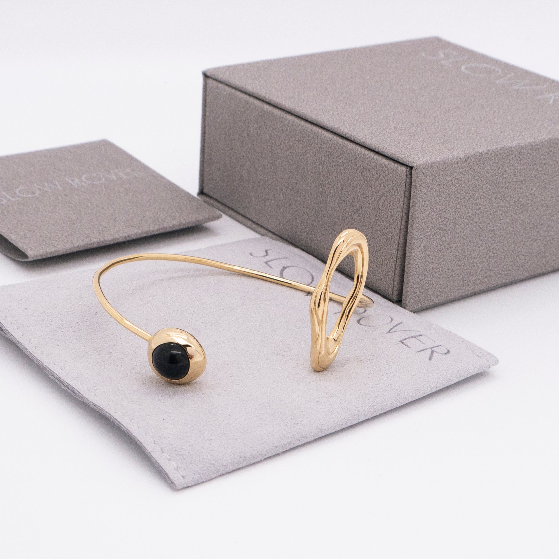 太陽閃焰系列 冕環黑瑪瑙石手環-厚鍍18K金