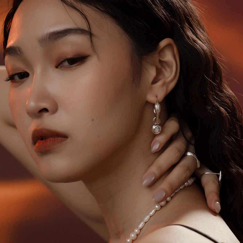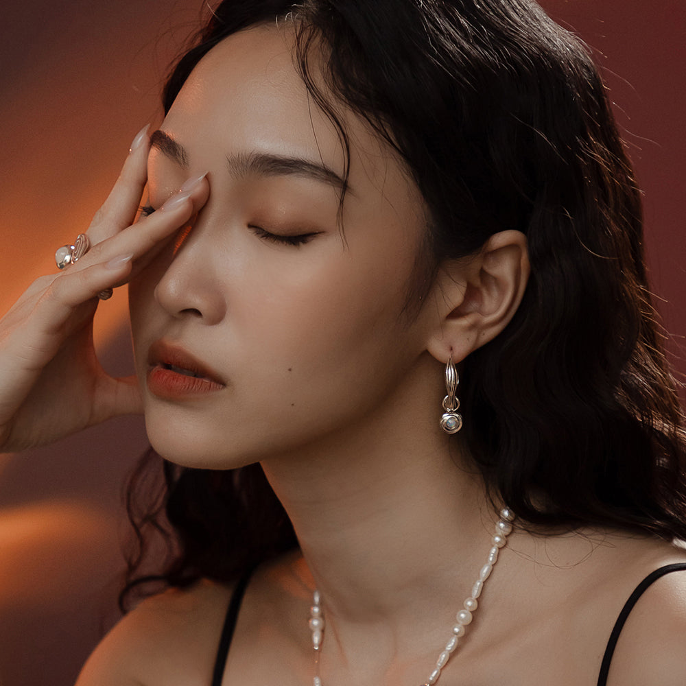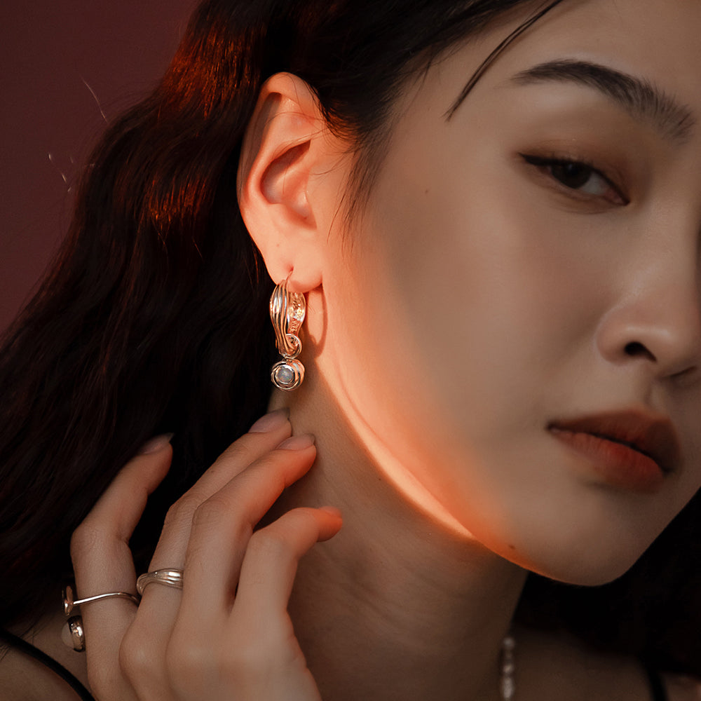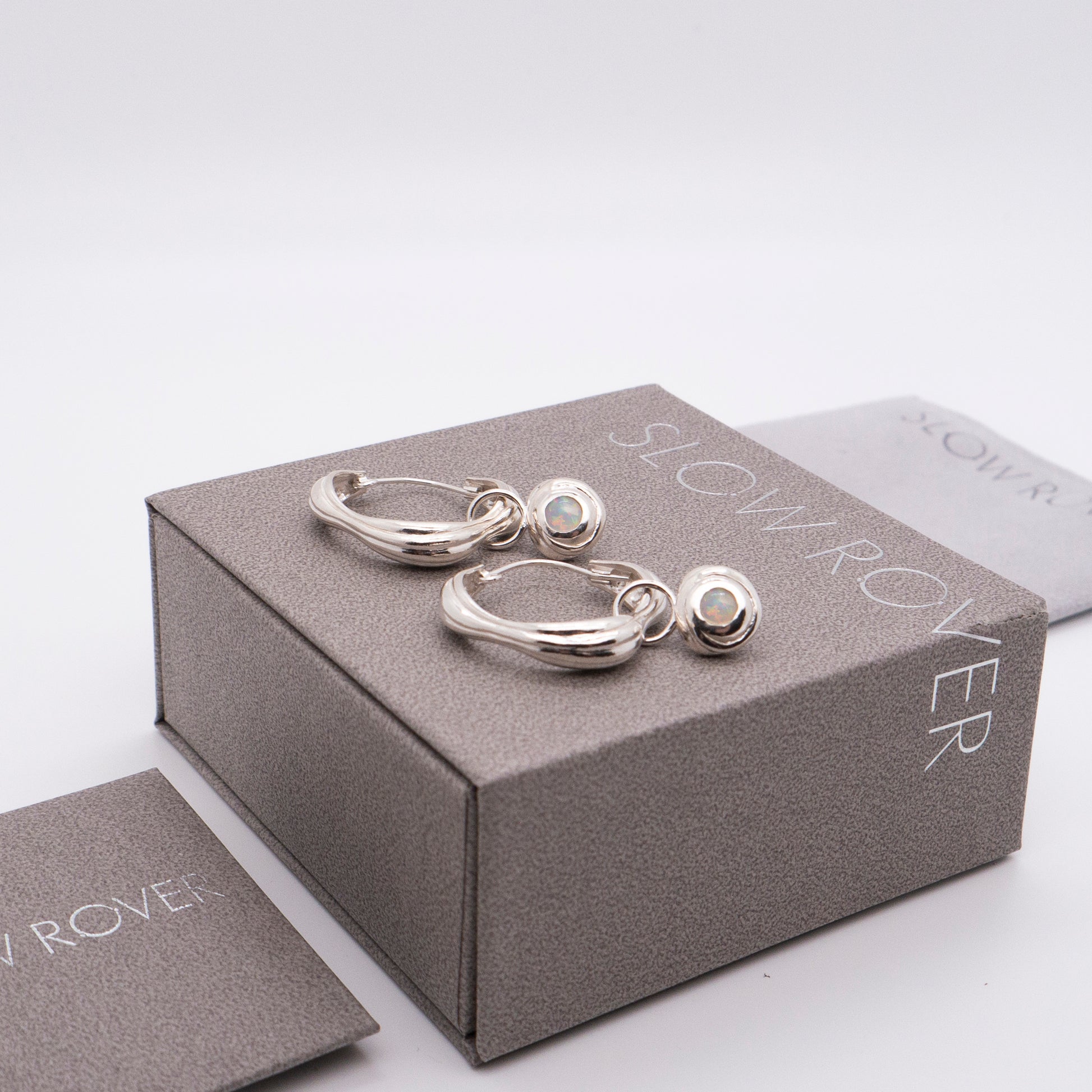 太陽閃焰系列 冕雨蛋白石耳環-純銀