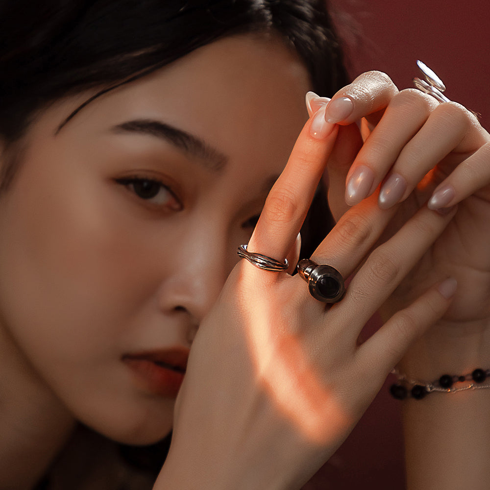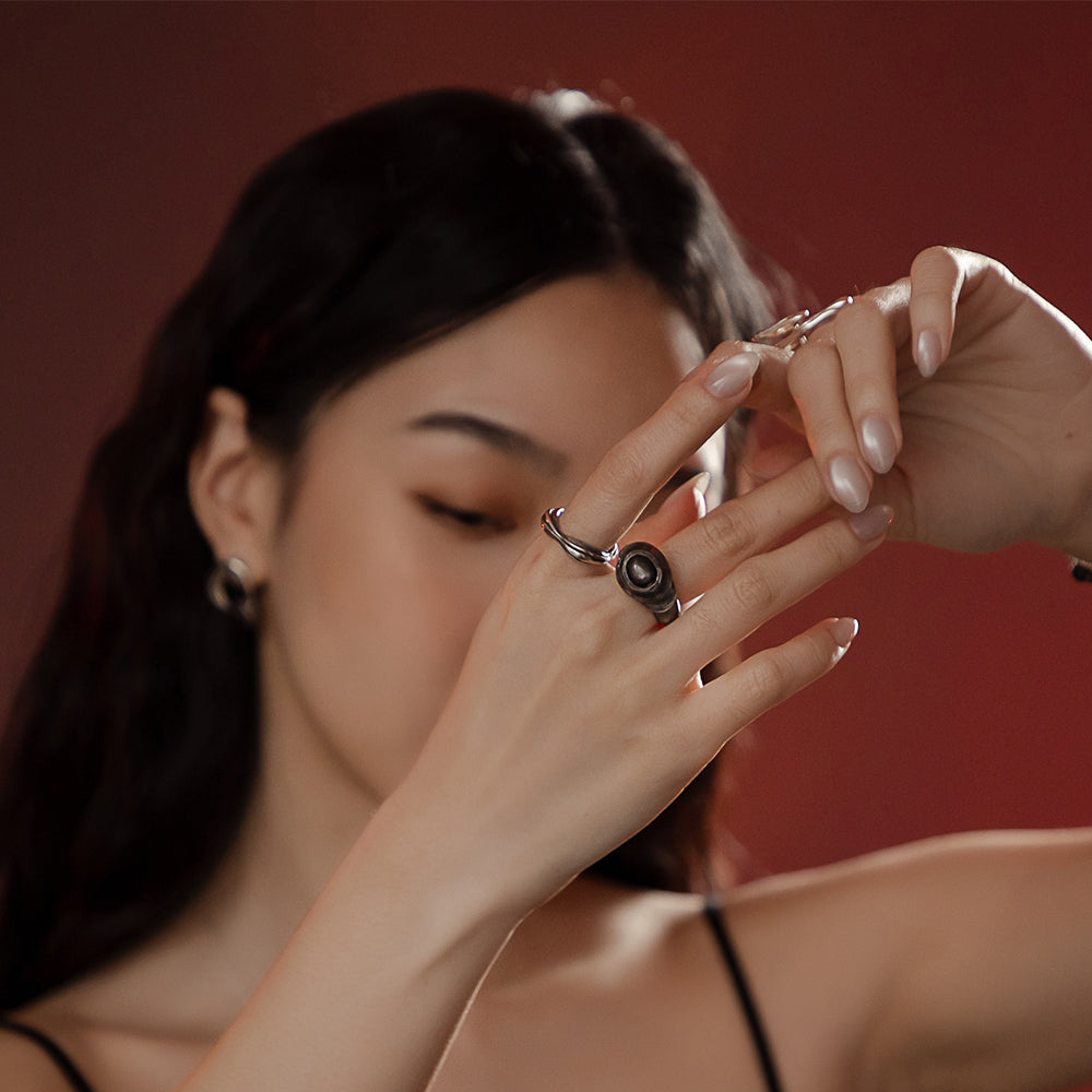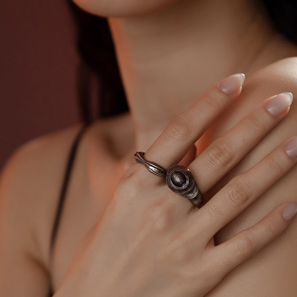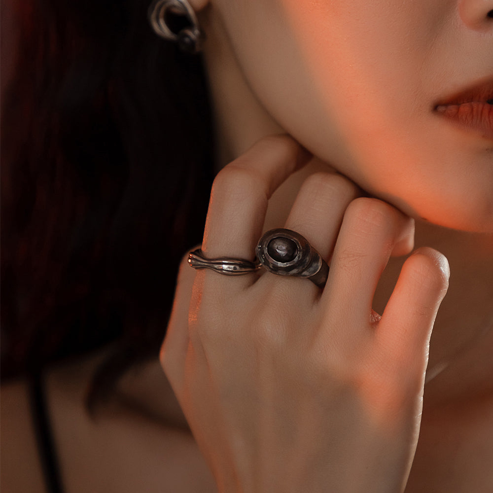 太陽閃焰系列 冕雨戒指-純銀染黑