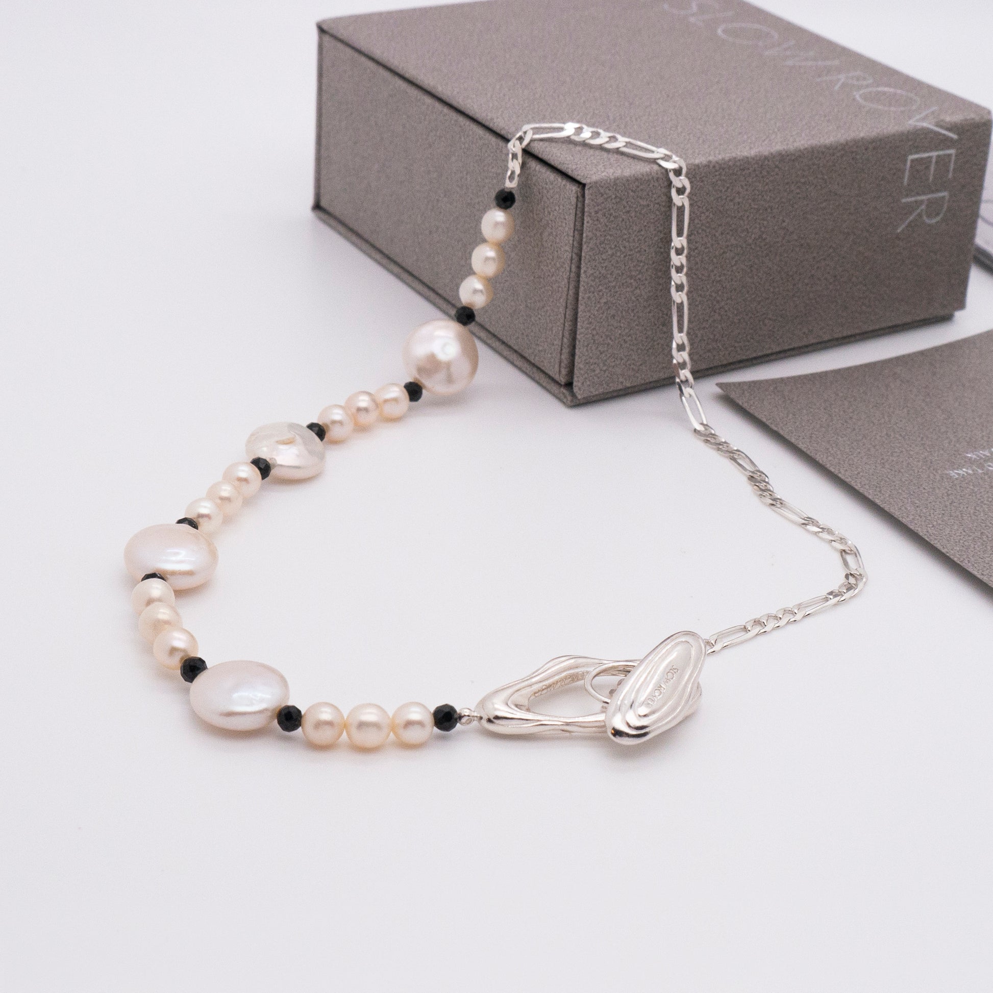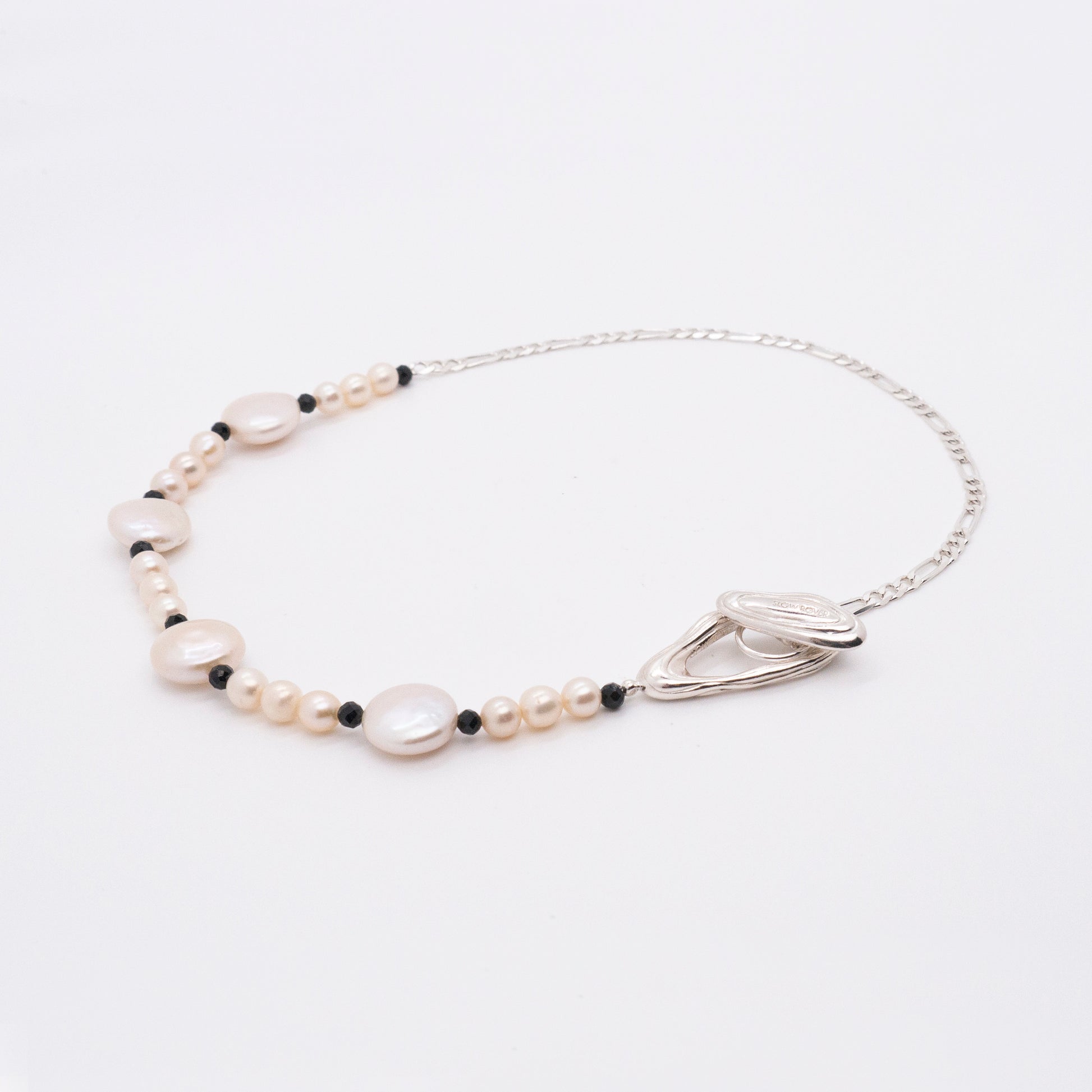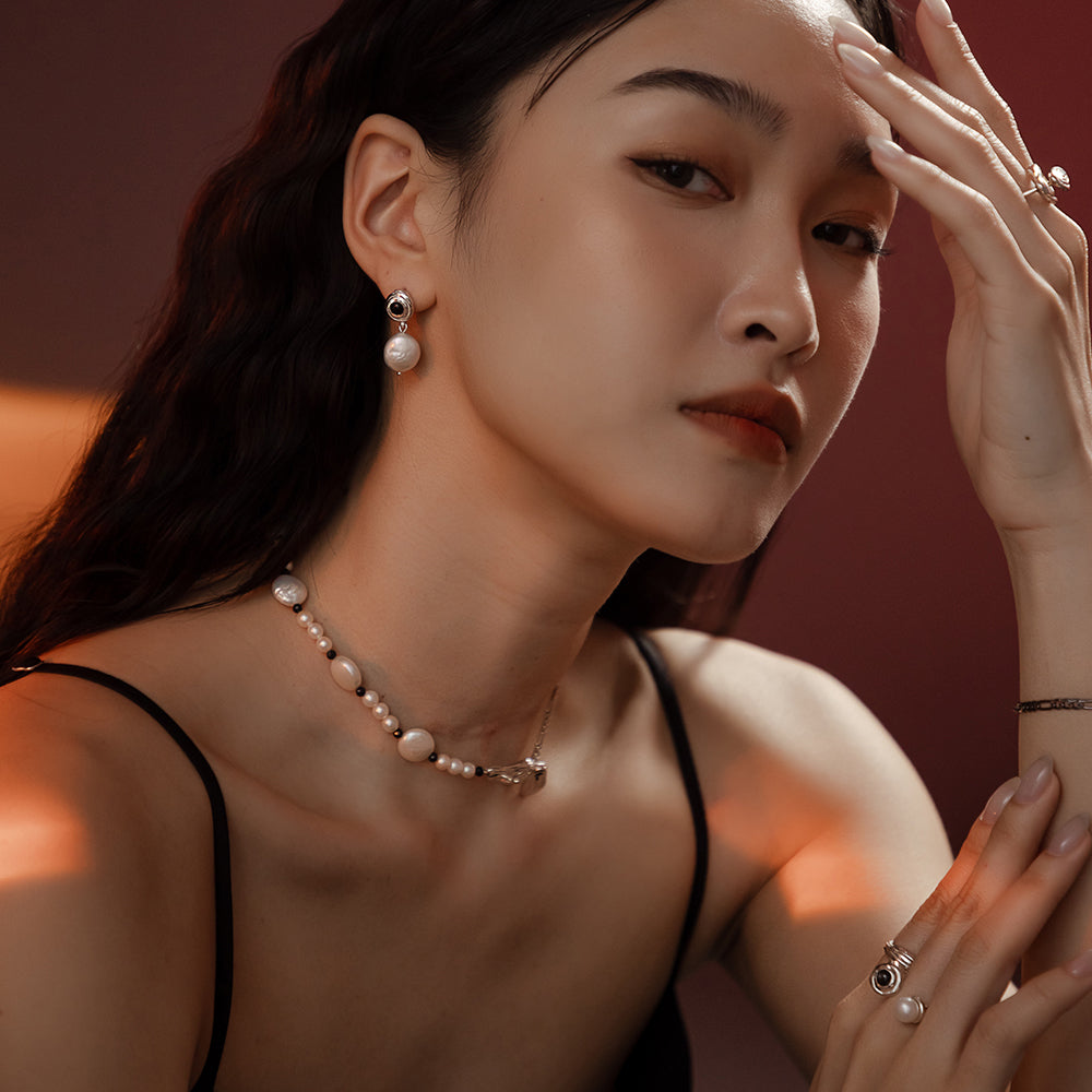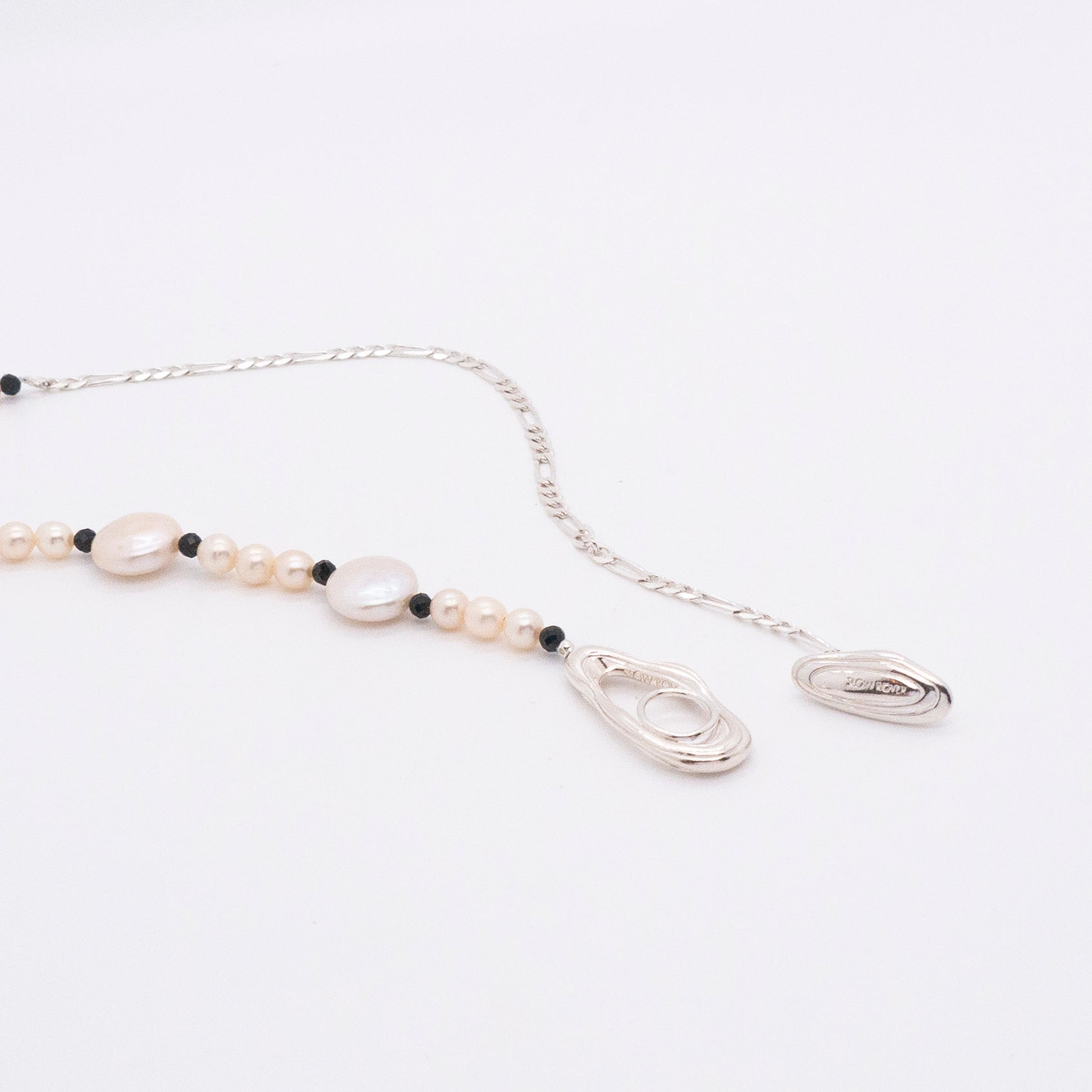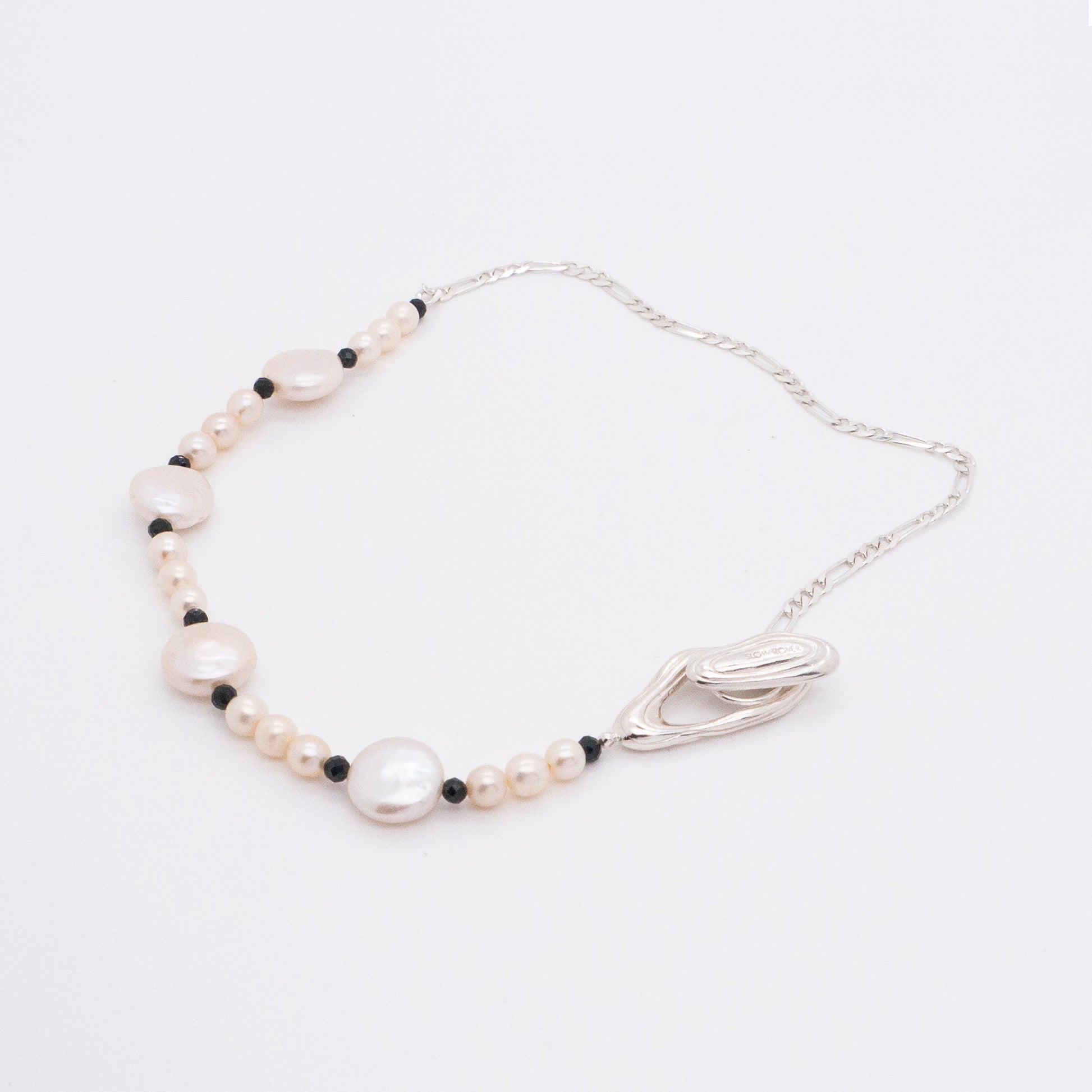 - 材質:純銀、天然淡水珠、黑尖晶石
