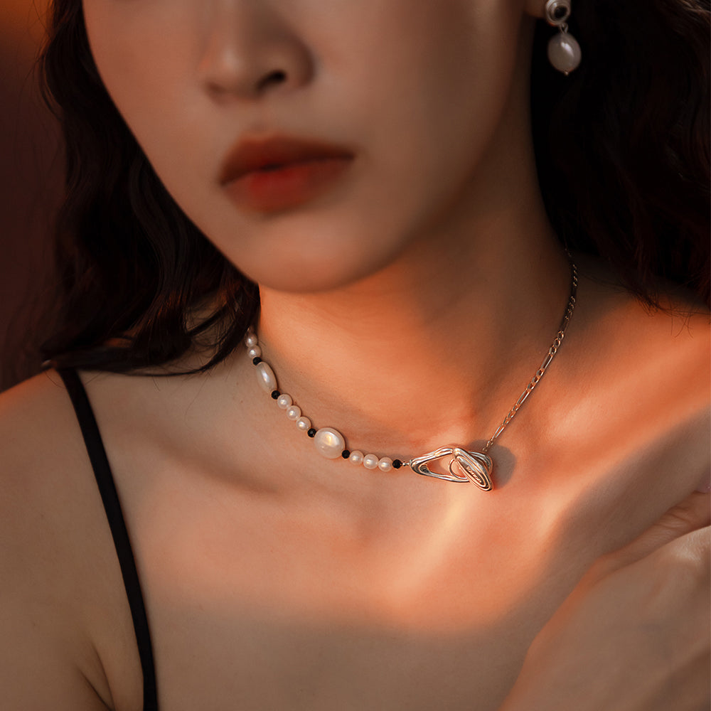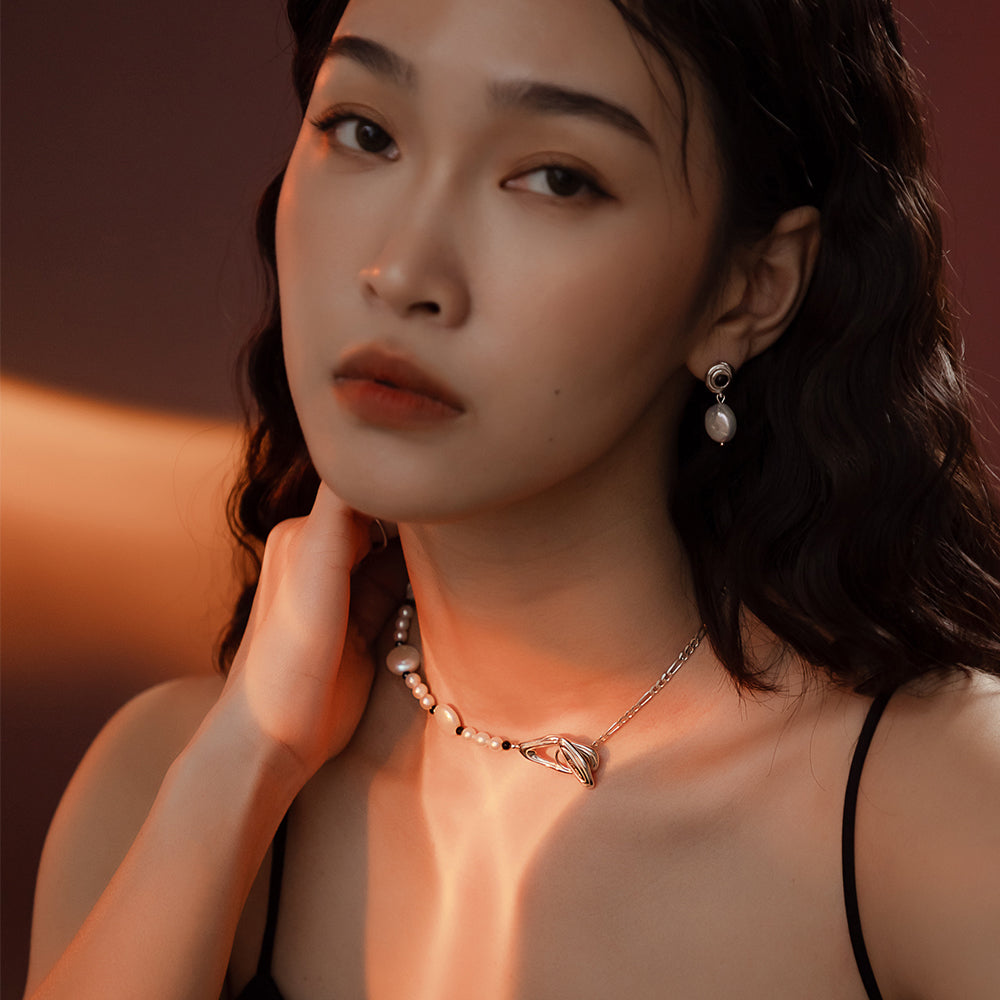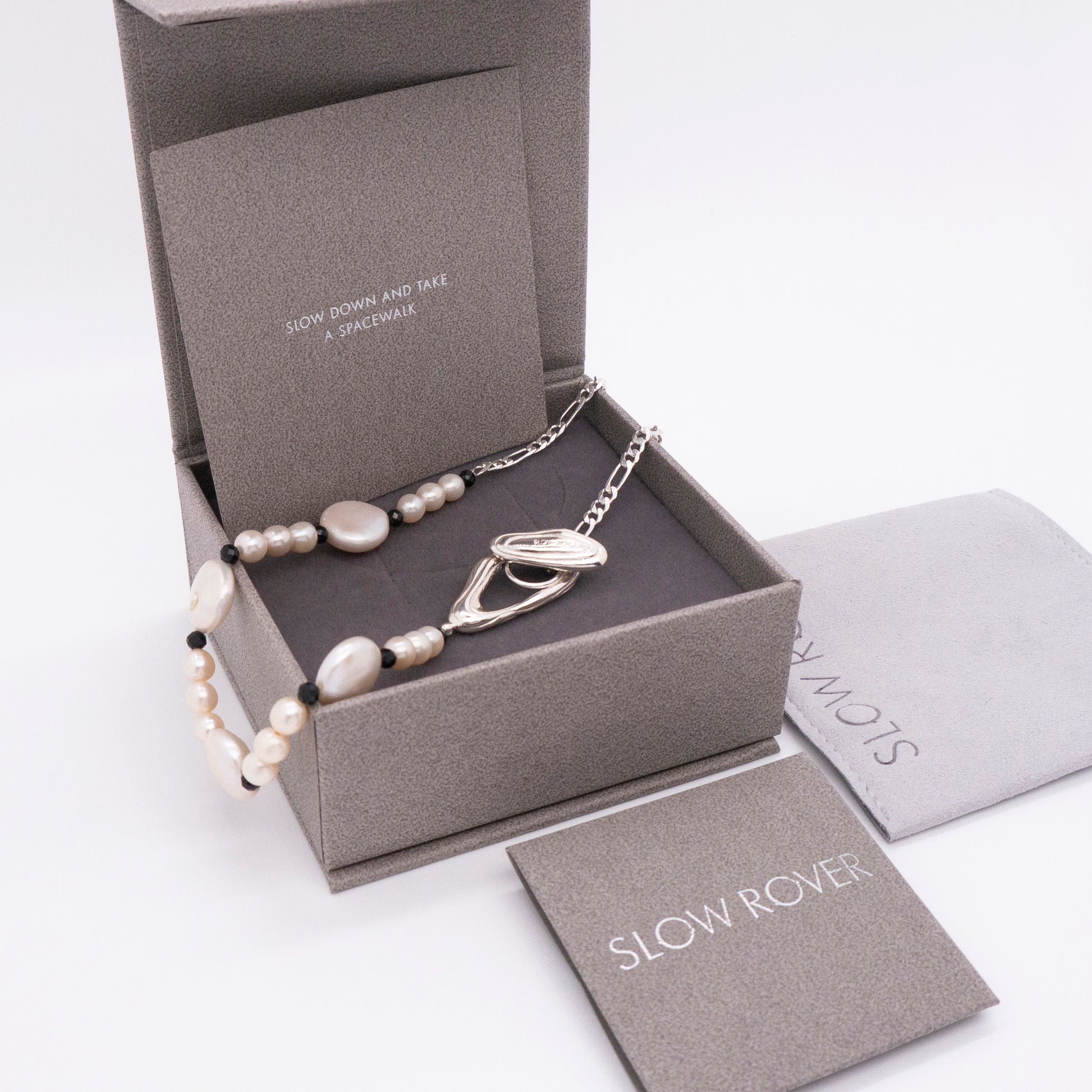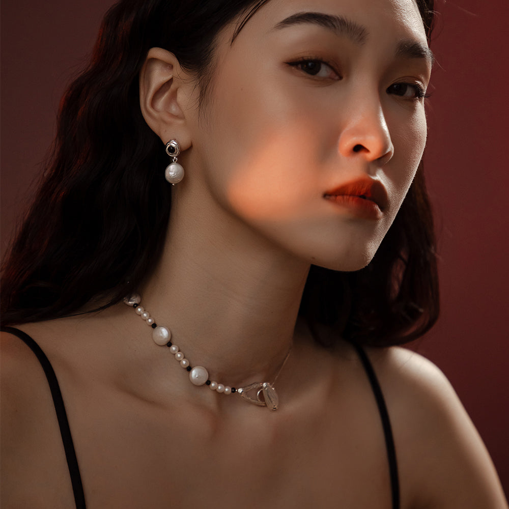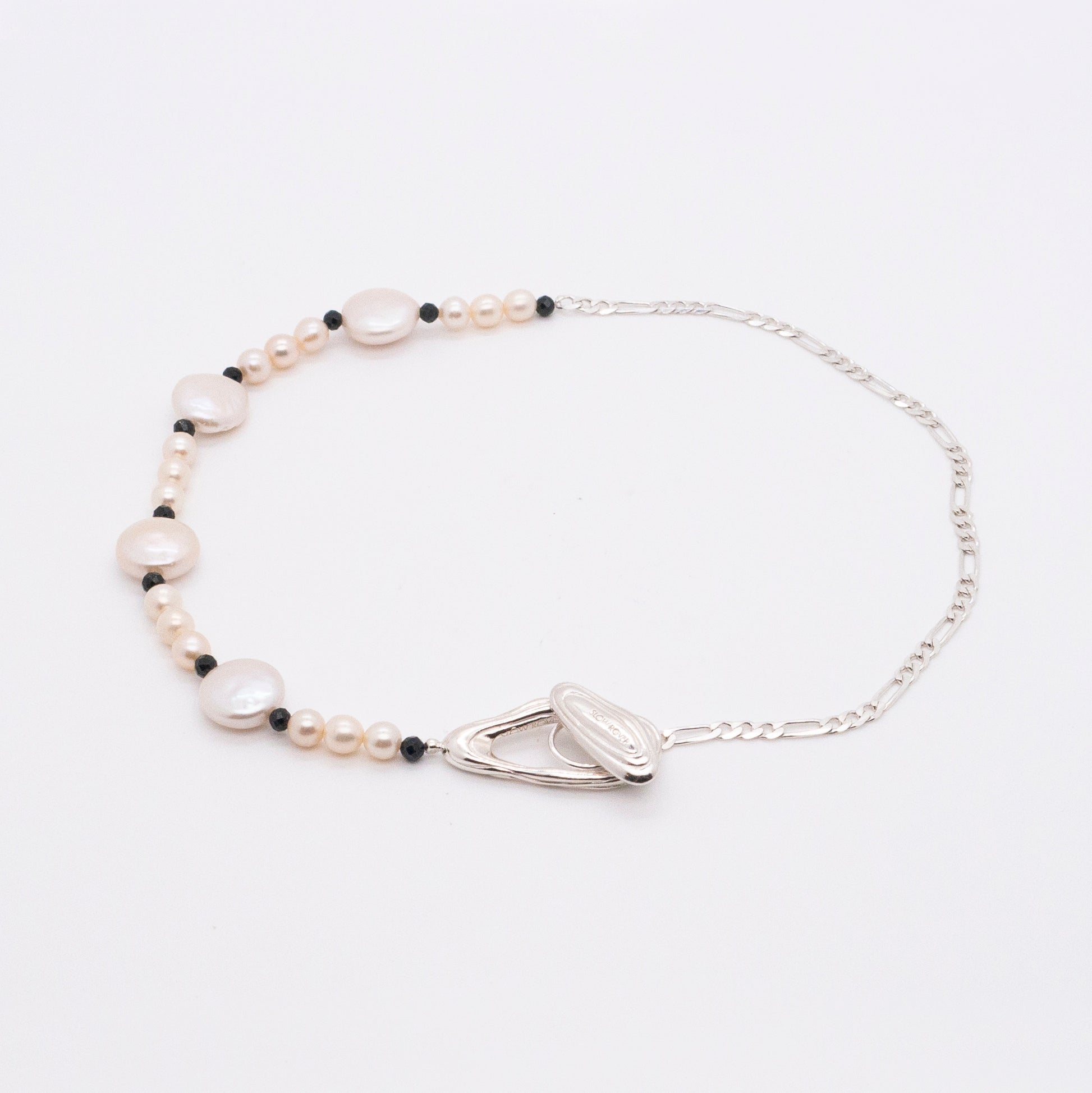 - 材質:純銀、天然淡水珠、黑尖晶石