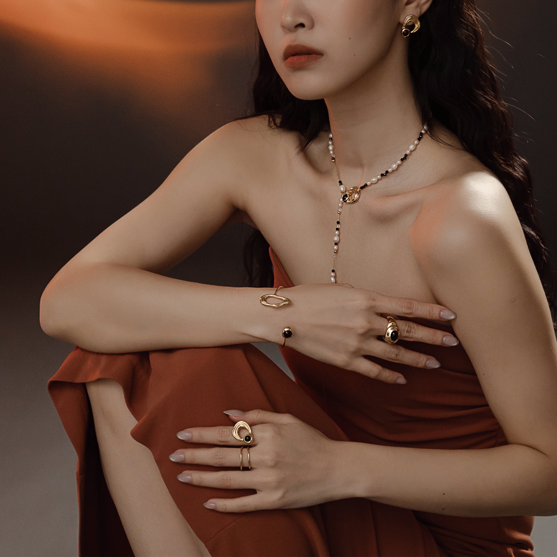 - 材質:黃銅厚鍍18K金、黑瑪瑙石