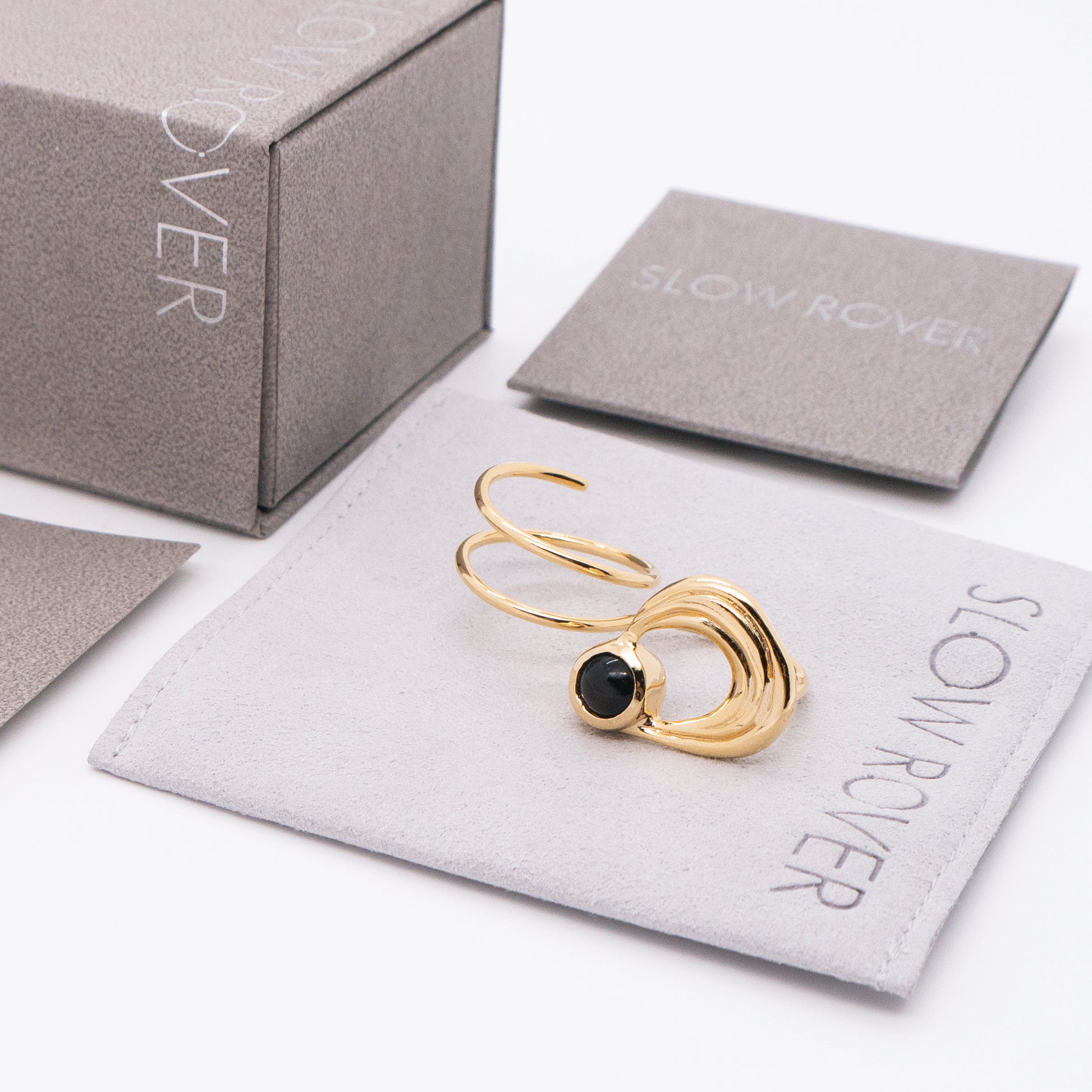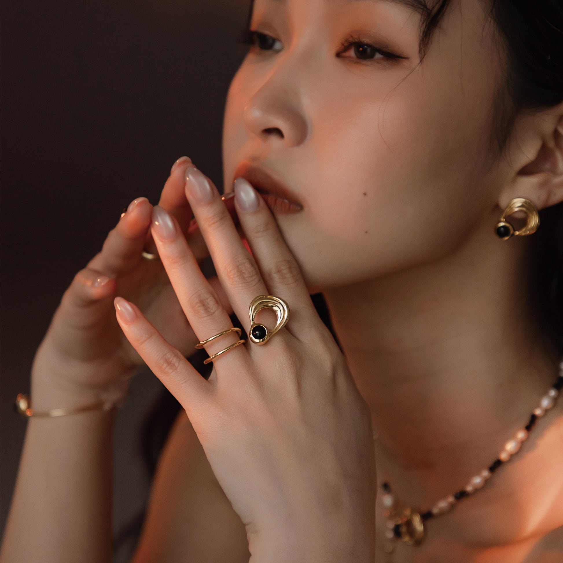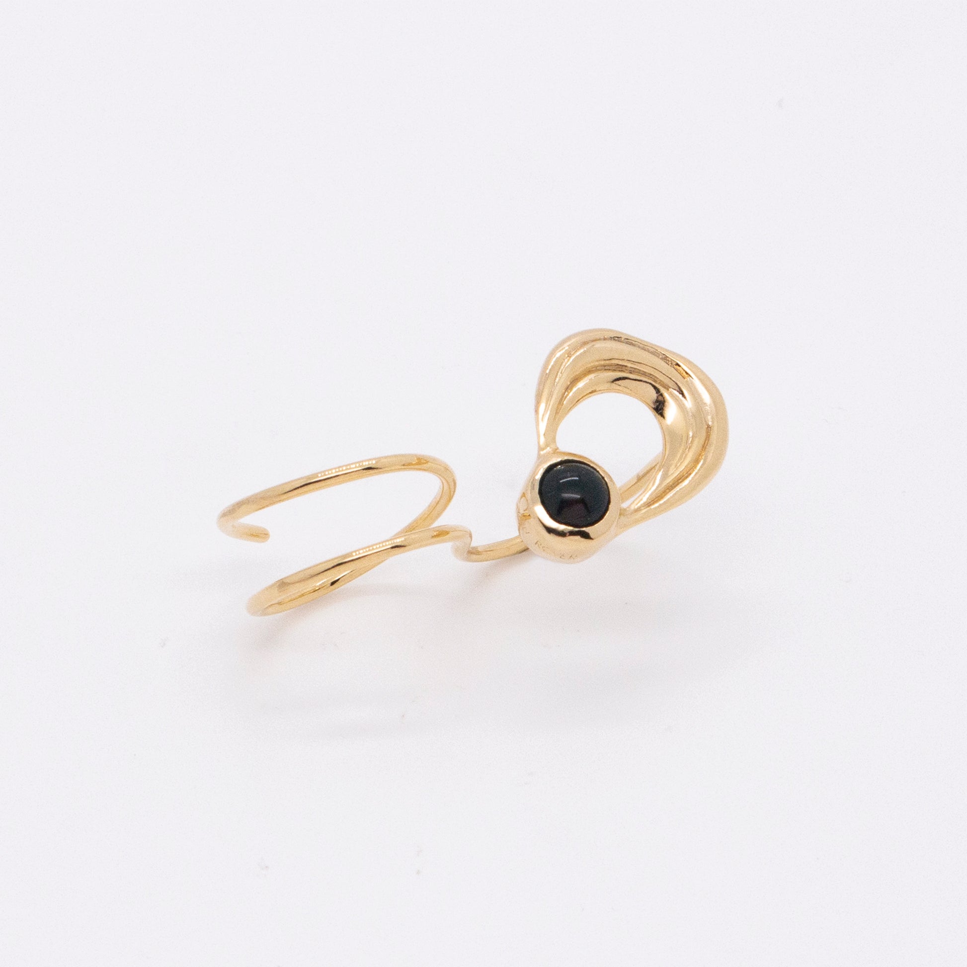 太陽閃焰系列 日珥黑瑪瑙雙指戒-厚鍍18K金