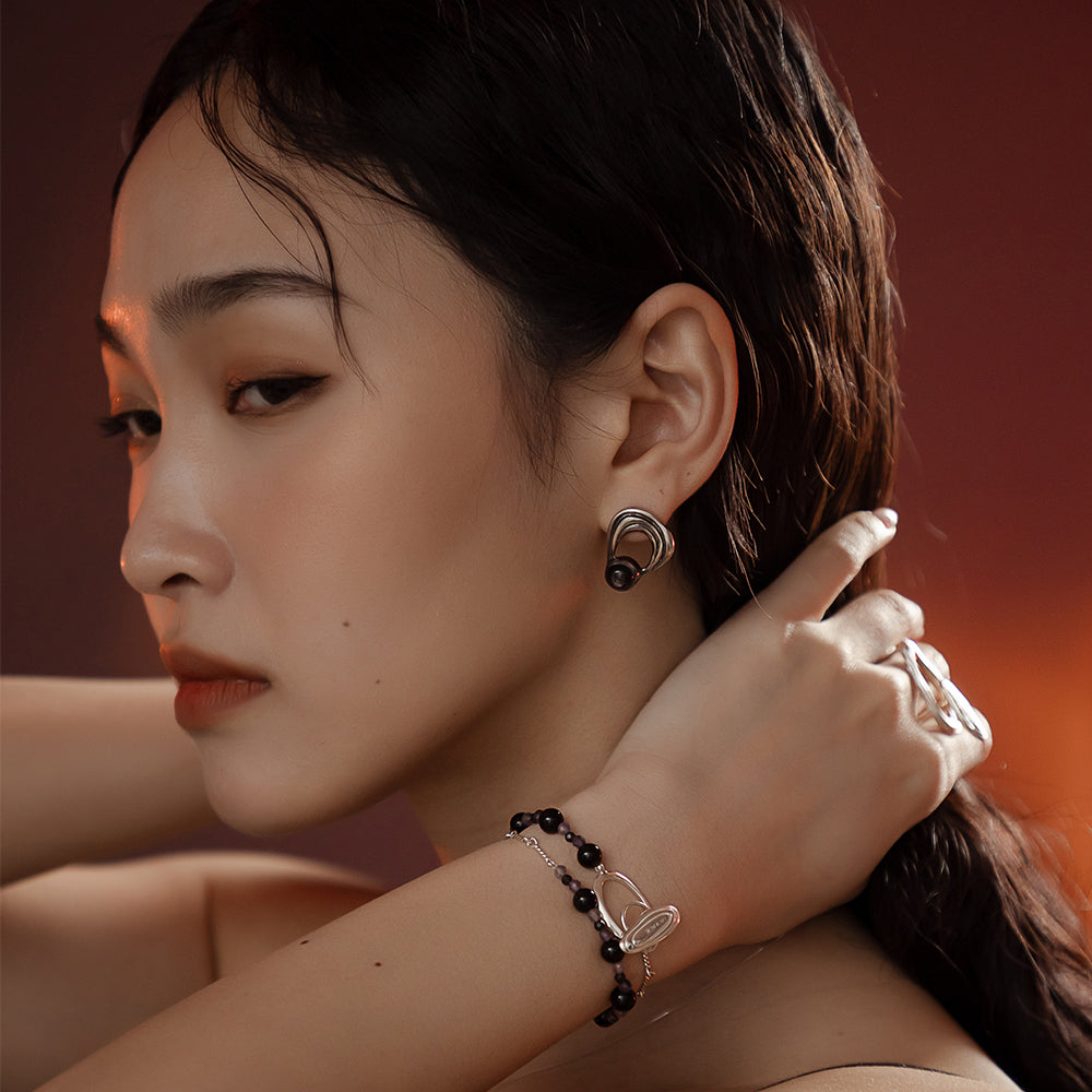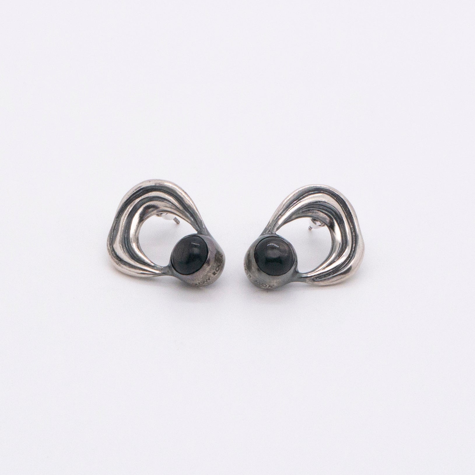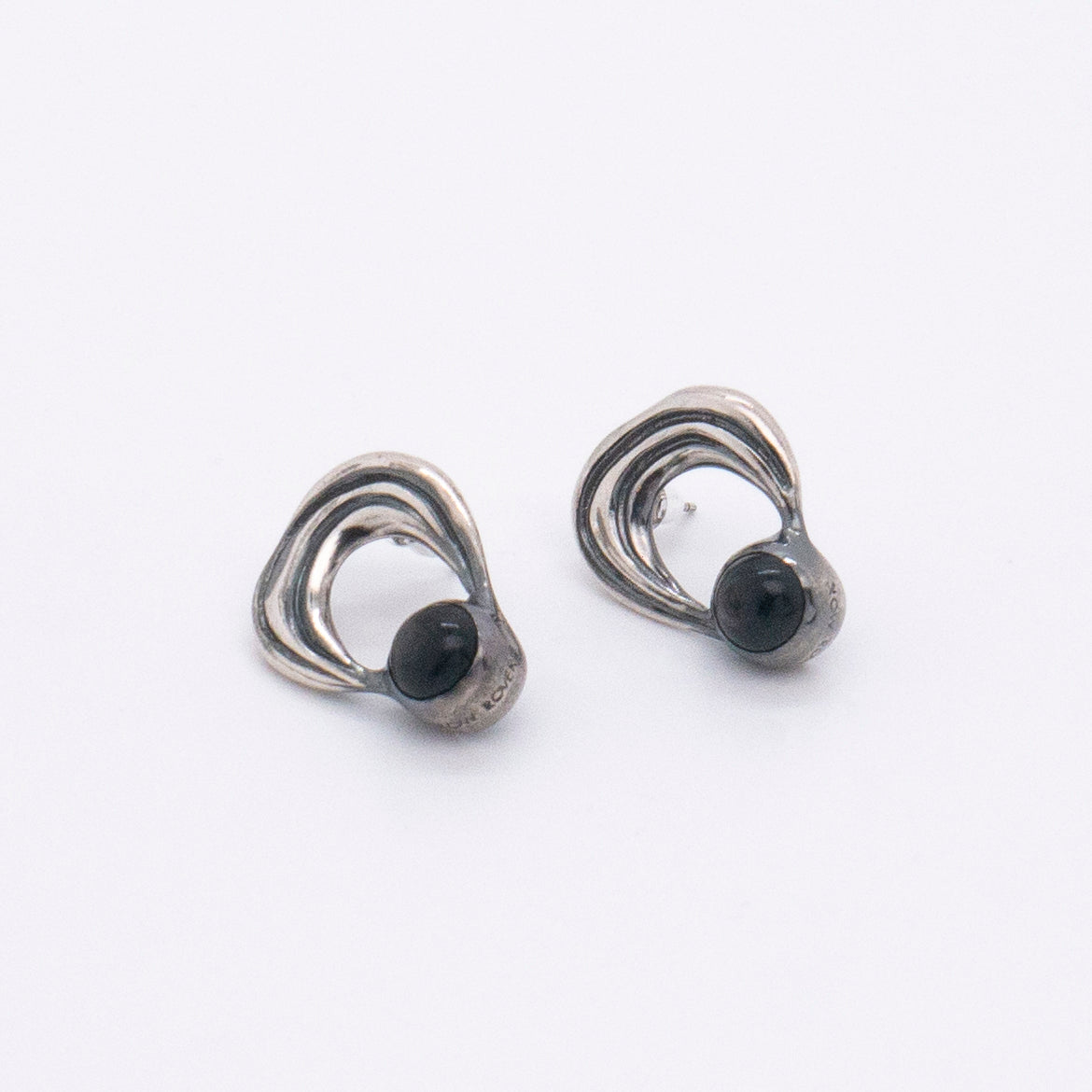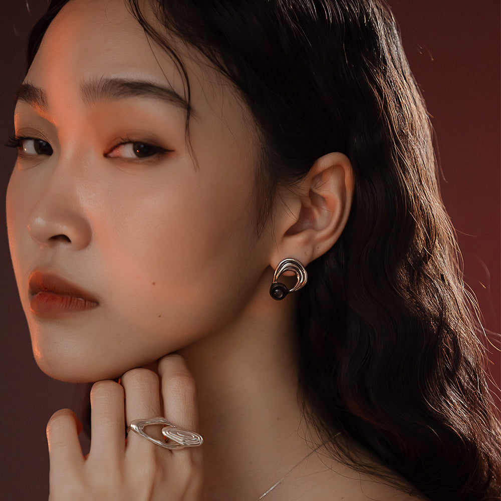 太陽閃焰系列 日珥金運石耳環-純銀染黑