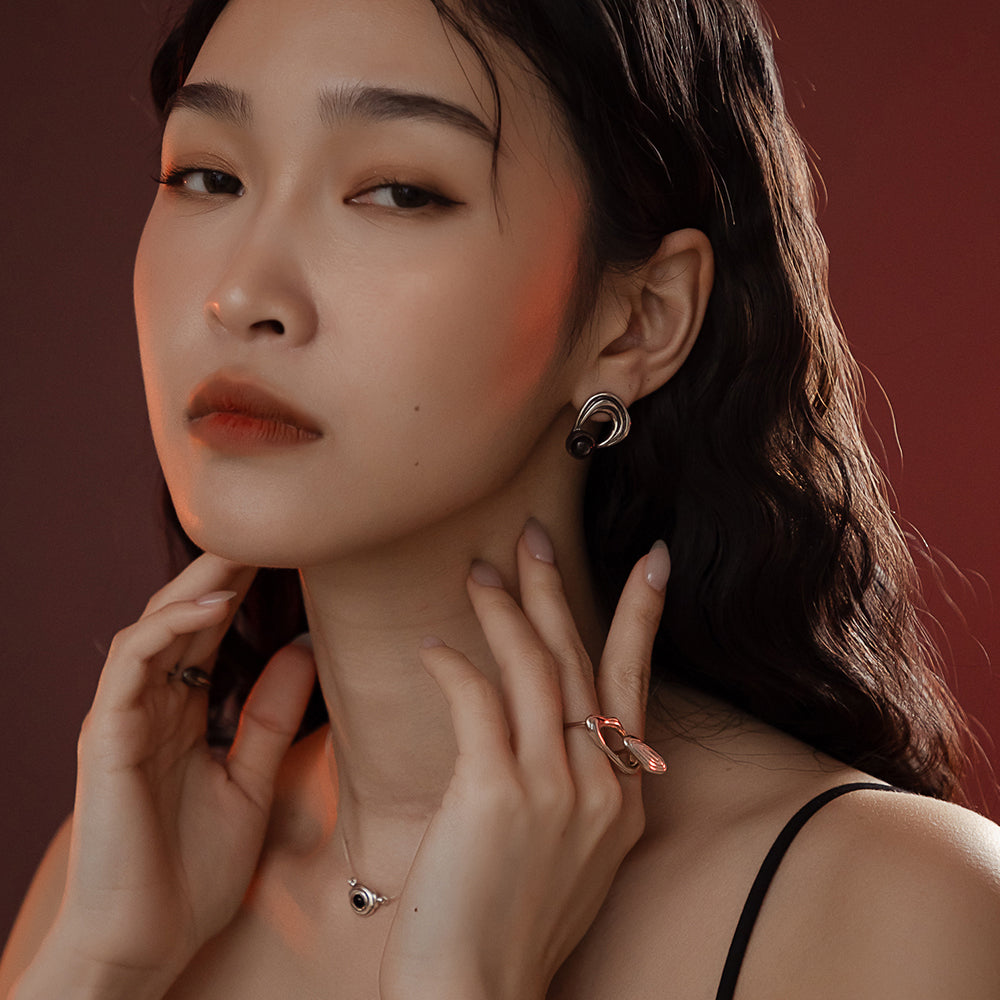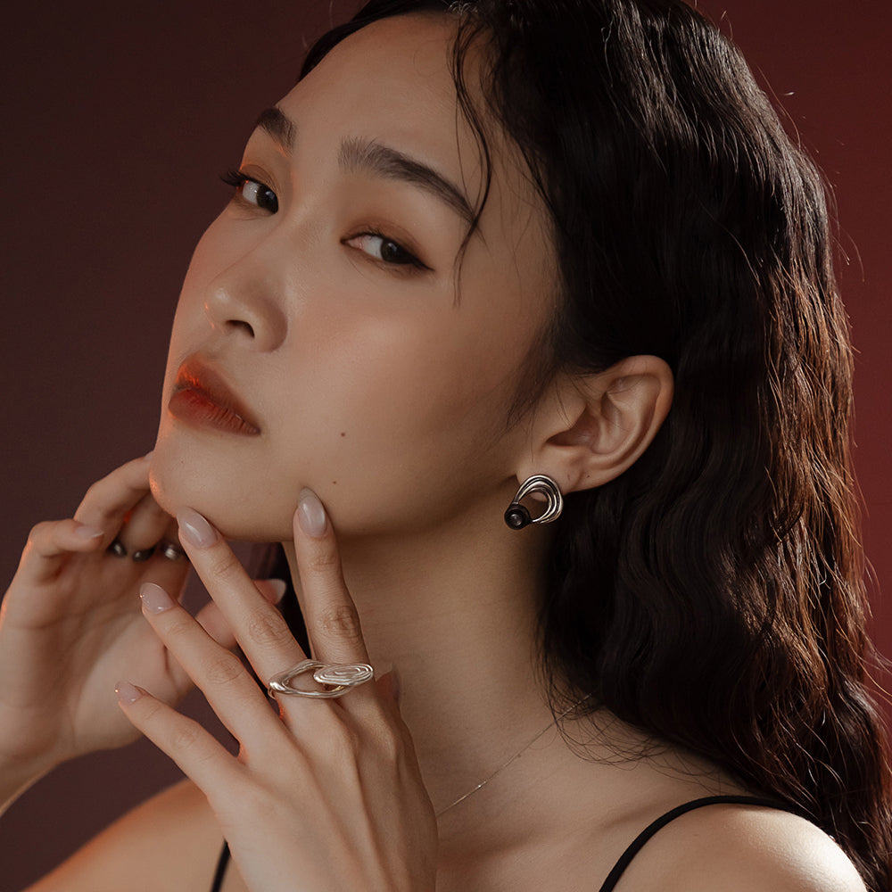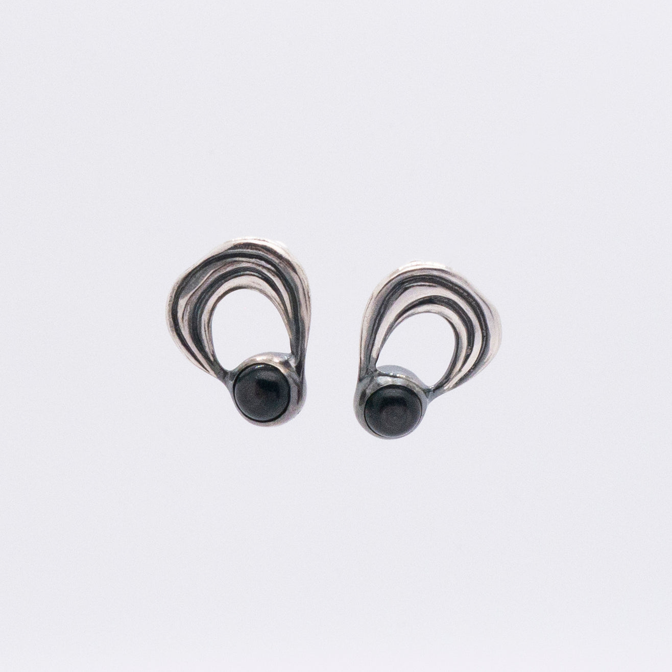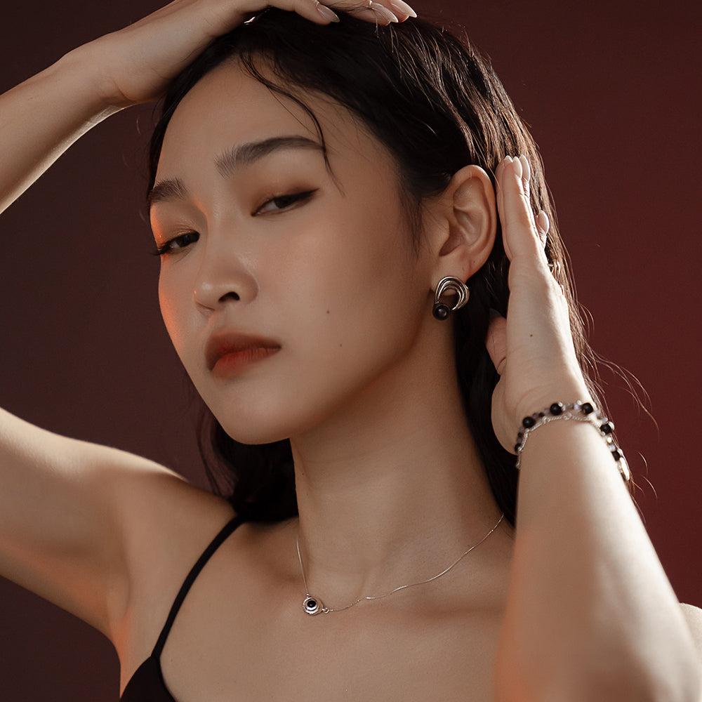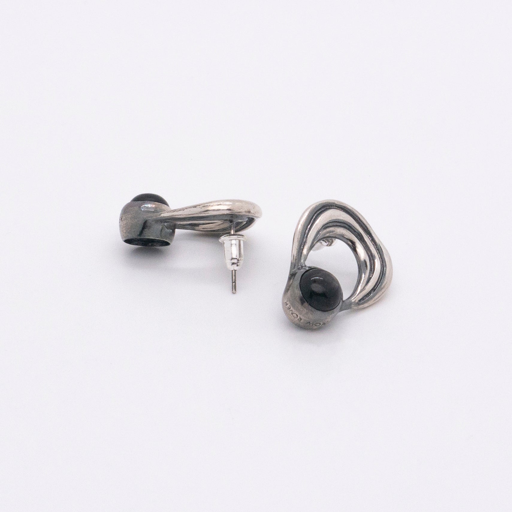 太陽閃焰系列 日珥金運石耳環-純銀染黑