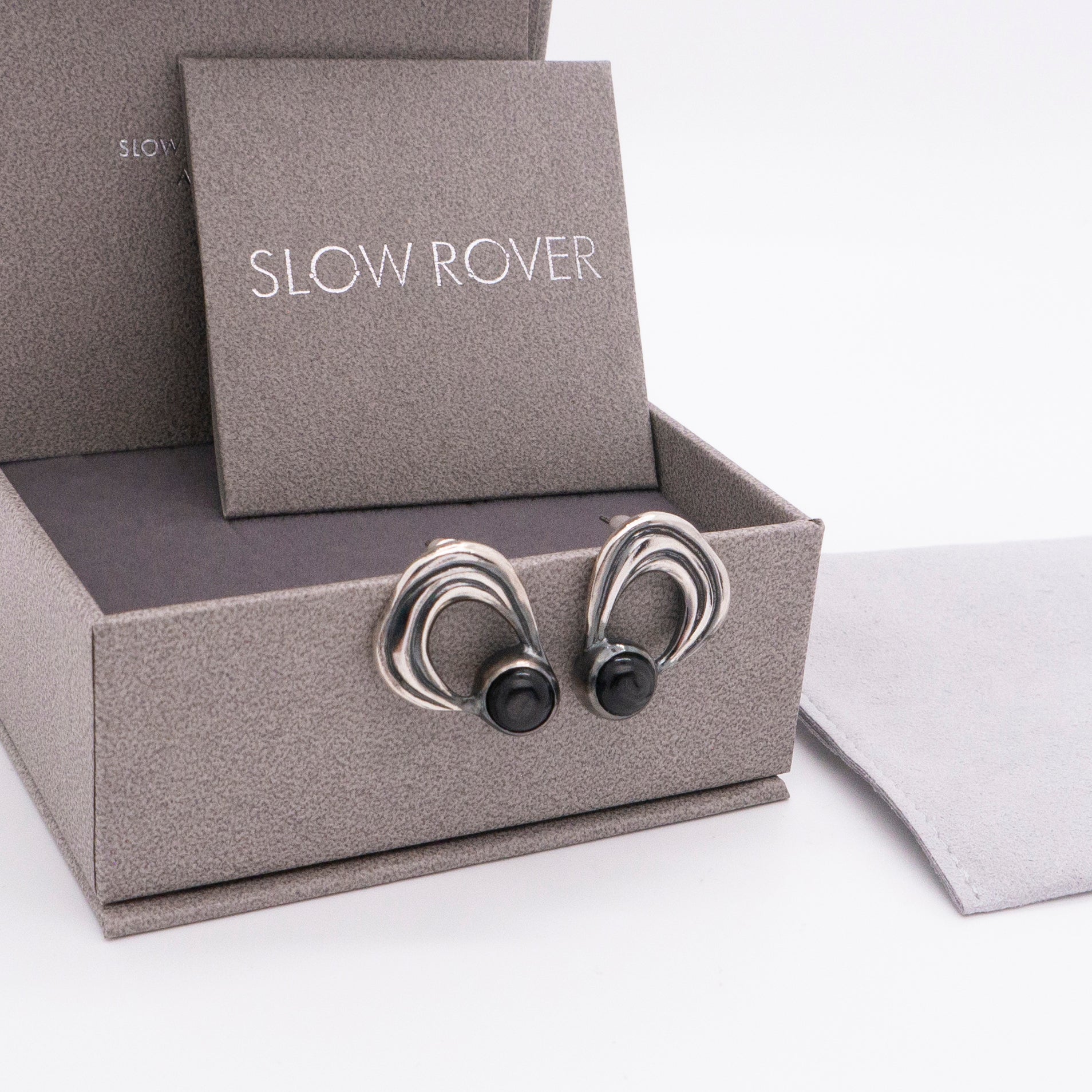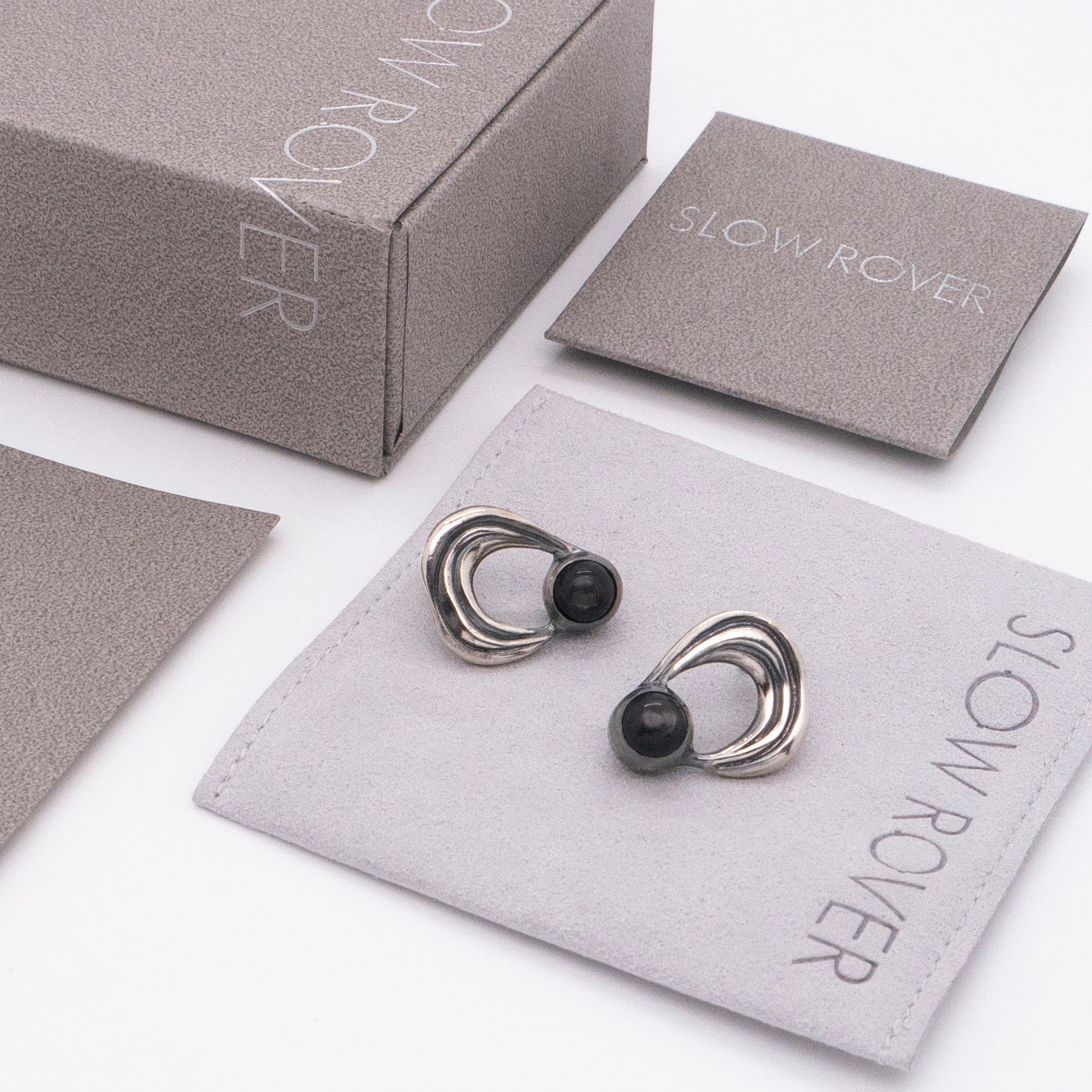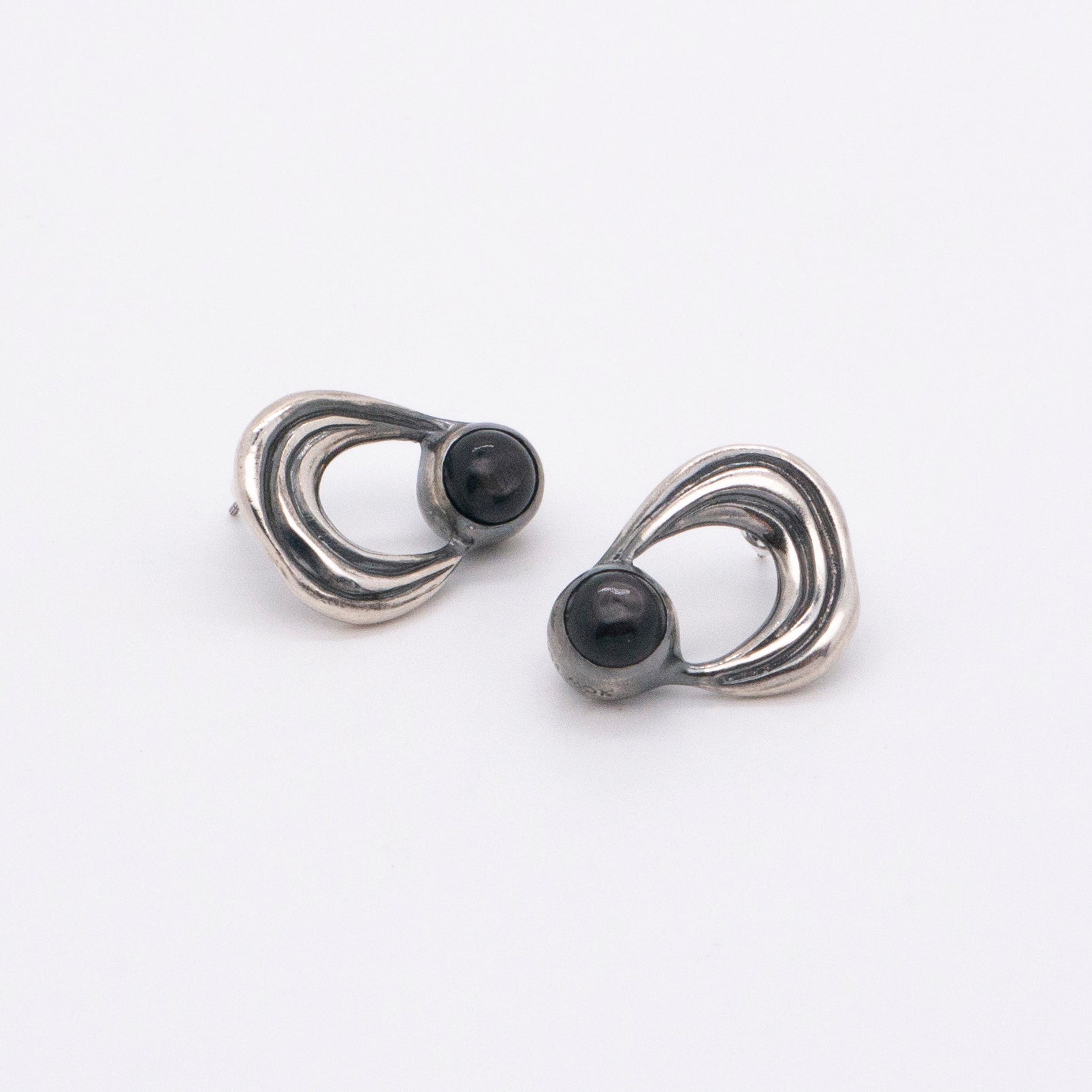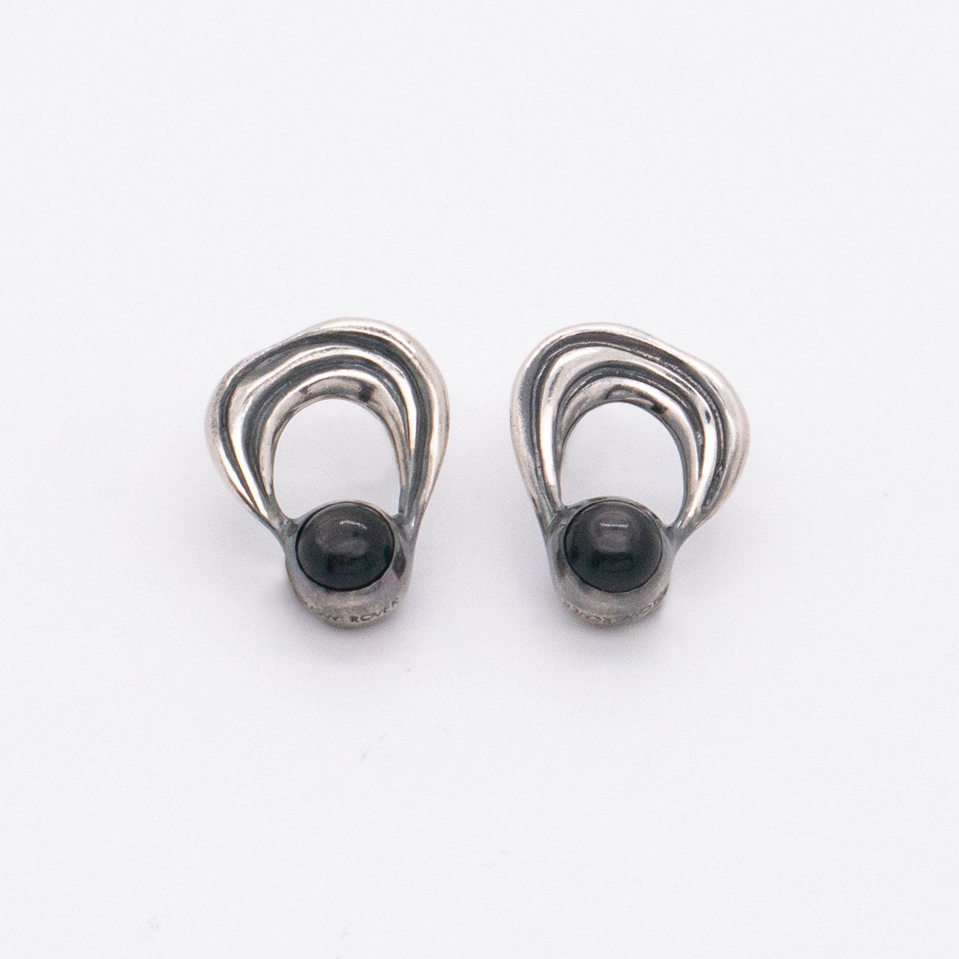 太陽閃焰系列 日珥金運石耳環-純銀染黑