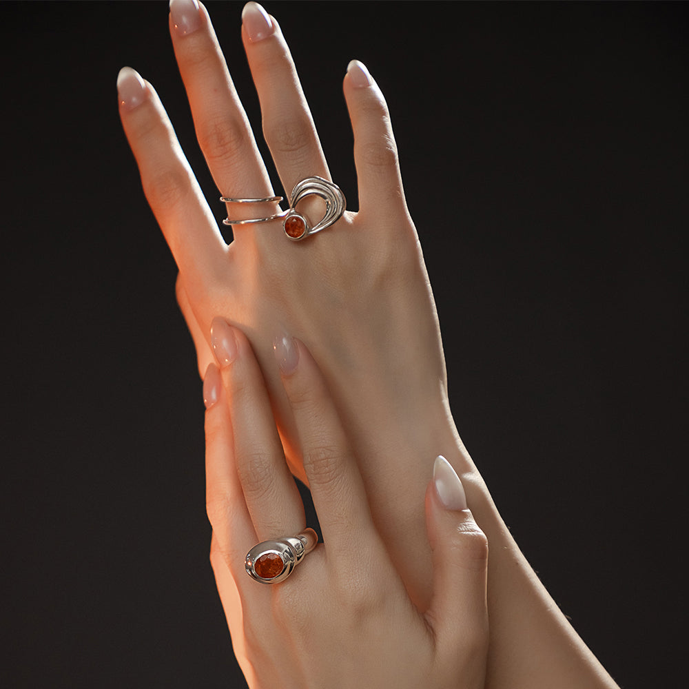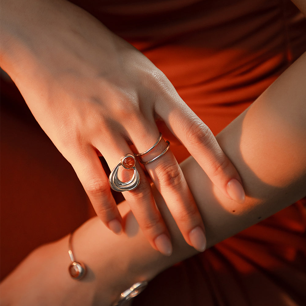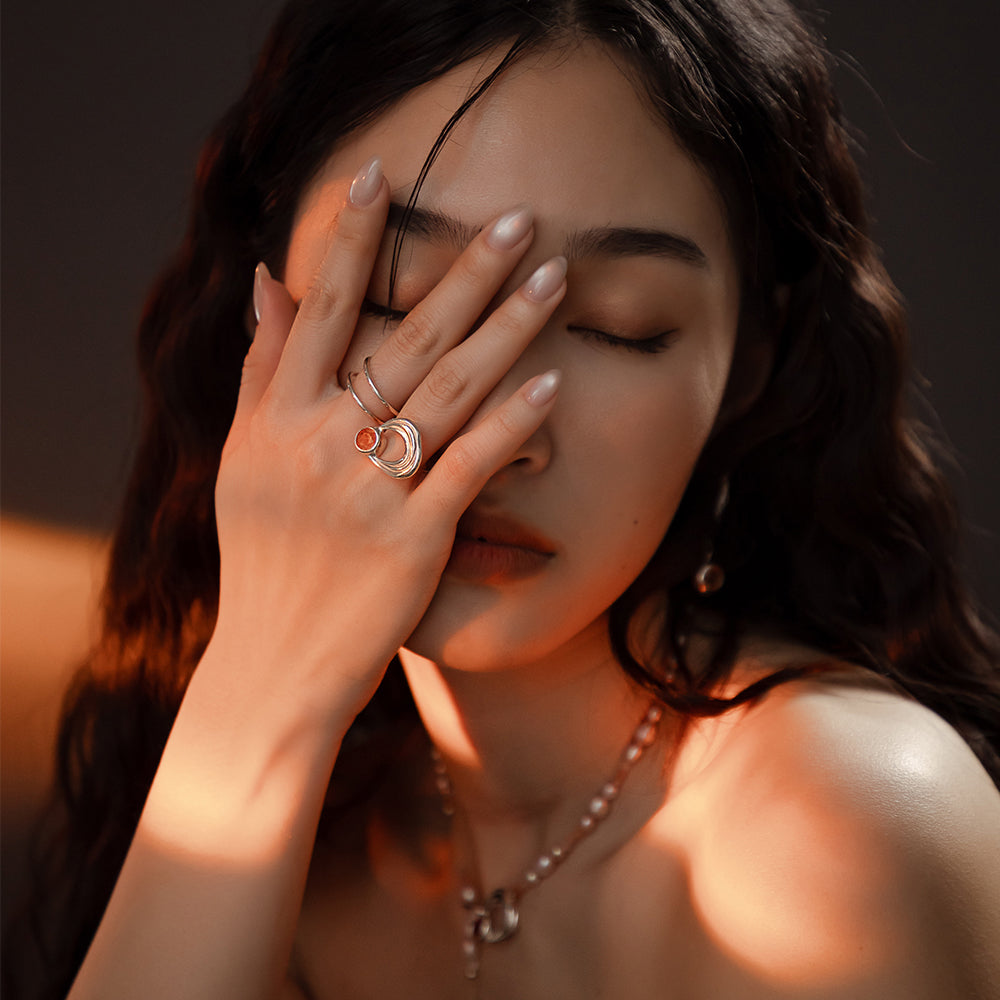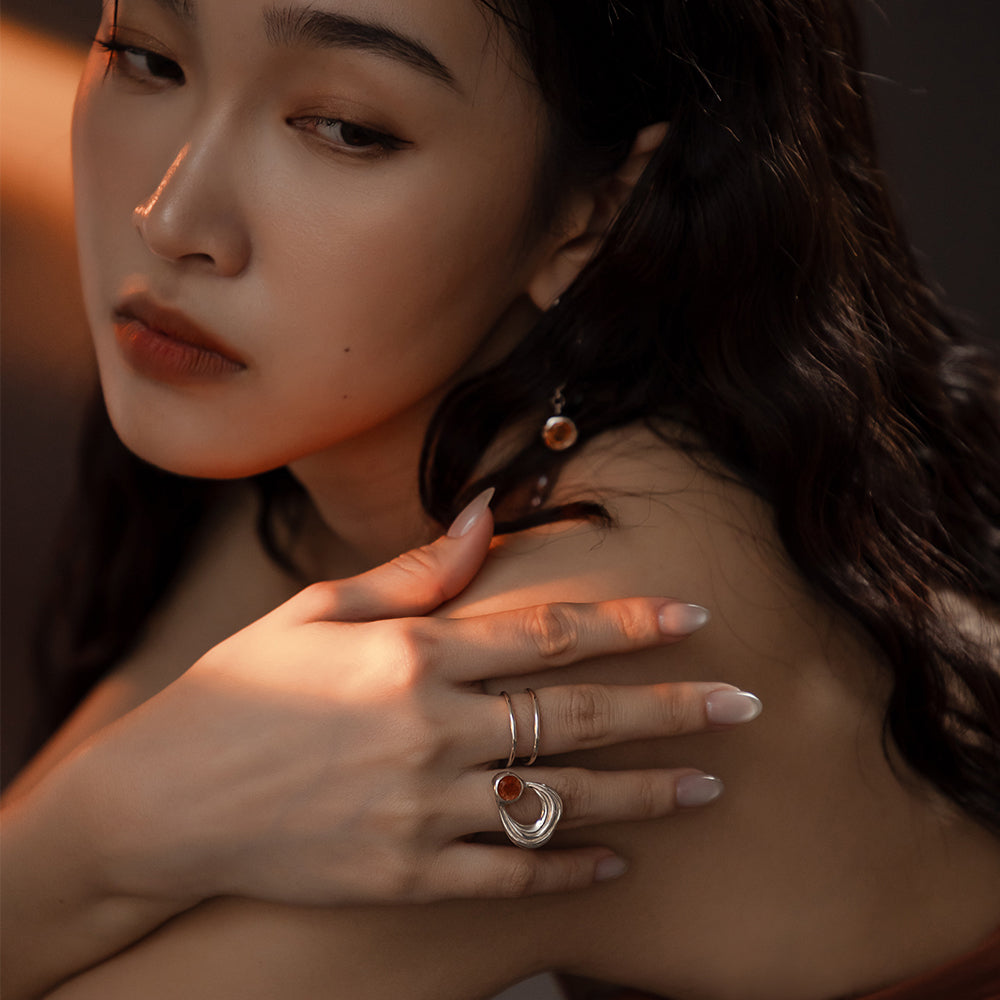 太陽閃焰系列 日珥太陽石雙指戒-純銀