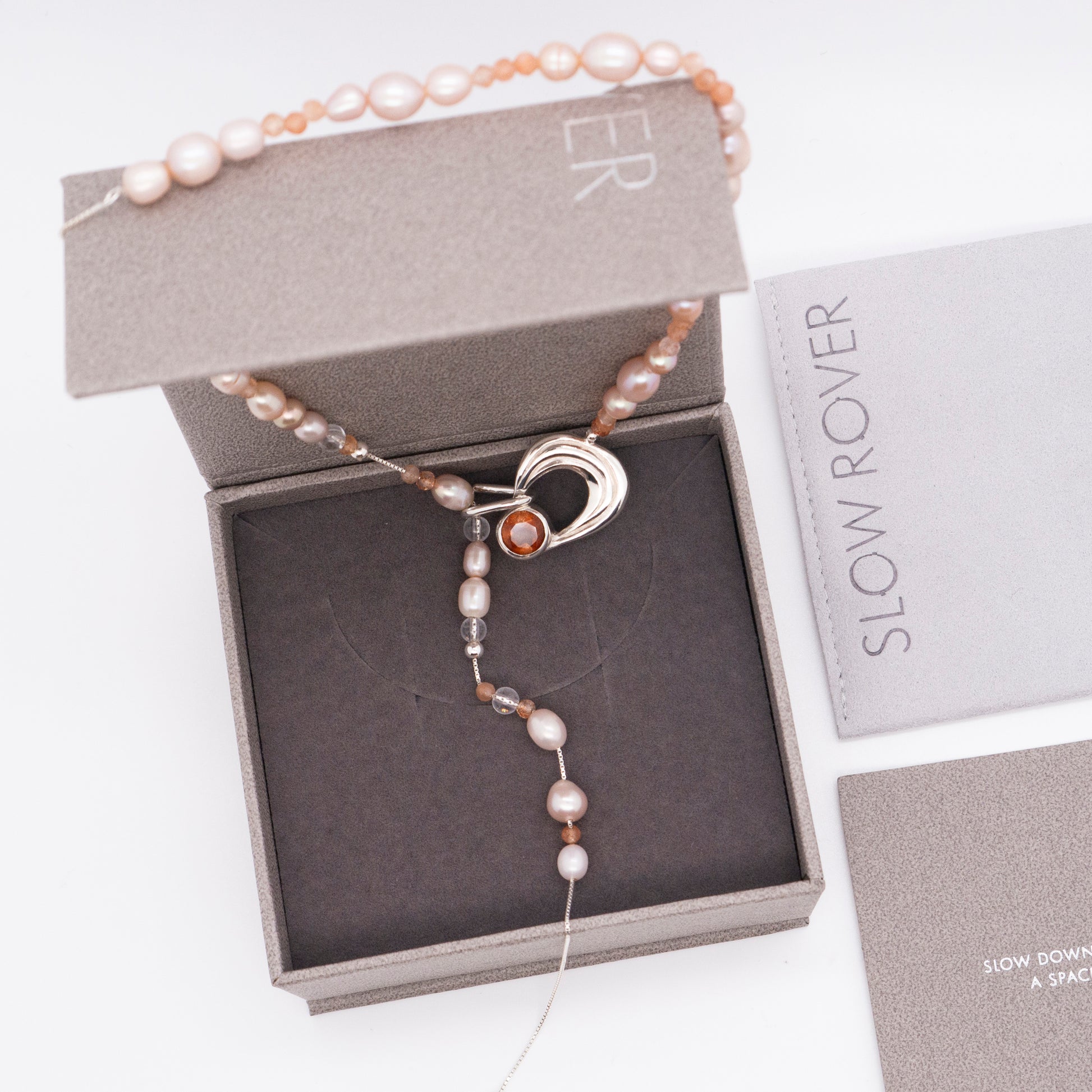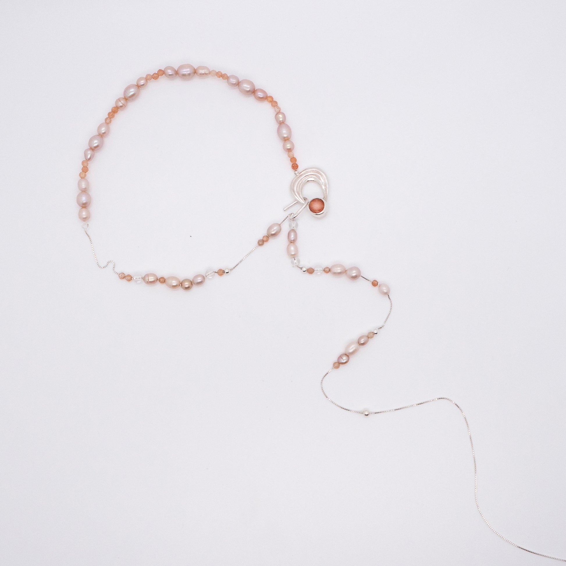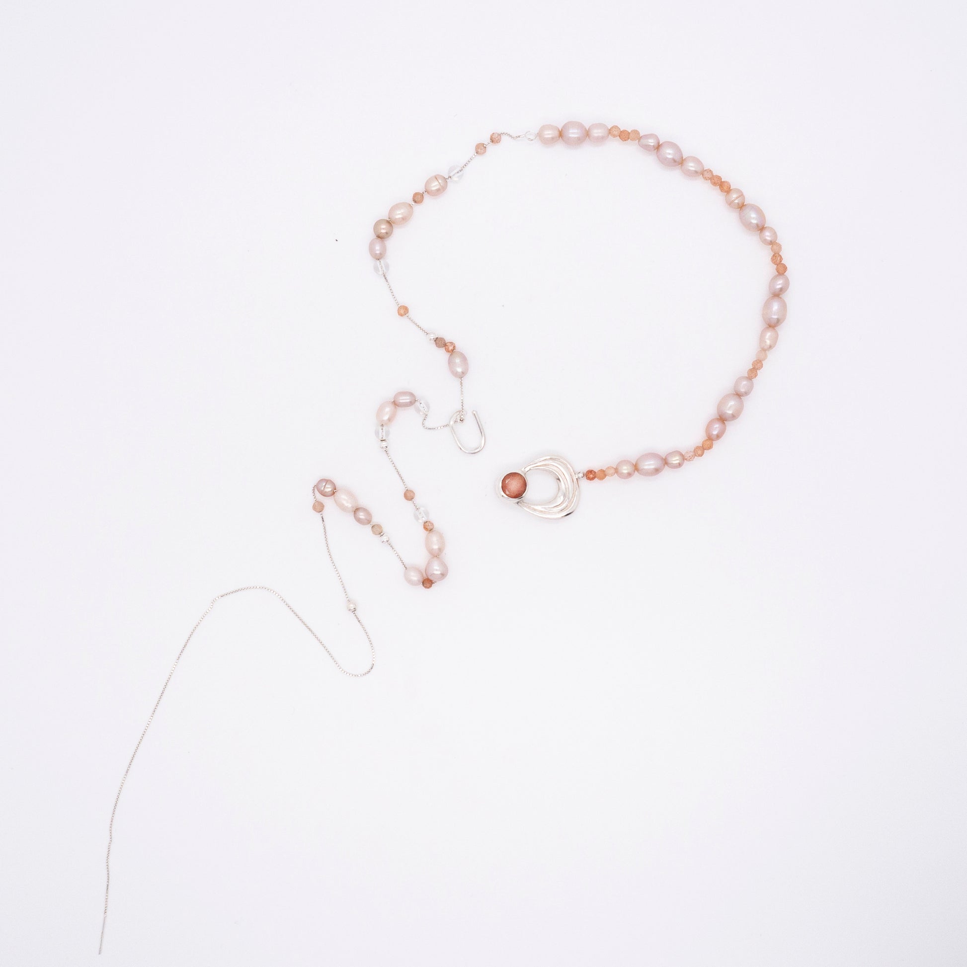 - 材質:純銀、太陽石、天然淡水珠、白水晶