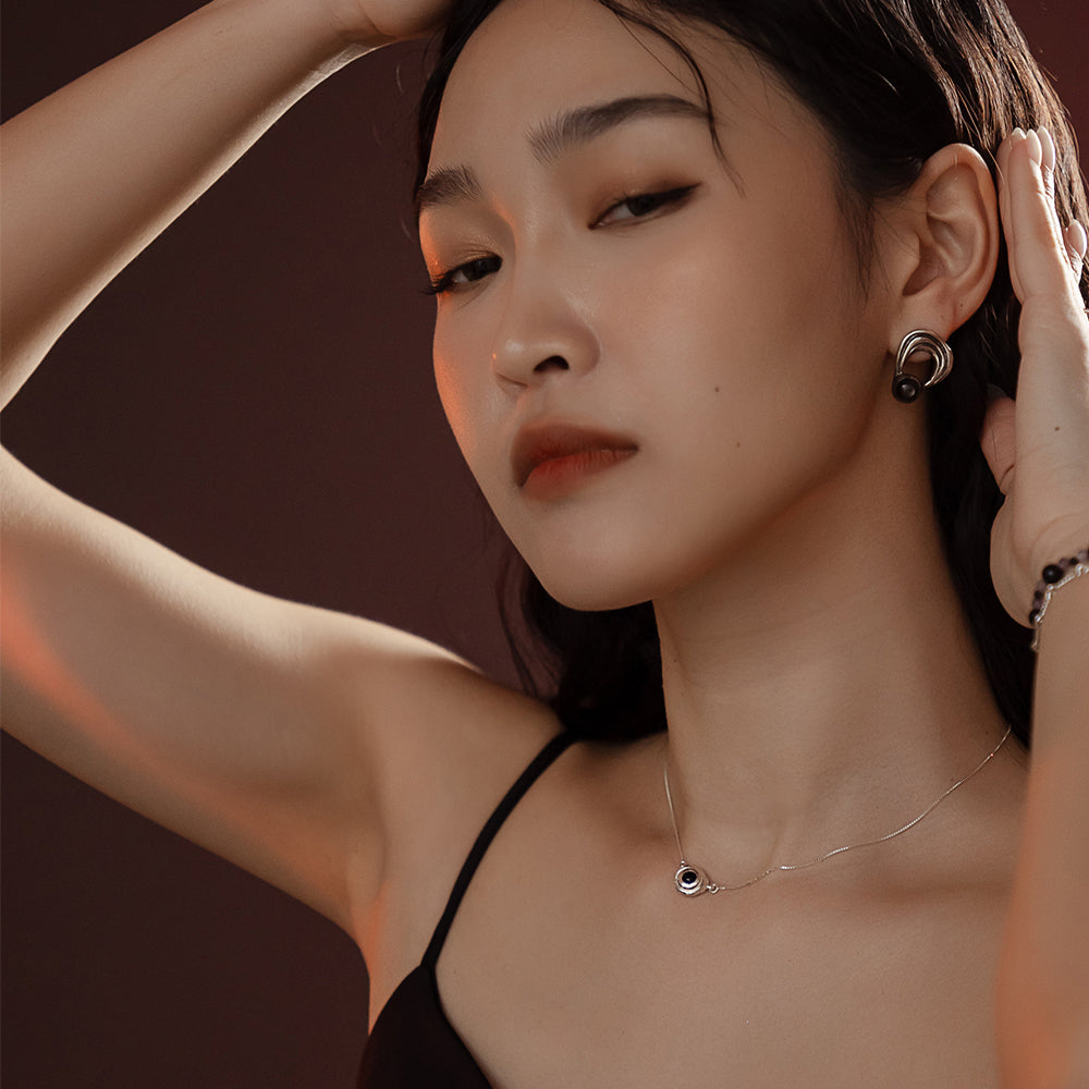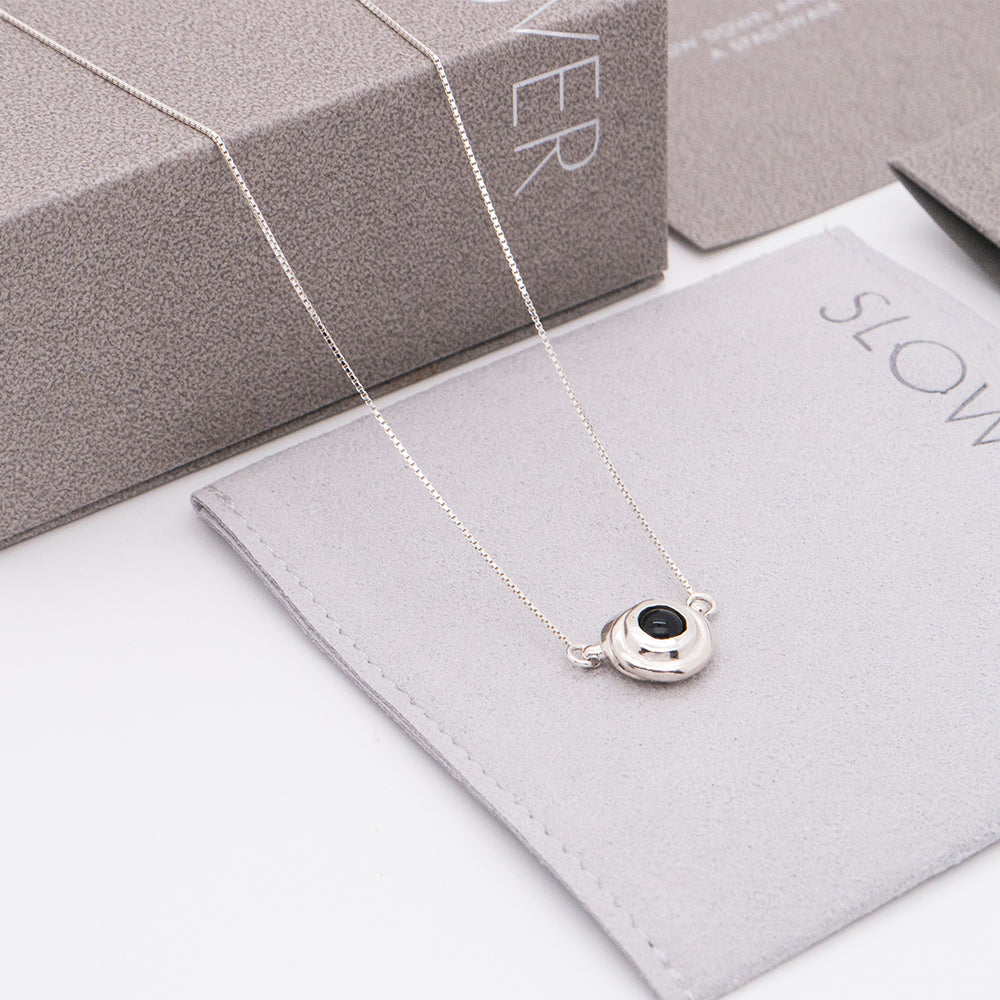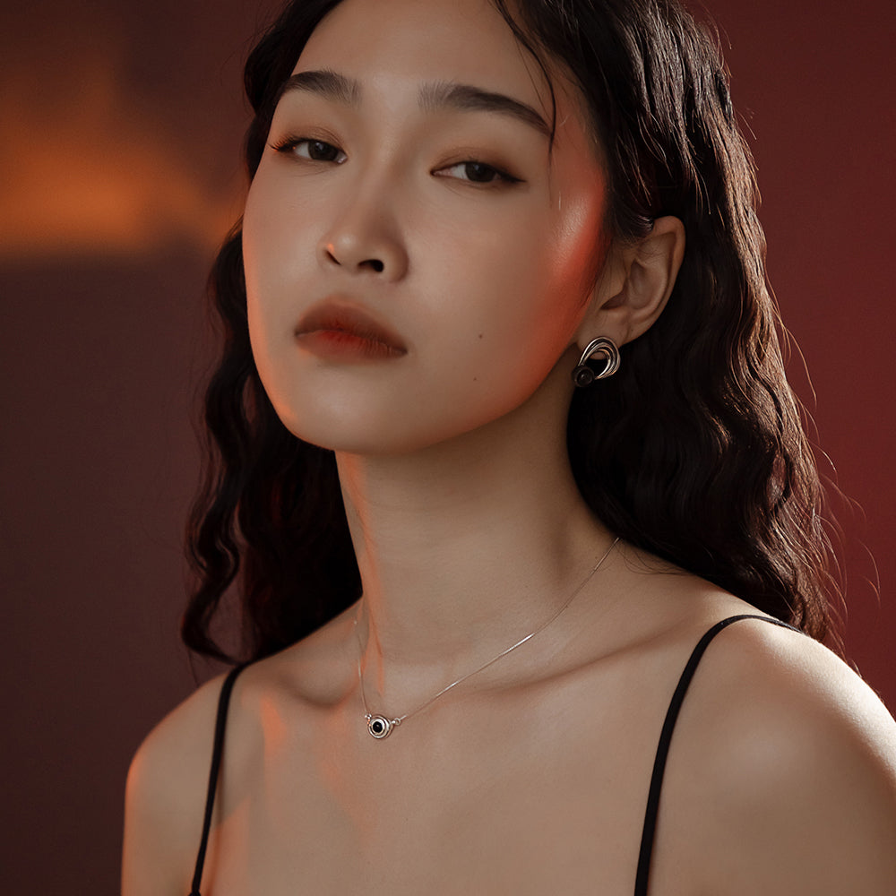 太陽閃焰系列 太陽黑子黑瑪瑙鎖骨鍊-純銀
