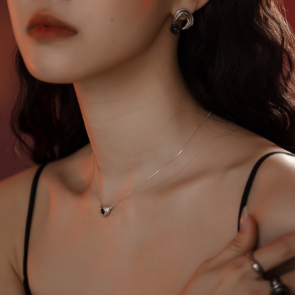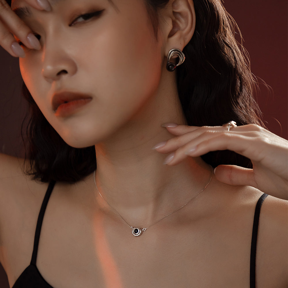 太陽閃焰 太陽黑子黑瑪瑙鎖骨鍊-純銀