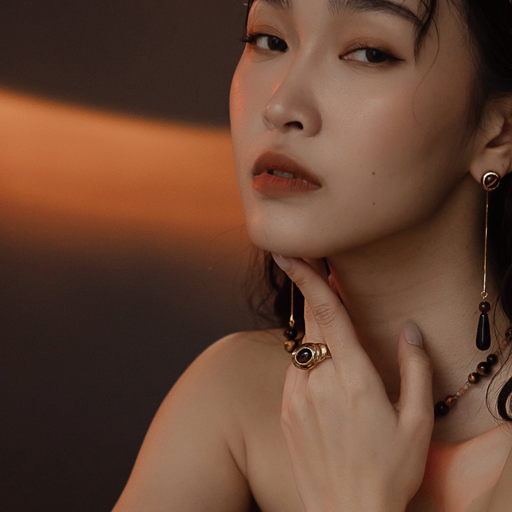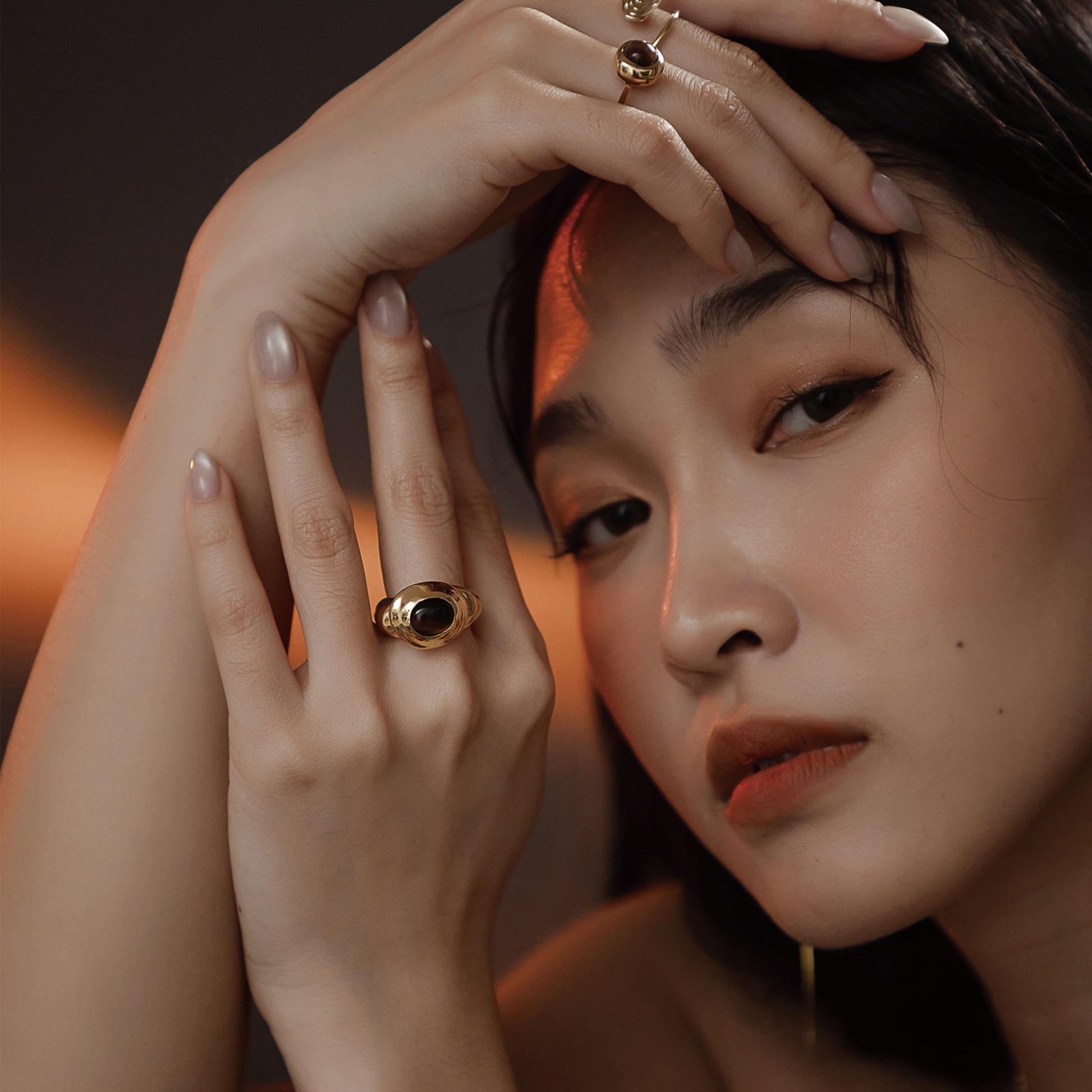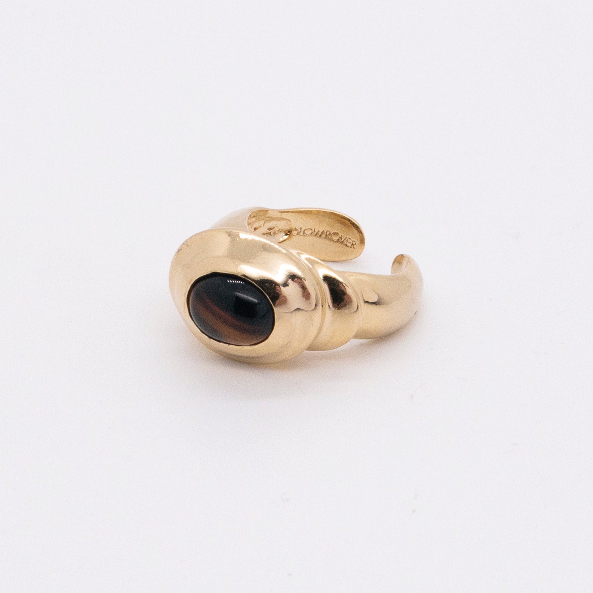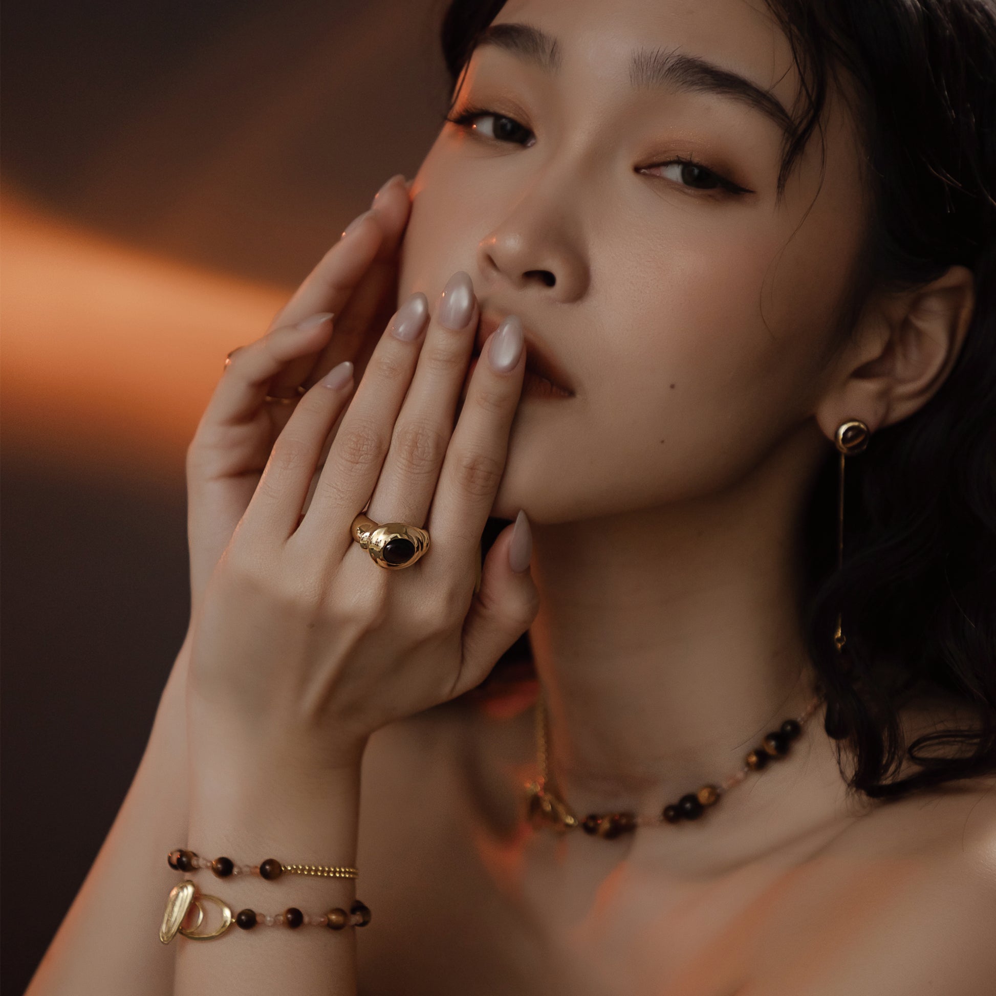 太陽閃焰系列 太陽黑子波斯瑪瑙石戒指/耳夾-厚鍍18K金