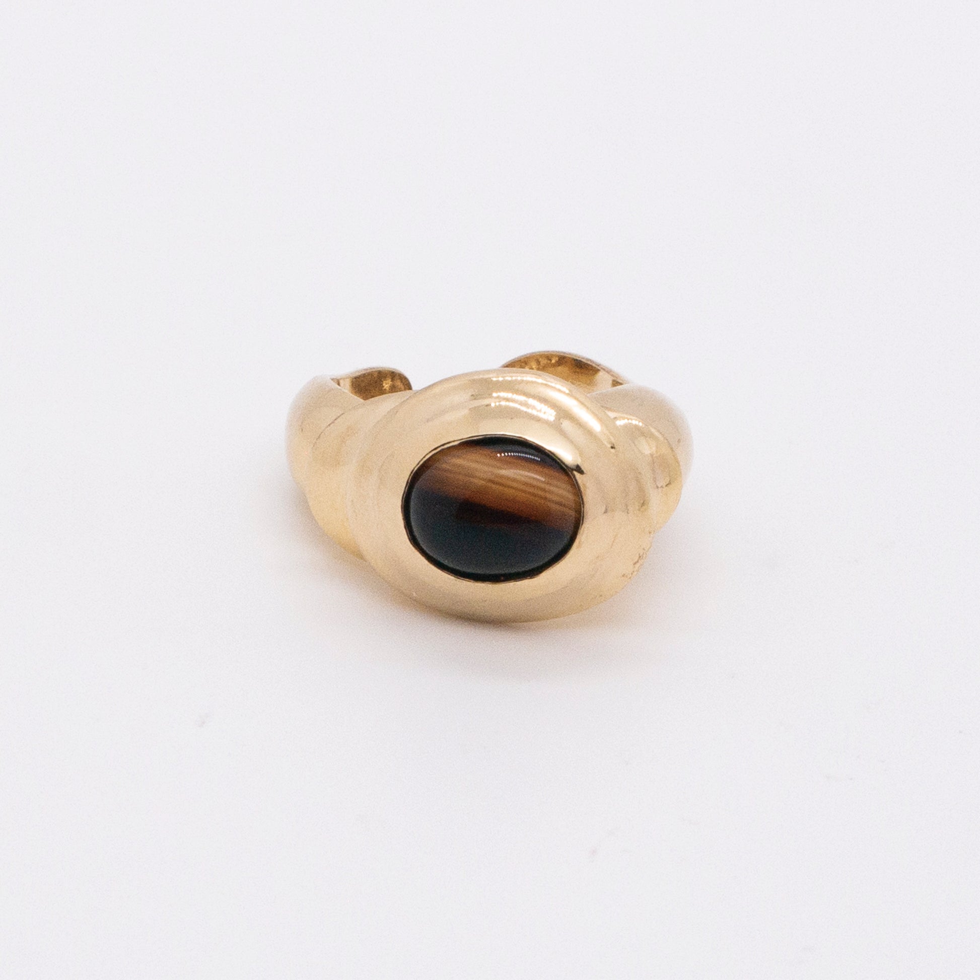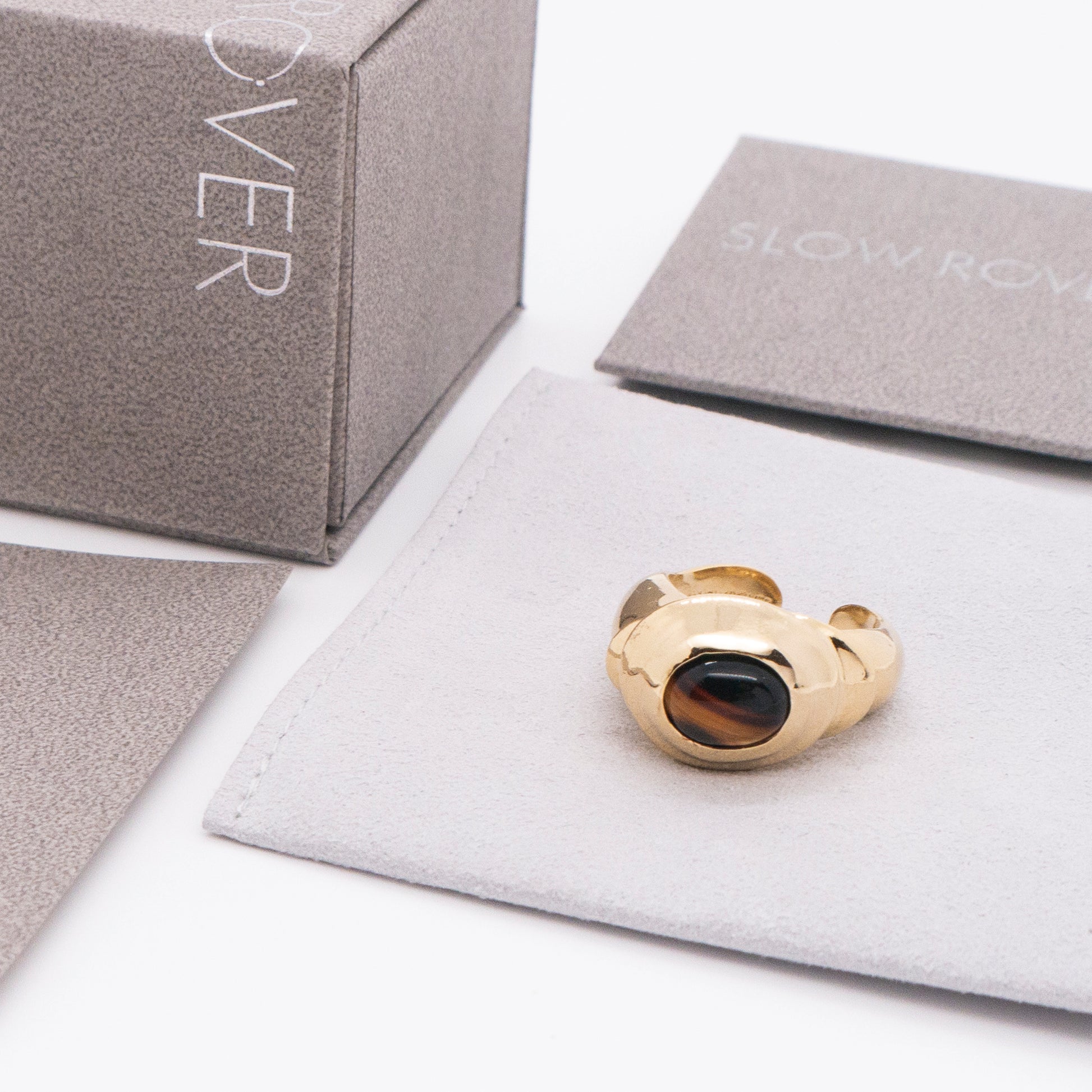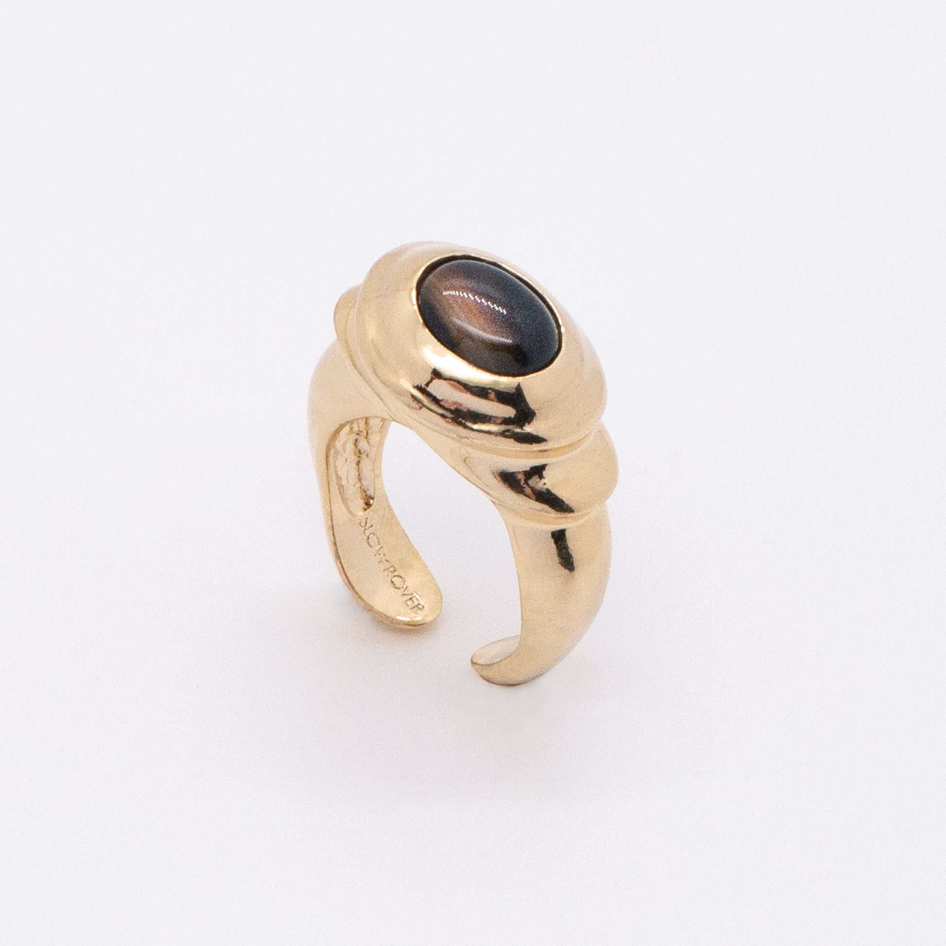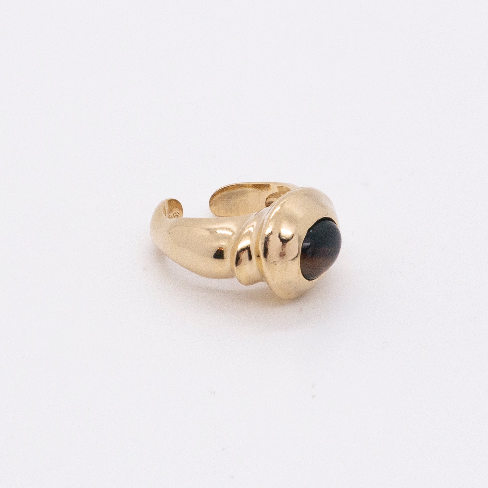 太陽閃焰系列 太陽黑子波斯瑪瑙石戒指/耳夾-厚鍍18K金