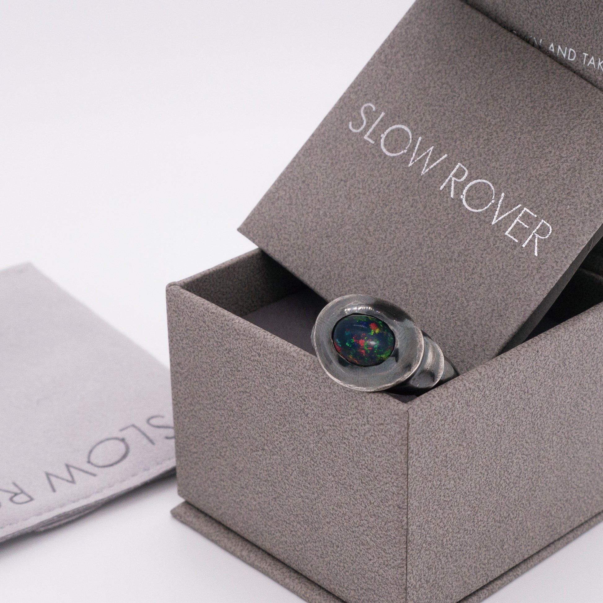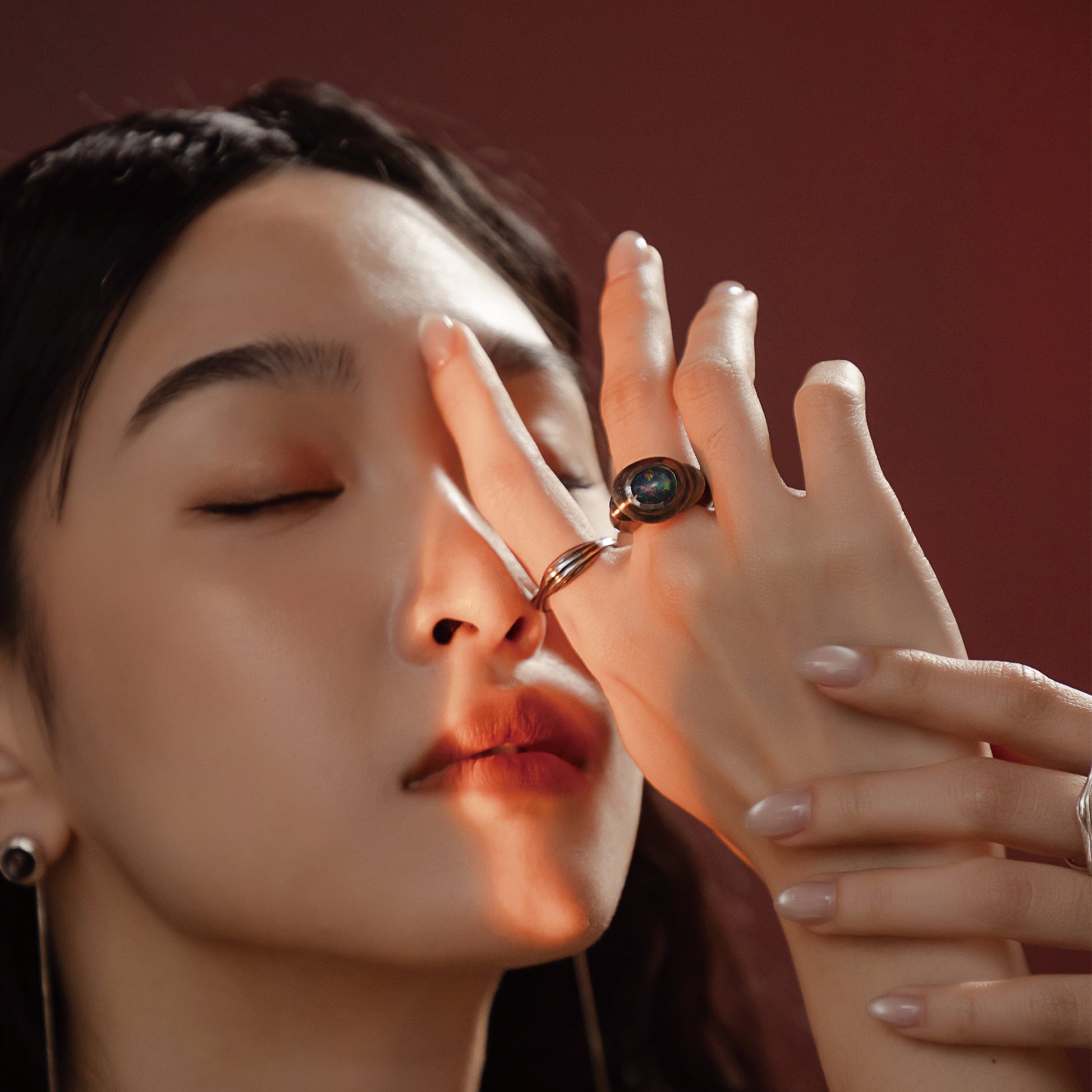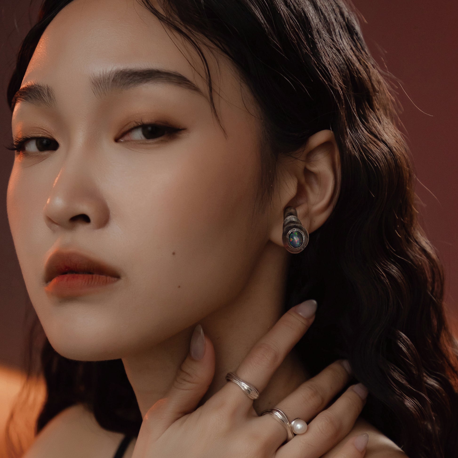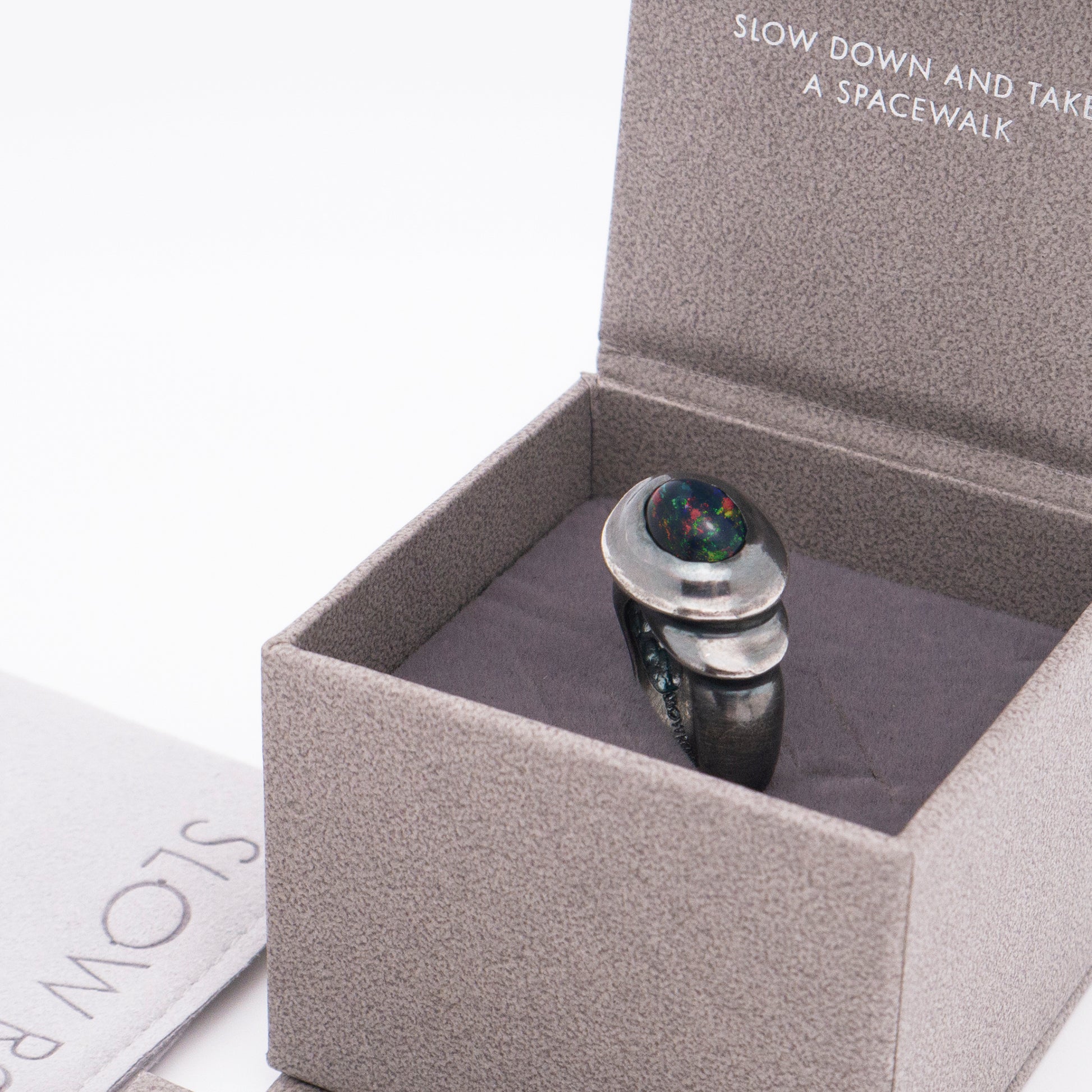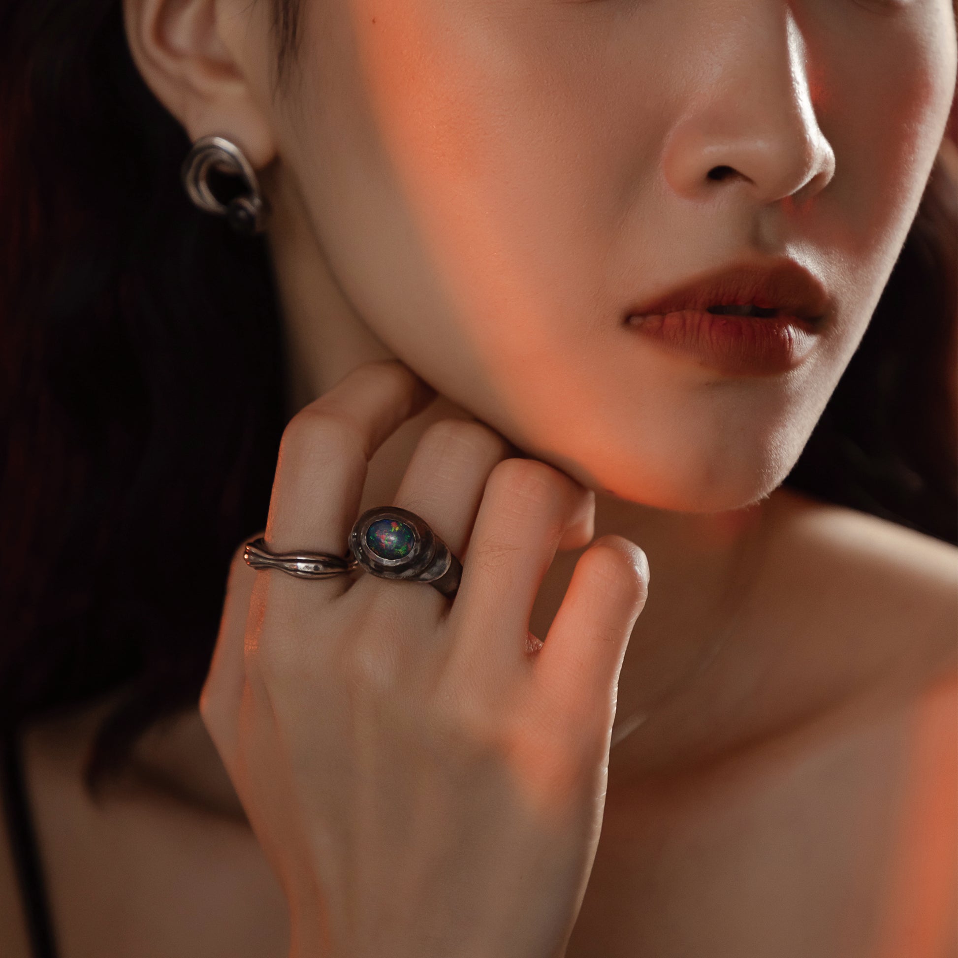 太陽閃焰系列 太陽黑子煙燻蛋白石戒指/耳夾-純銀染黑