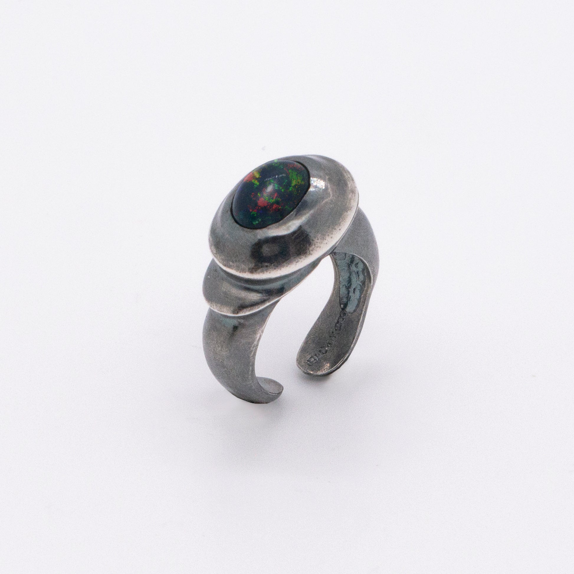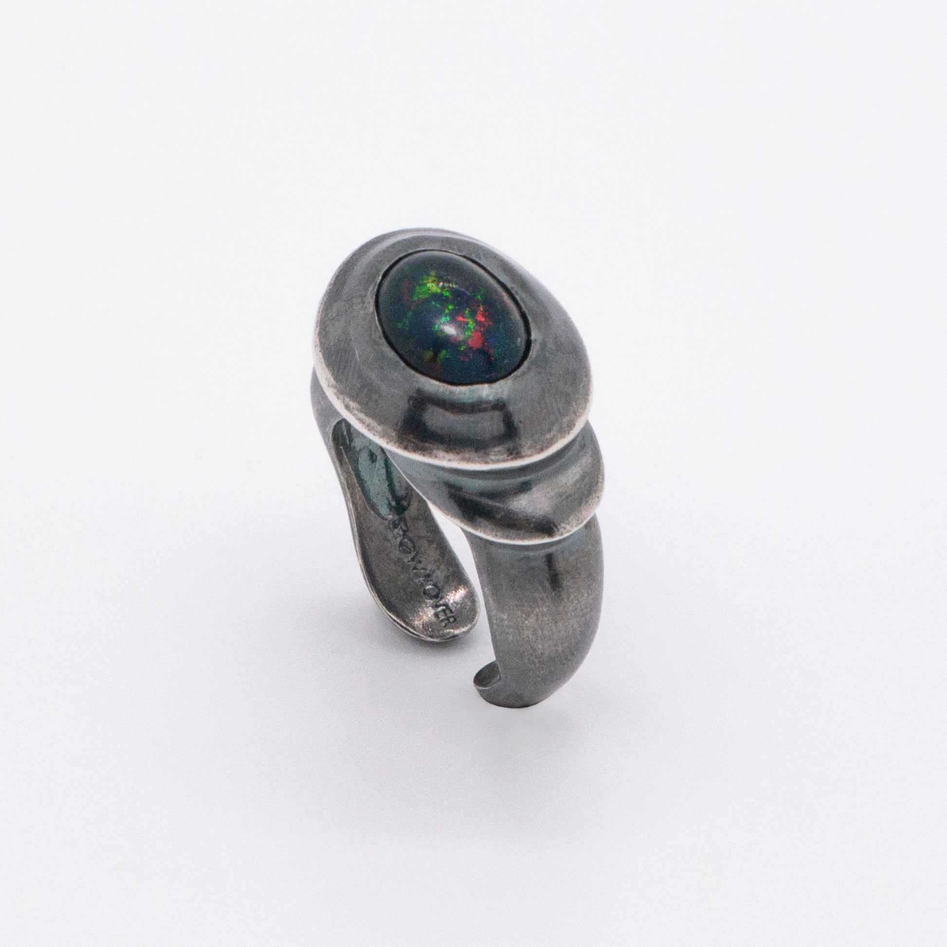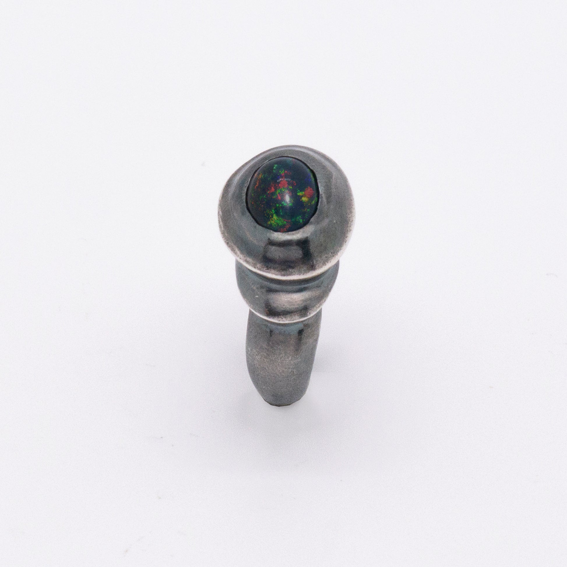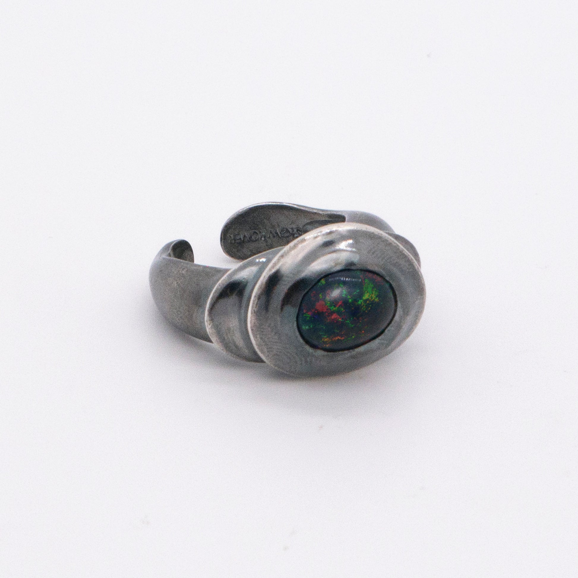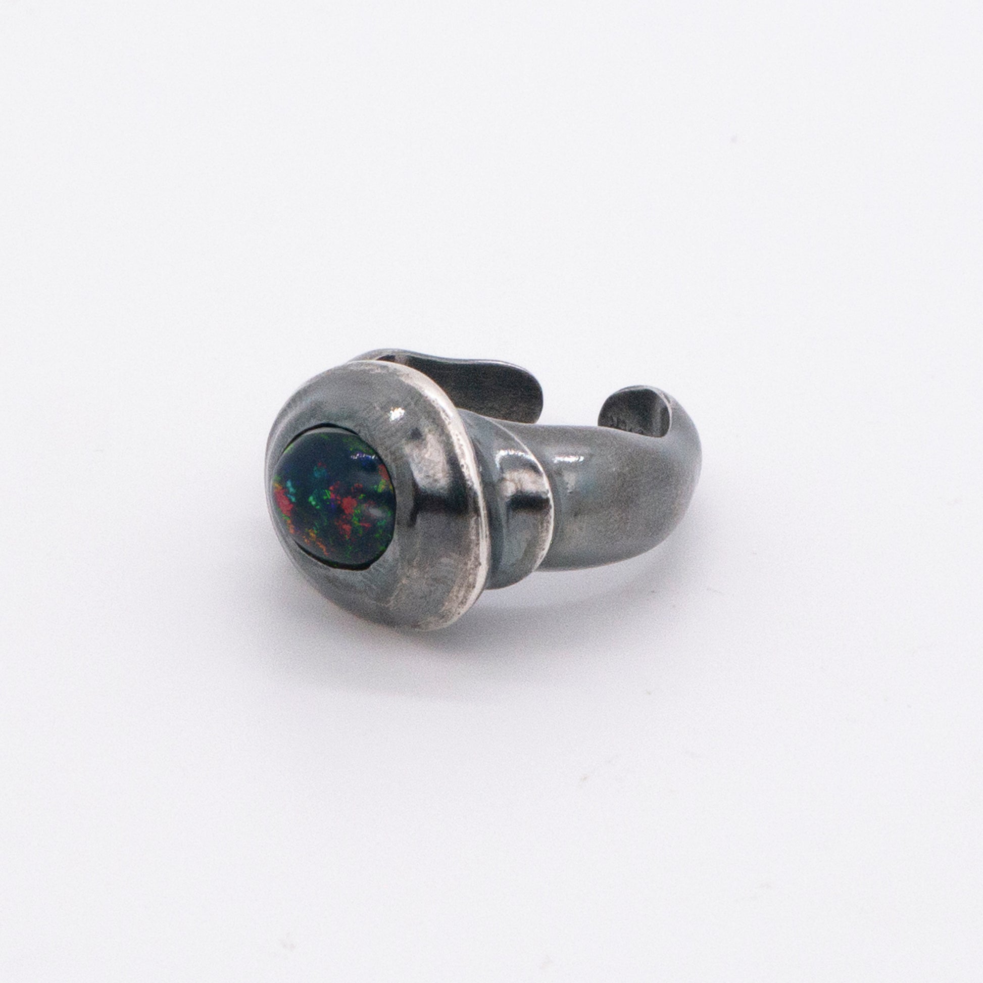 太陽閃焰 太陽黑子煙燻蛋白石戒指/耳夾-純銀染黑