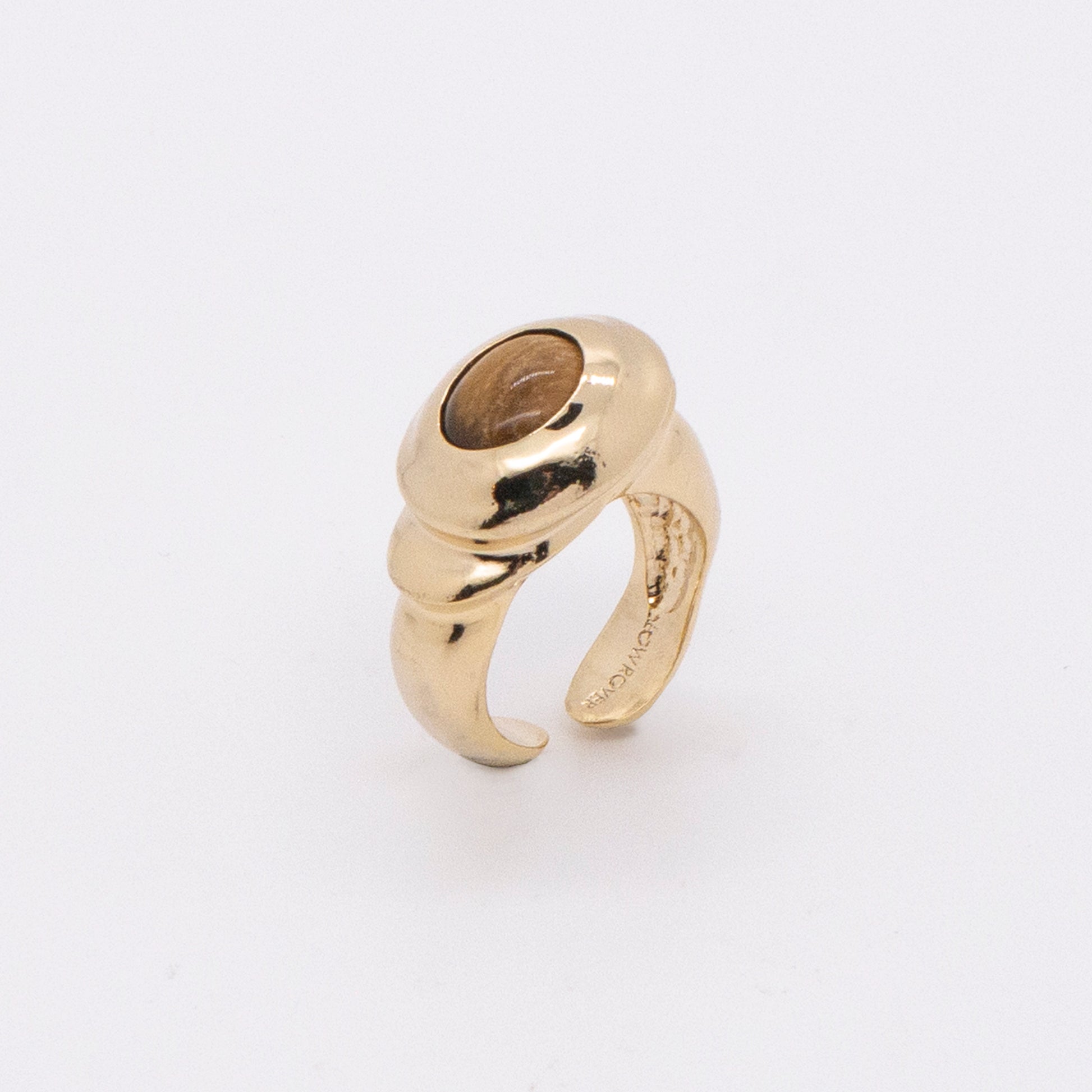 太陽閃焰 太陽黑子虎眼石戒指/耳夾-厚鍍18K金