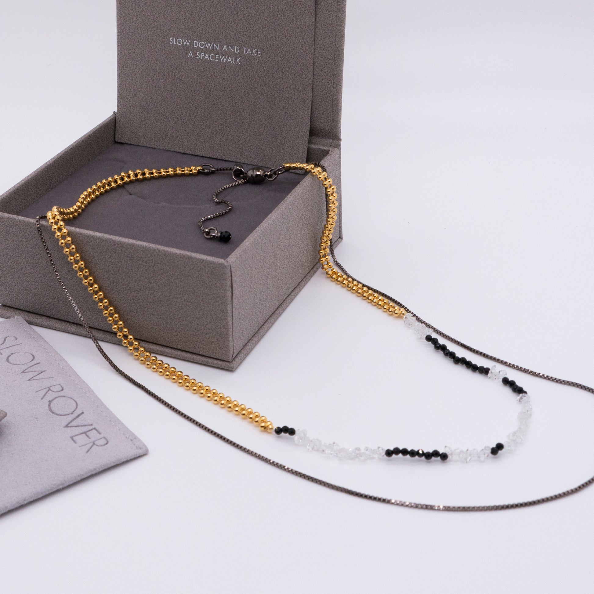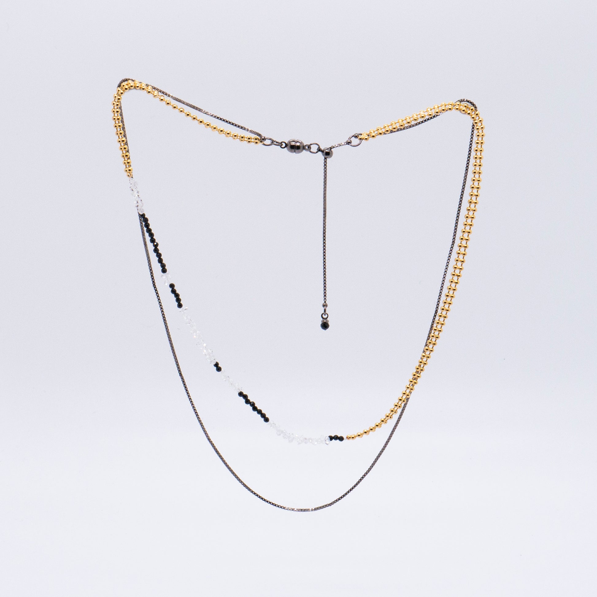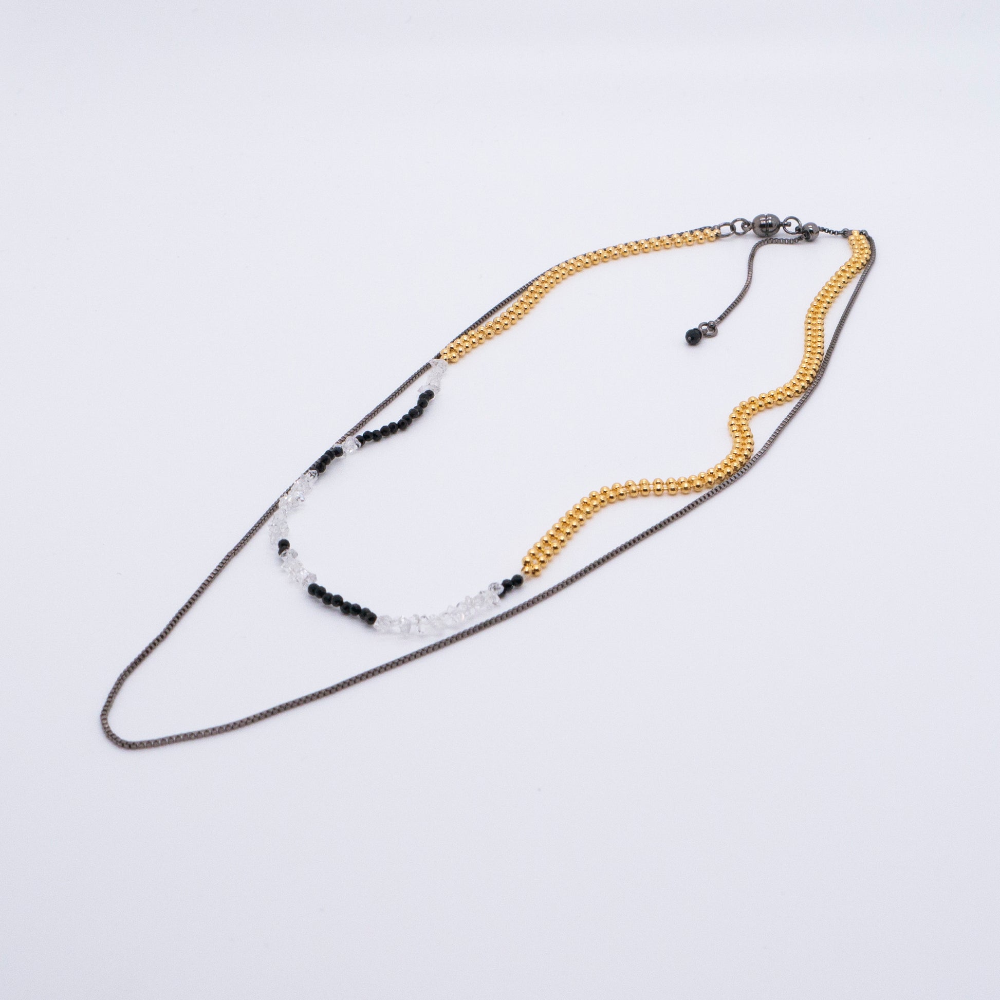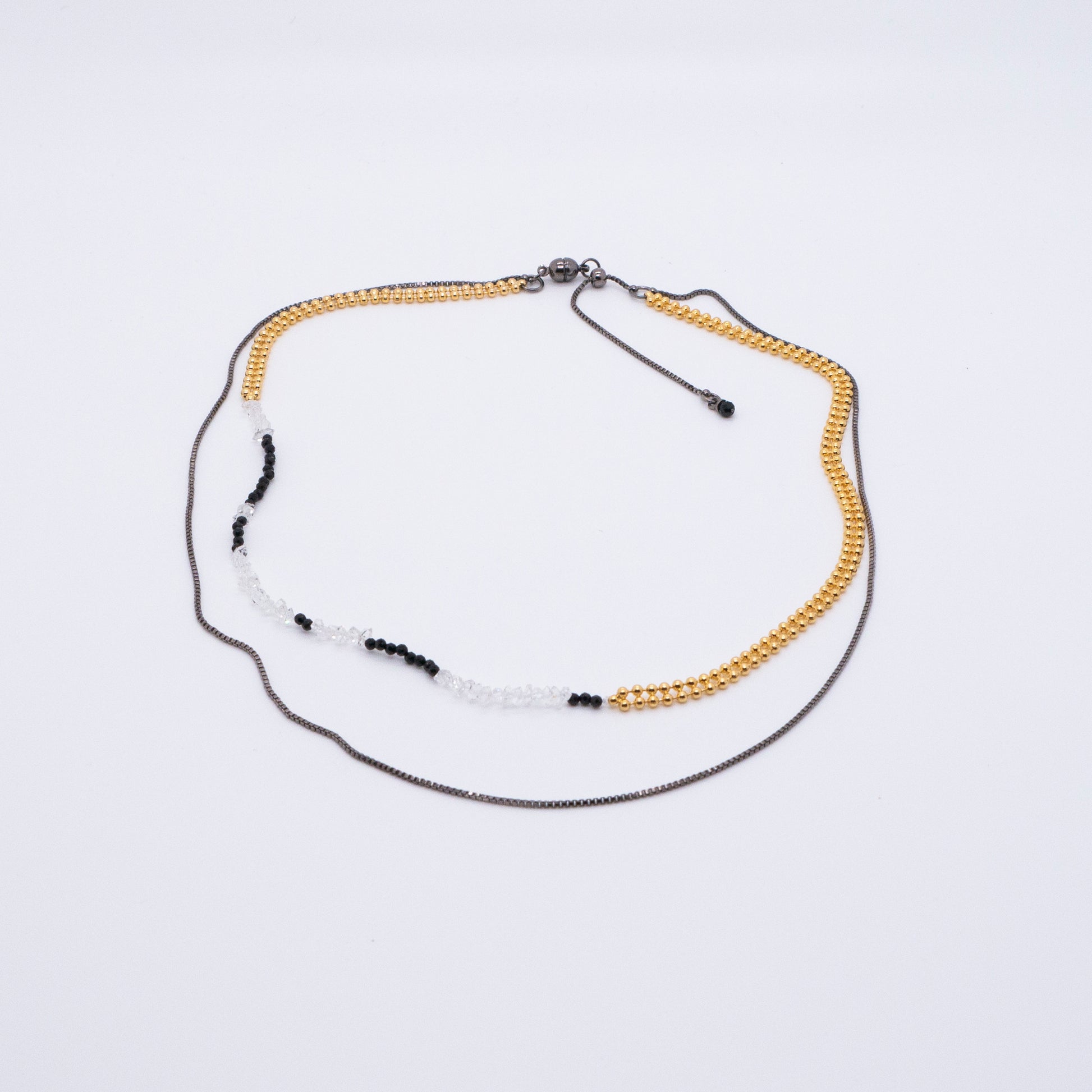 宇宙冰晶系列 冰晶珠鍊雙層項鍊-厚鍍金黑雙色