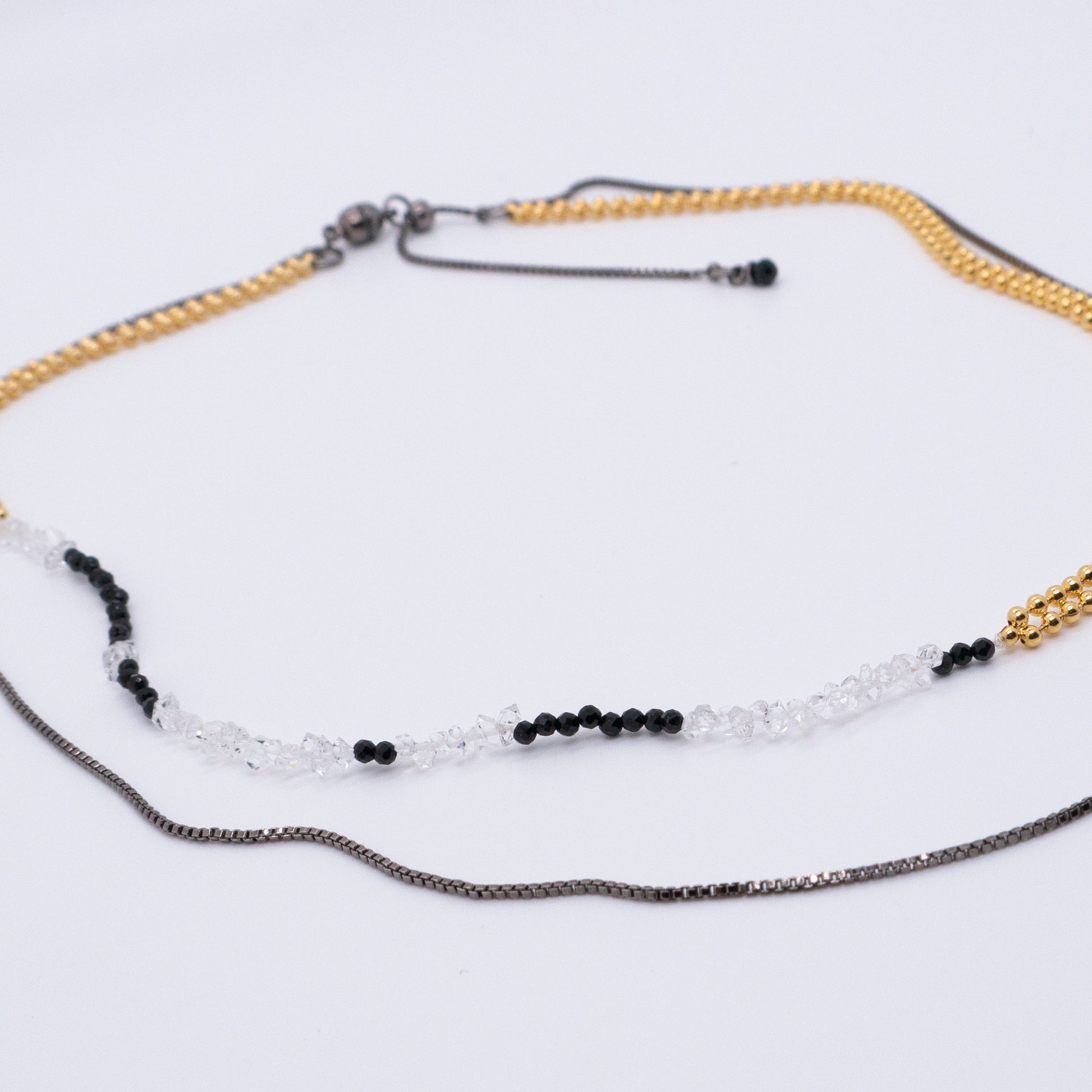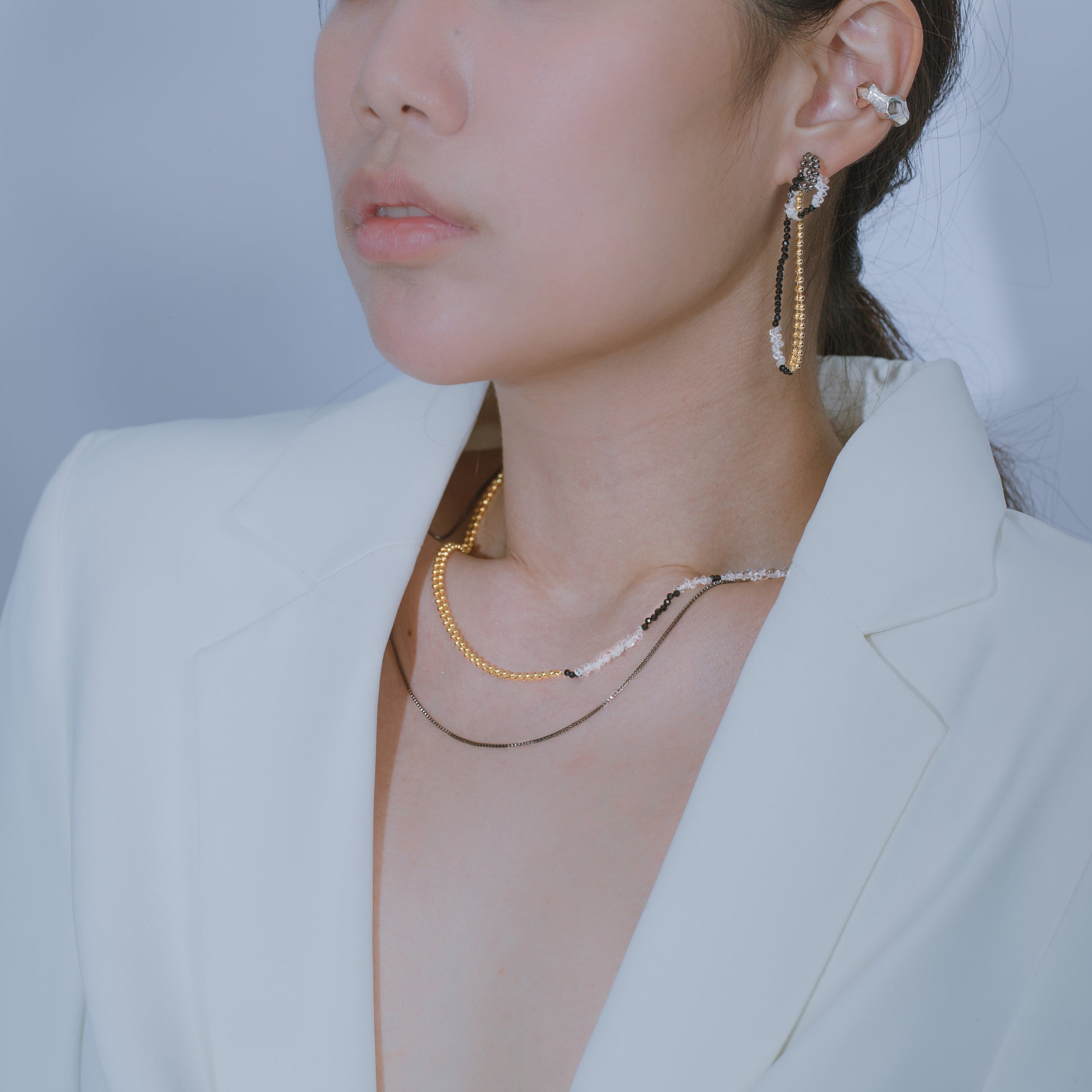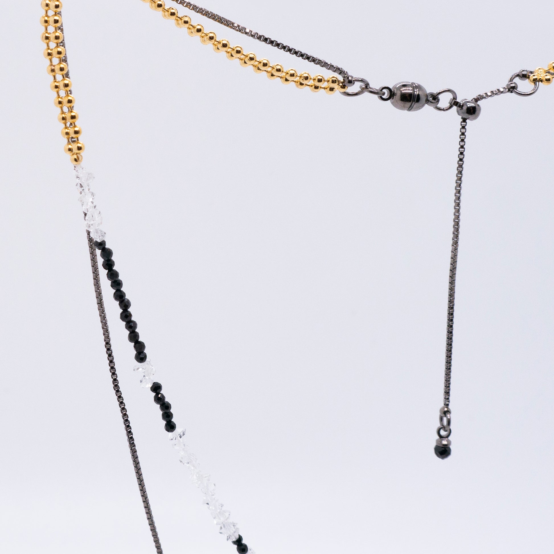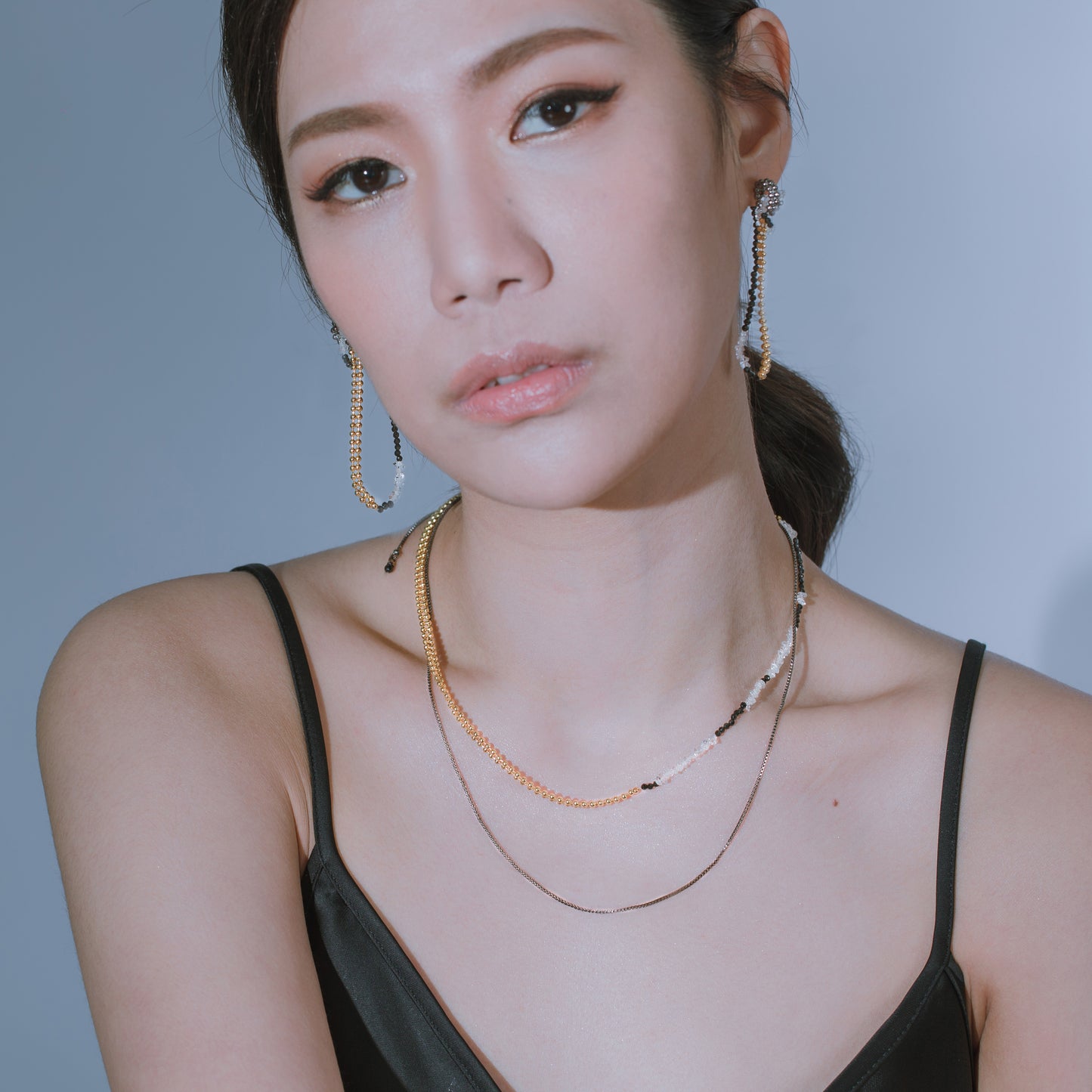 宇宙冰晶系列 冰晶珠鍊雙層項鍊-厚鍍金黑雙色