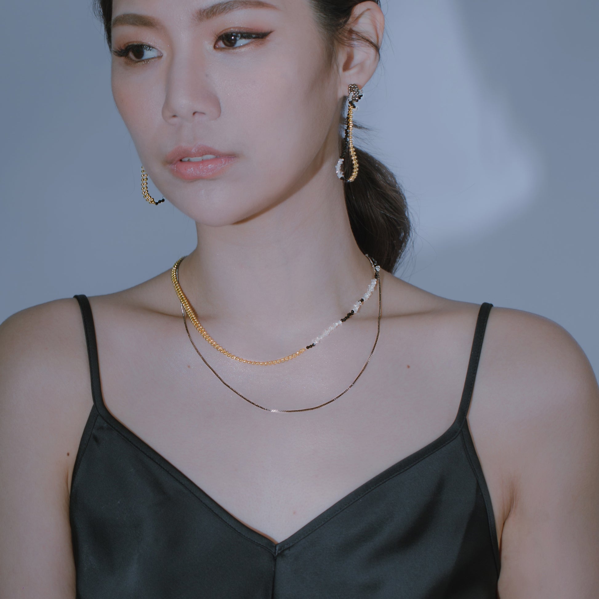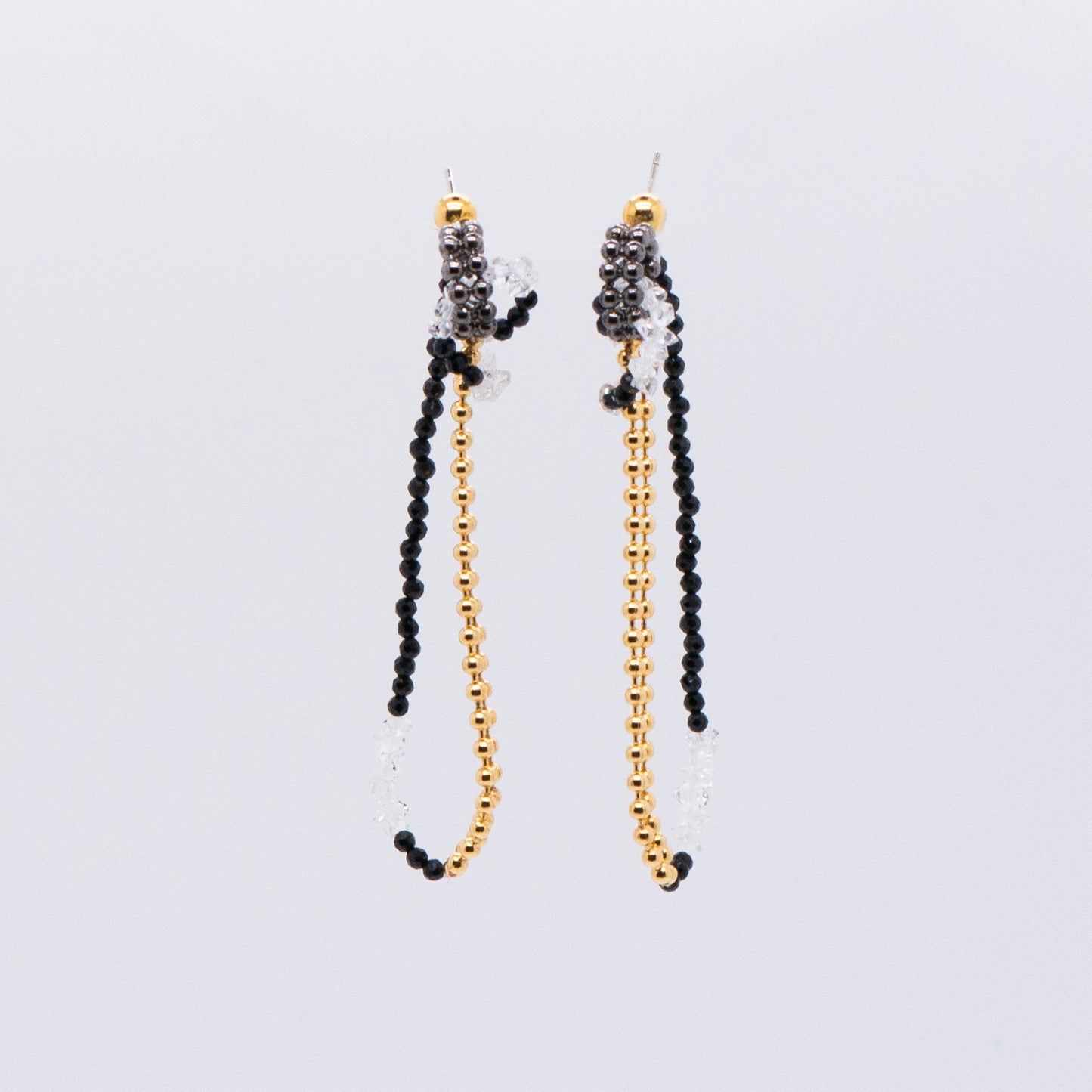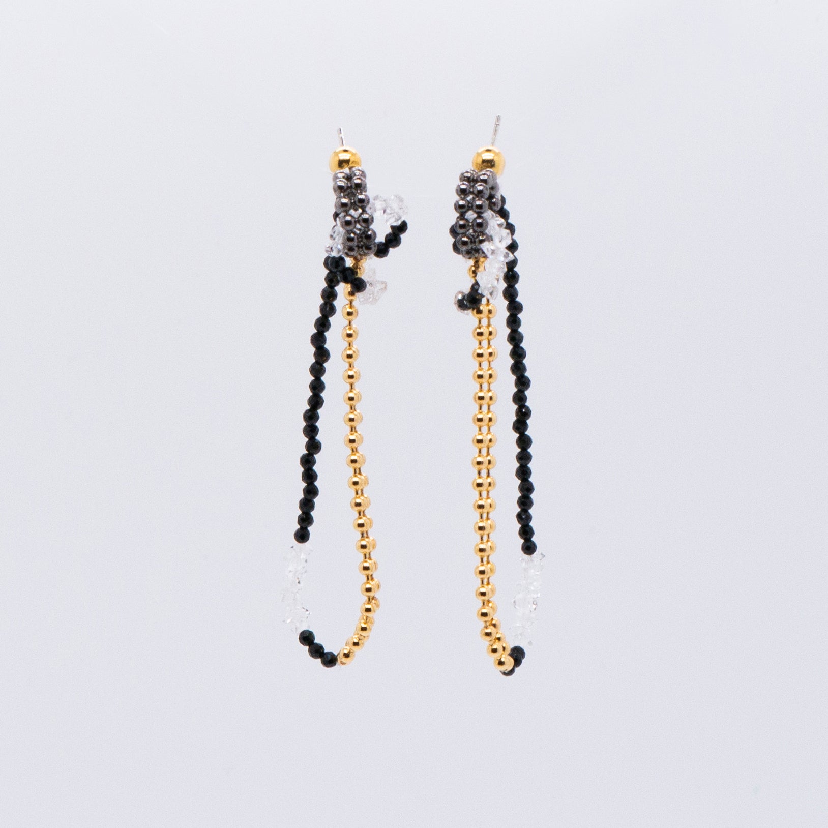 宇宙冰晶系列 冰晶珠鍊垂墜耳環-厚鍍金黑雙色