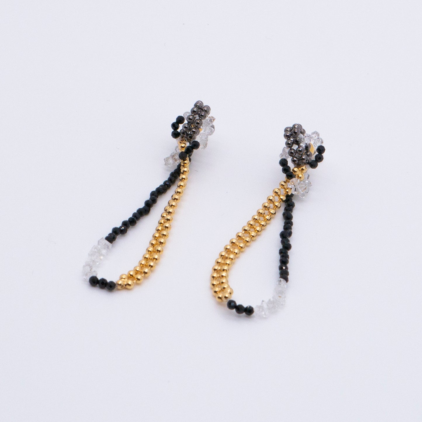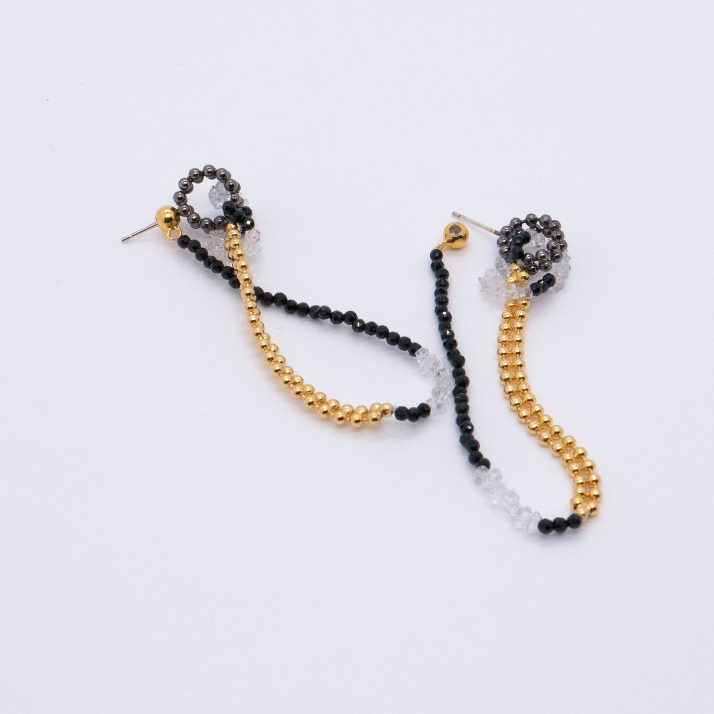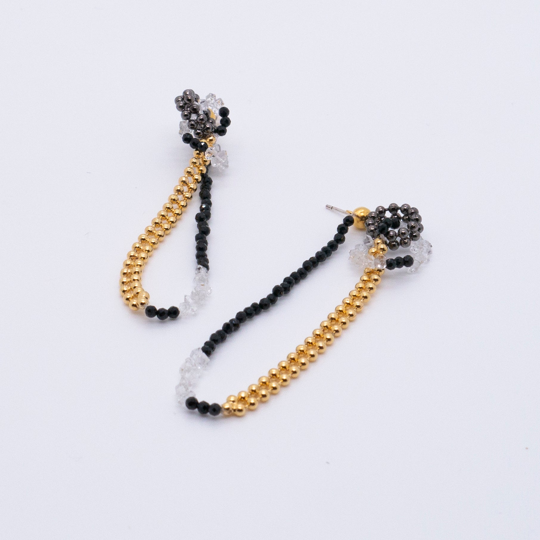 - 材質:黃銅厚鍍黑金&18K金、閃靈鑽(赫基蒙水晶)、黑尖晶石、925純銀耳針與後扣
