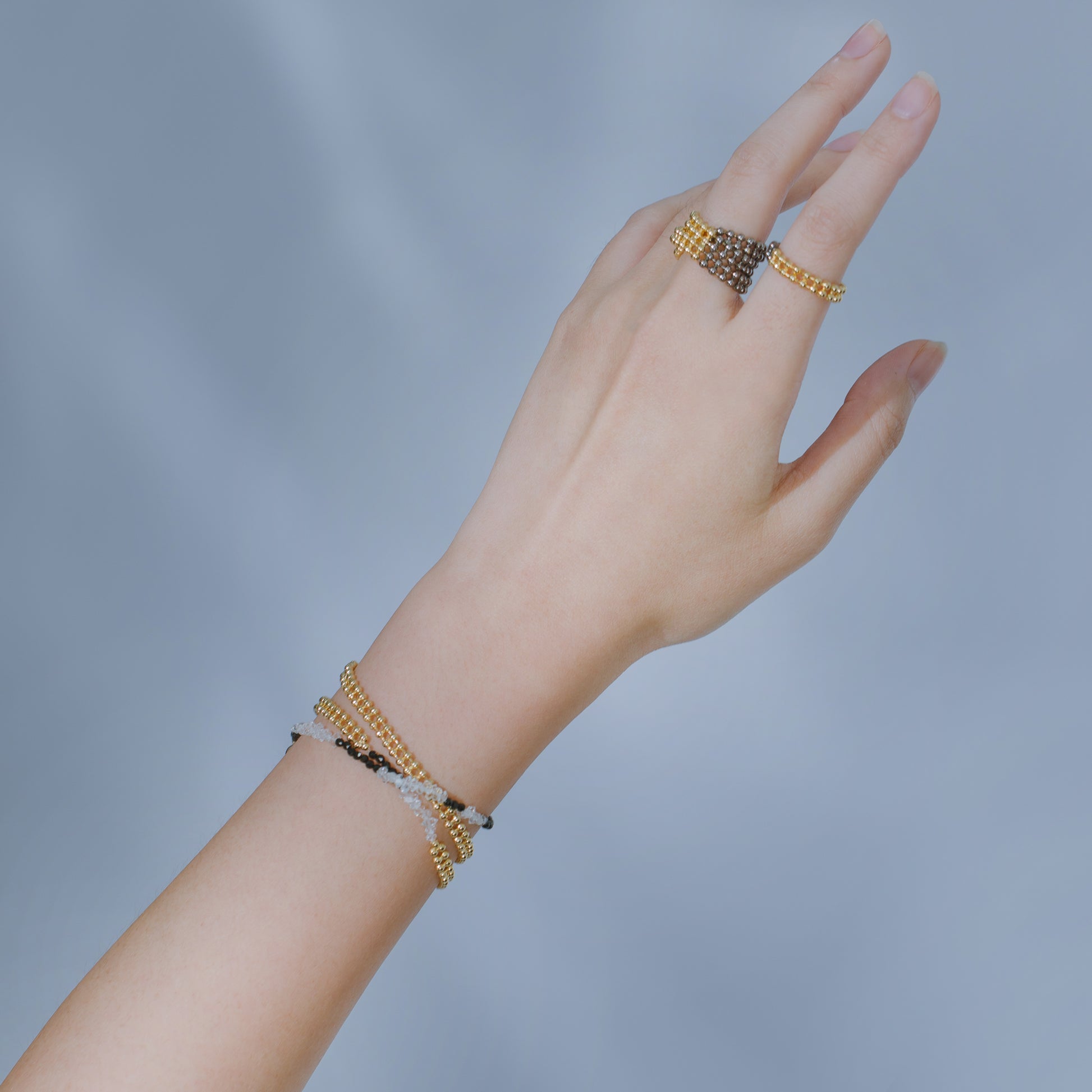 宇宙冰晶 珠鏈戒指-厚鍍金黑雙色