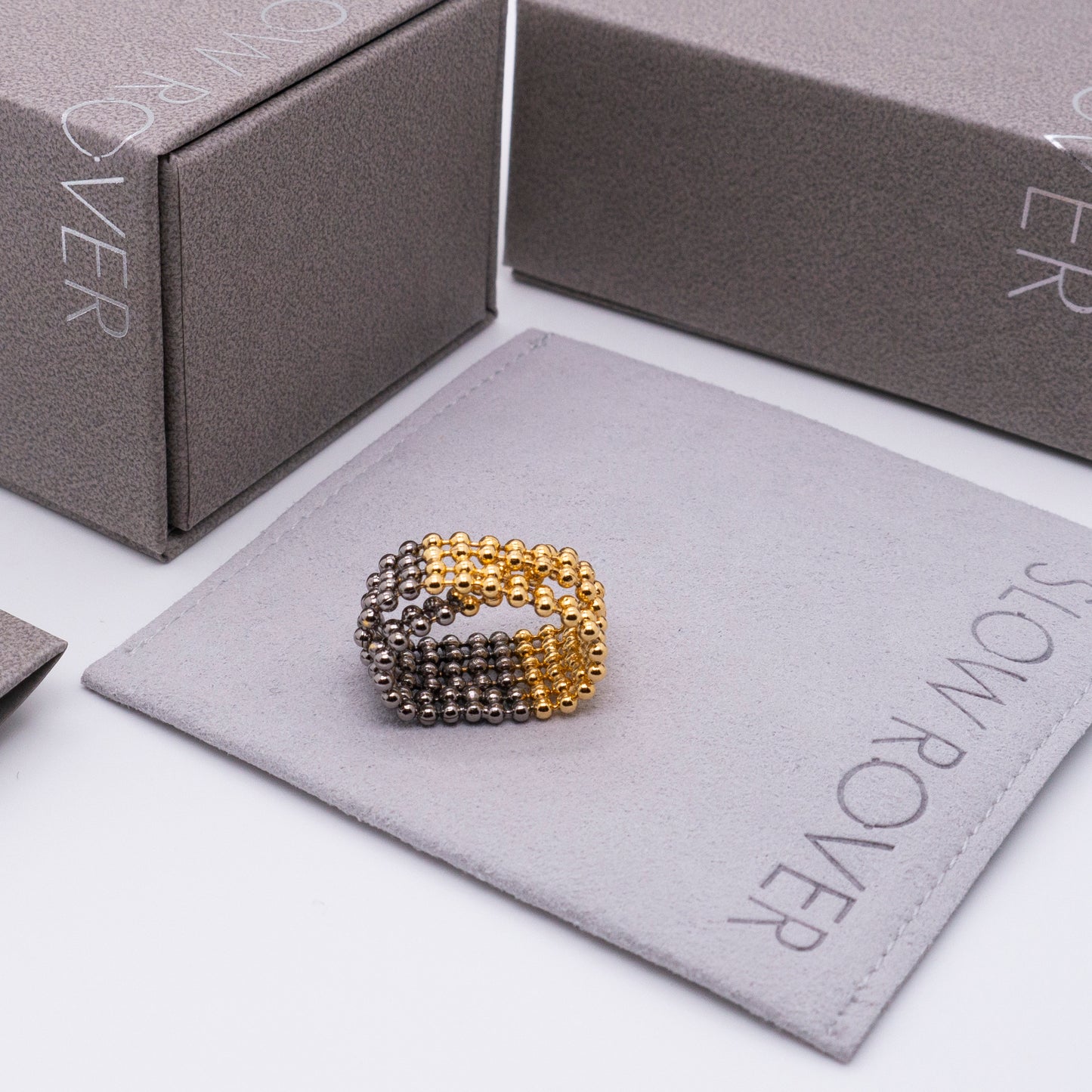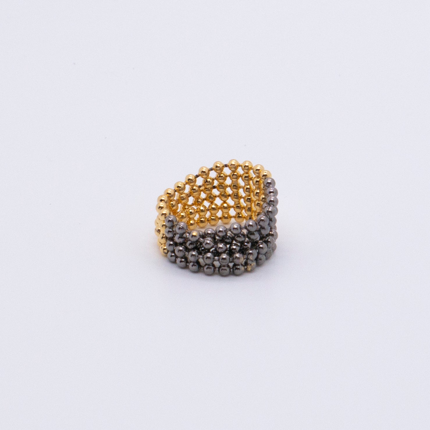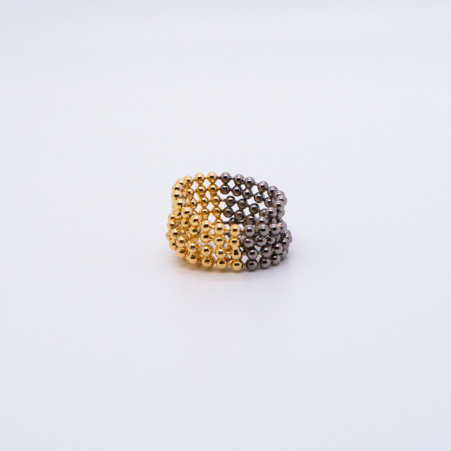 宇宙冰晶系列 珠鏈雙圈戒指-厚鍍金黑雙色