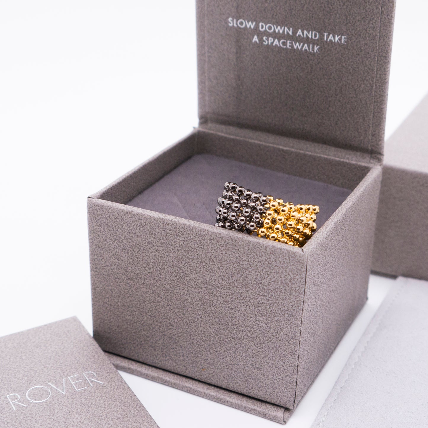 宇宙冰晶 珠鏈雙圈戒指-厚鍍金黑雙色