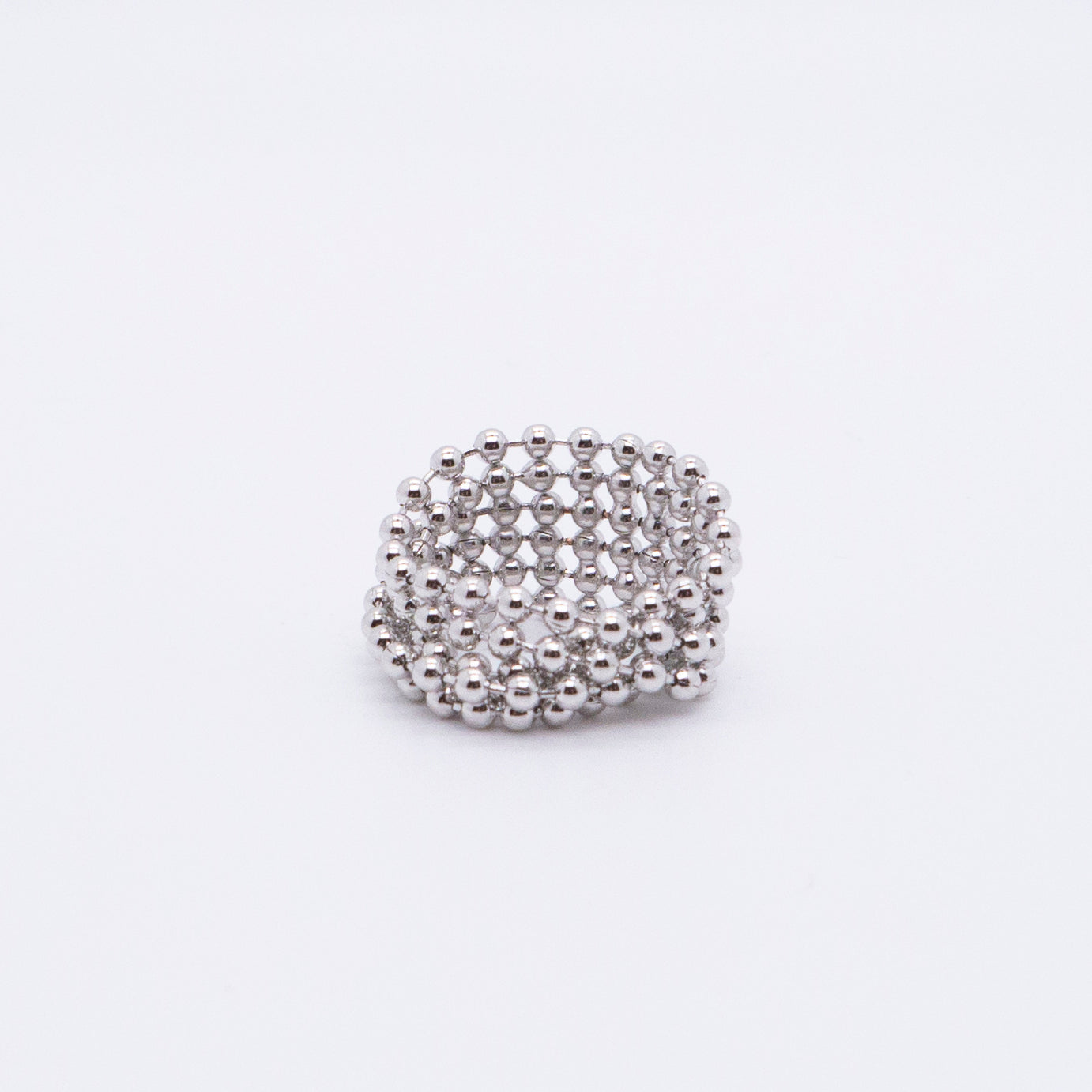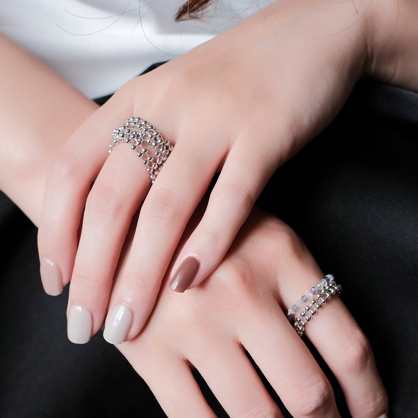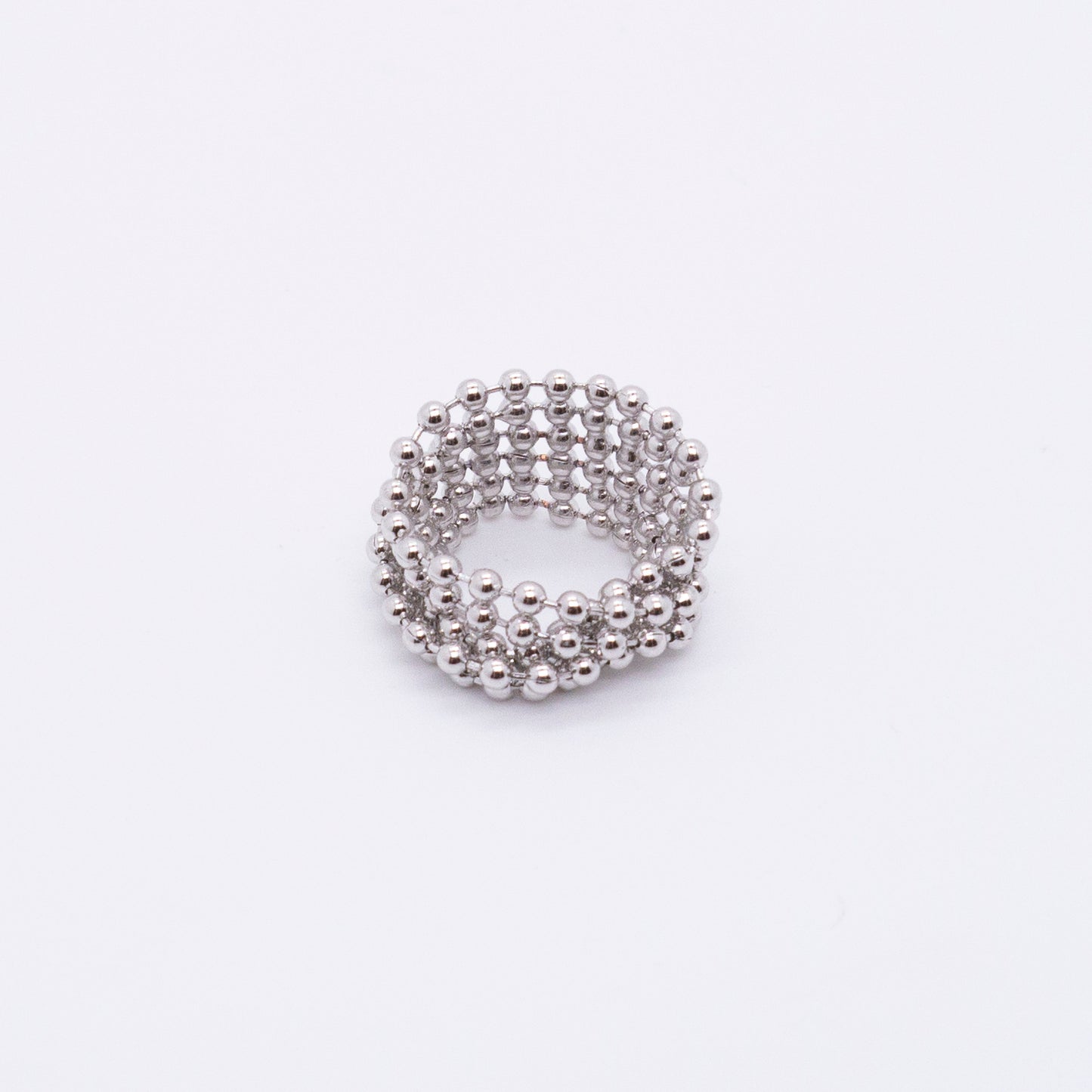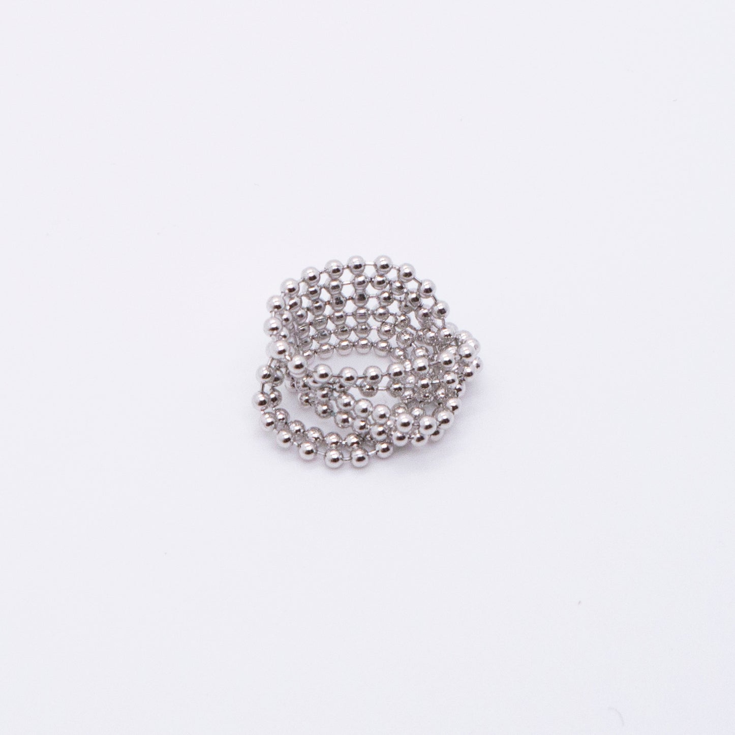 宇宙冰晶 珠鍊雙圈戒指-厚鍍白K金
