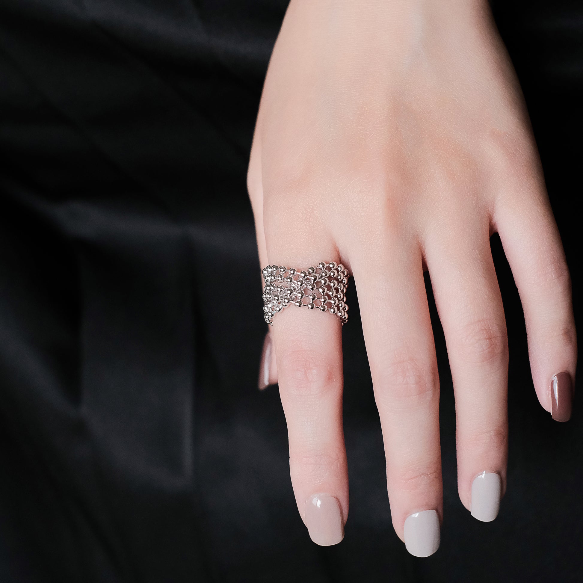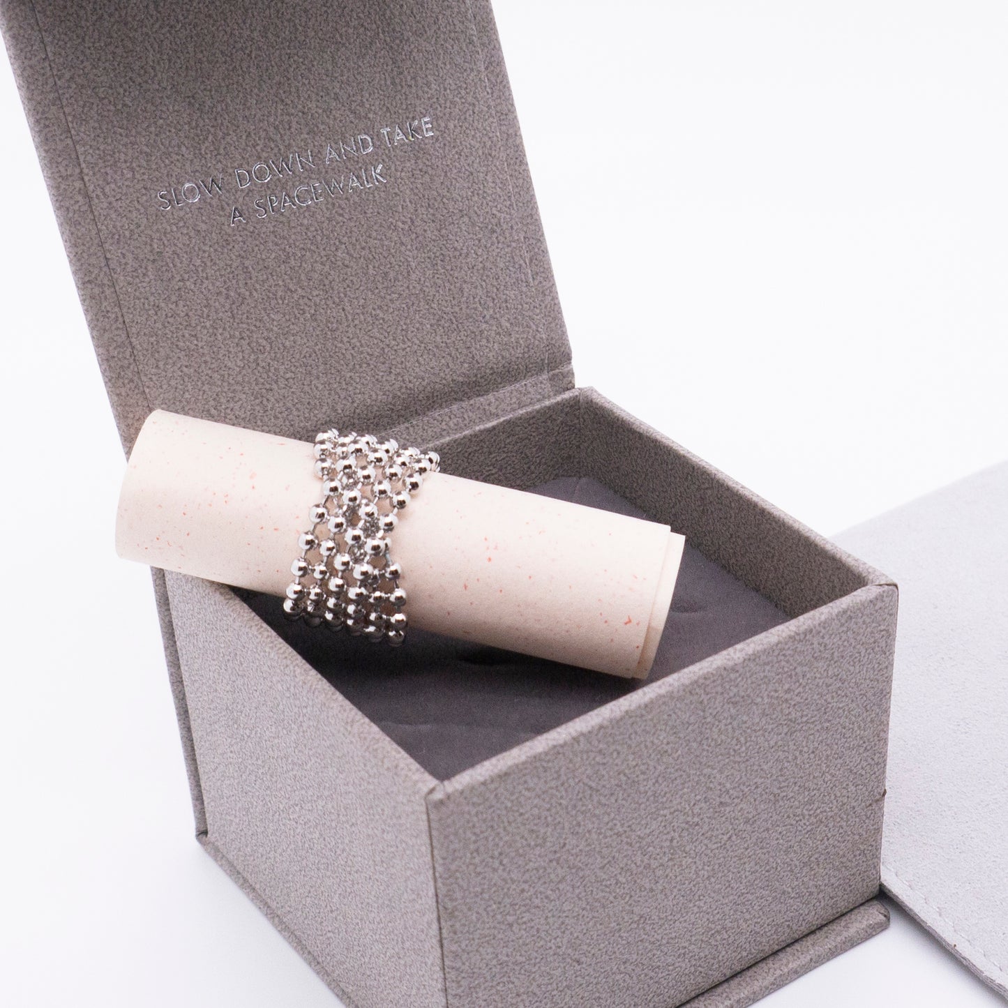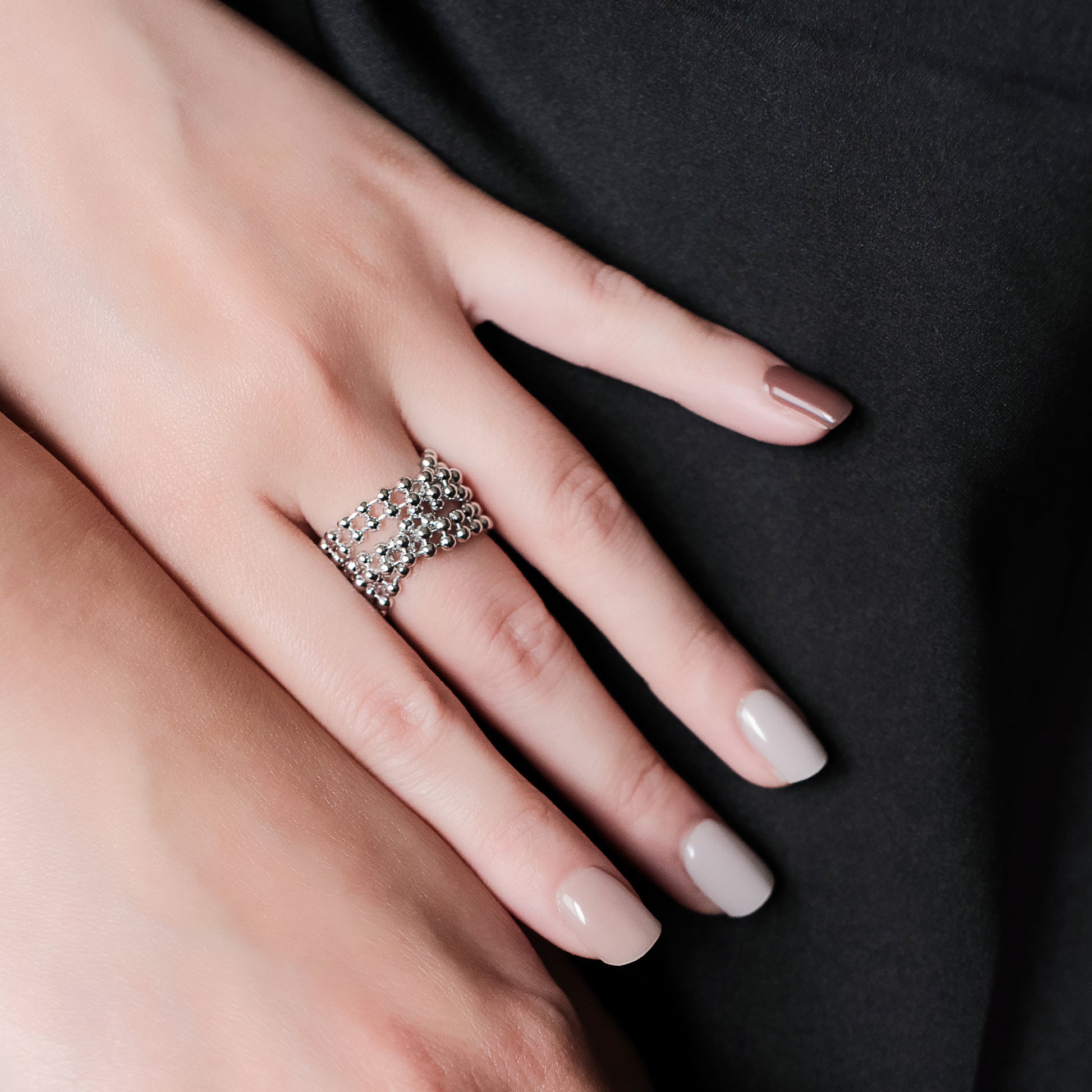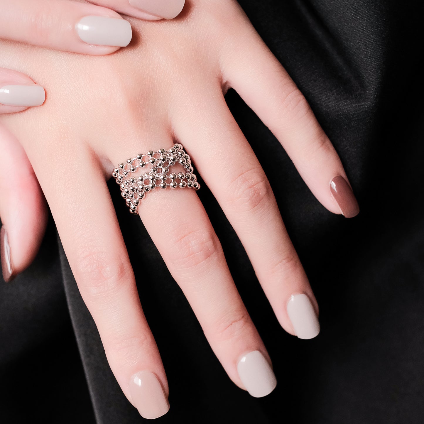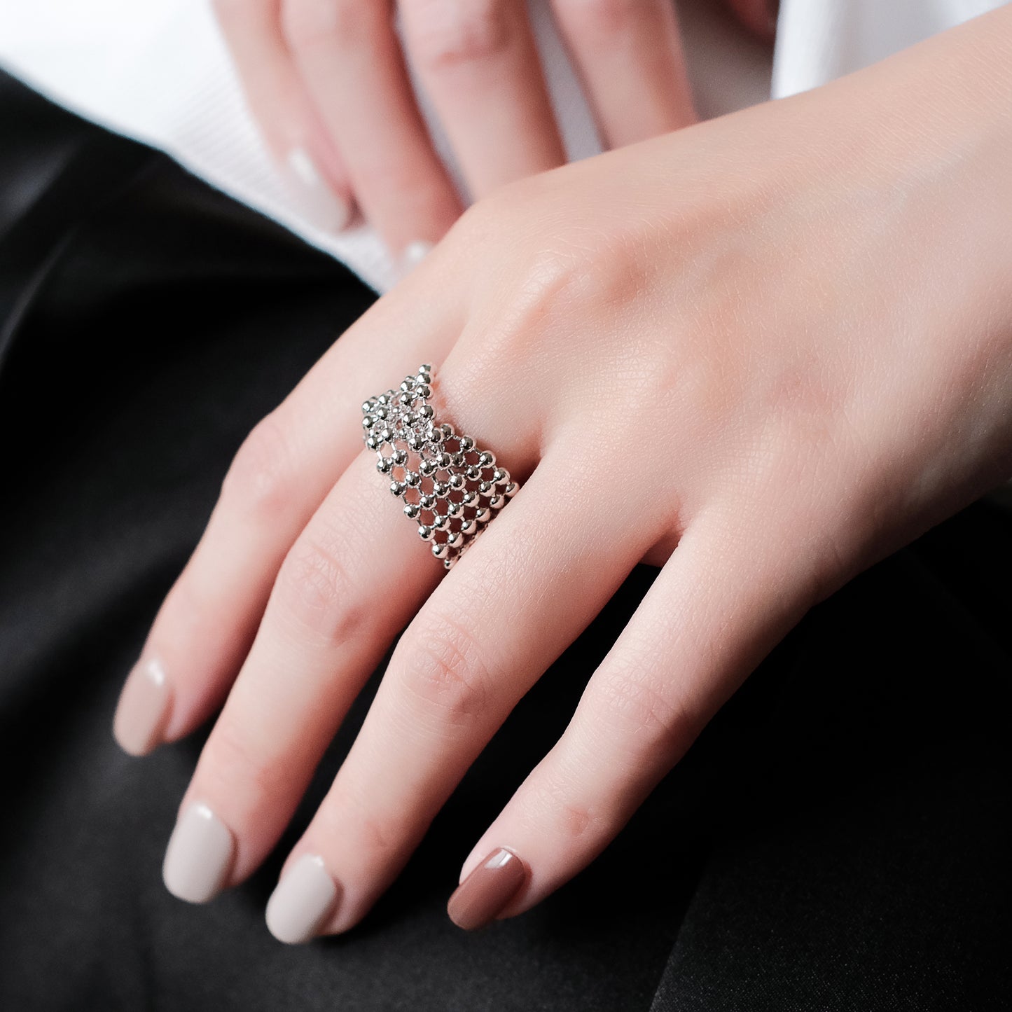 宇宙冰晶 珠鍊雙圈戒指-厚鍍白K金