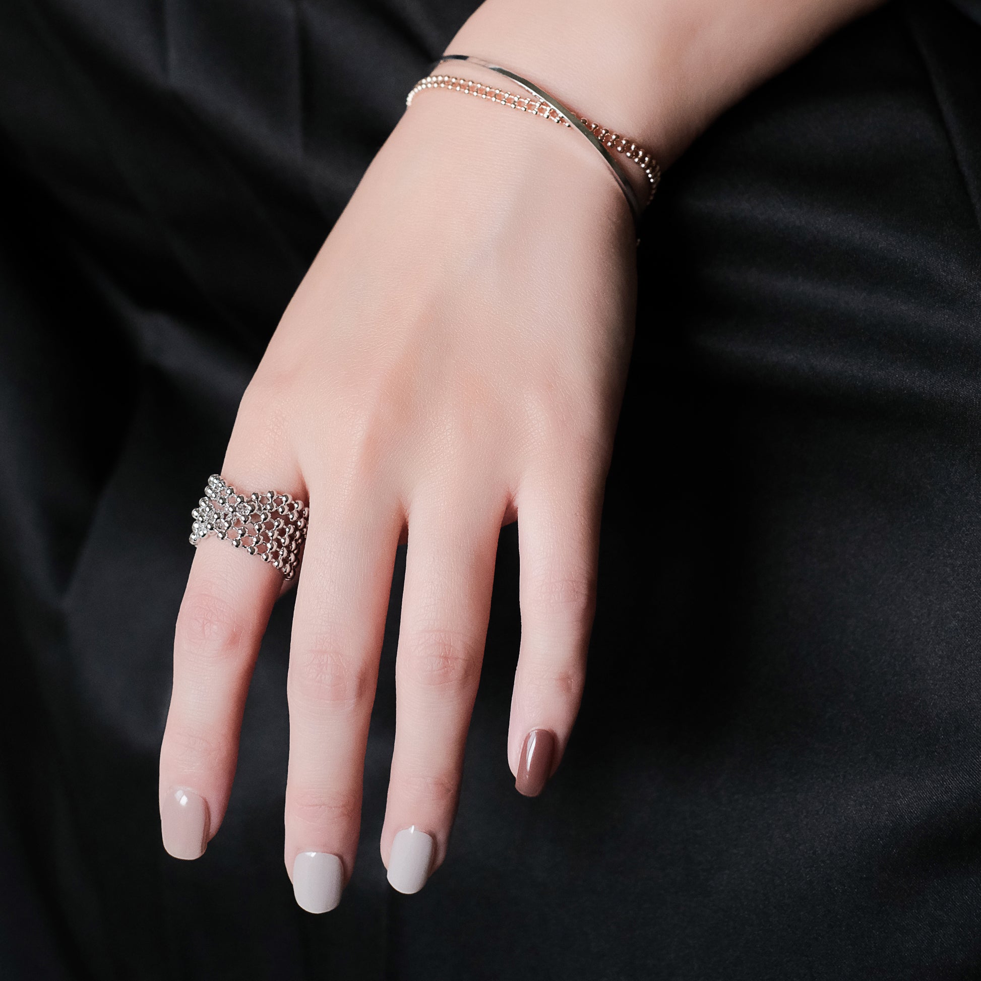宇宙冰晶系列 珠鍊雙圈戒指-厚鍍白K金