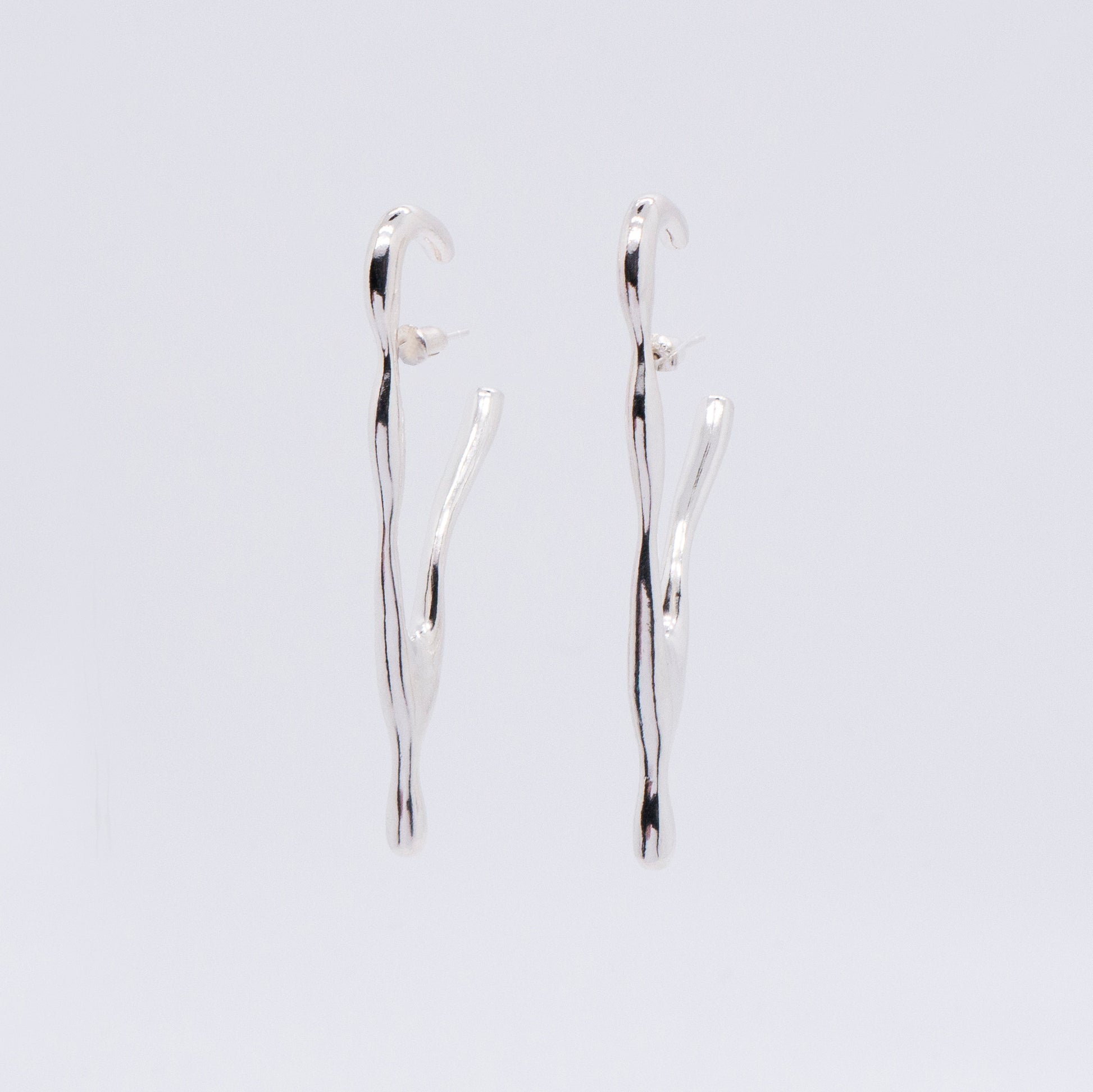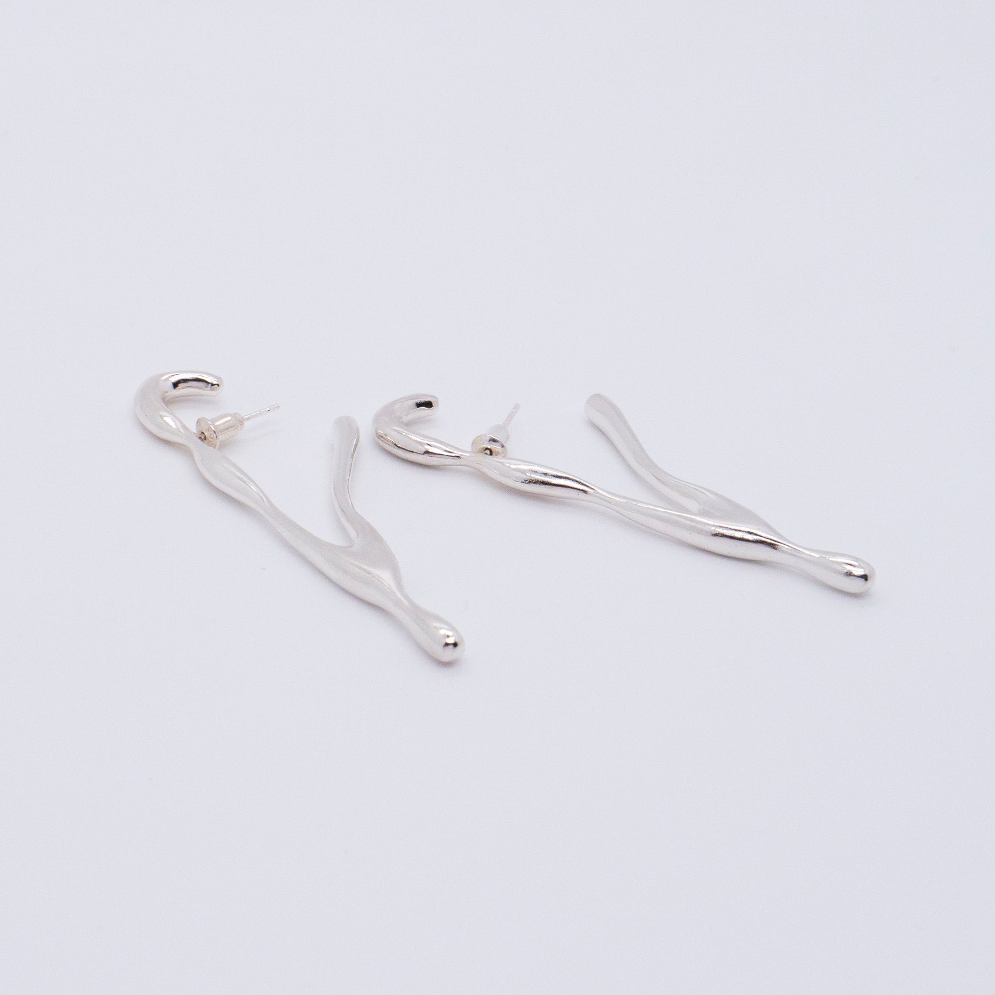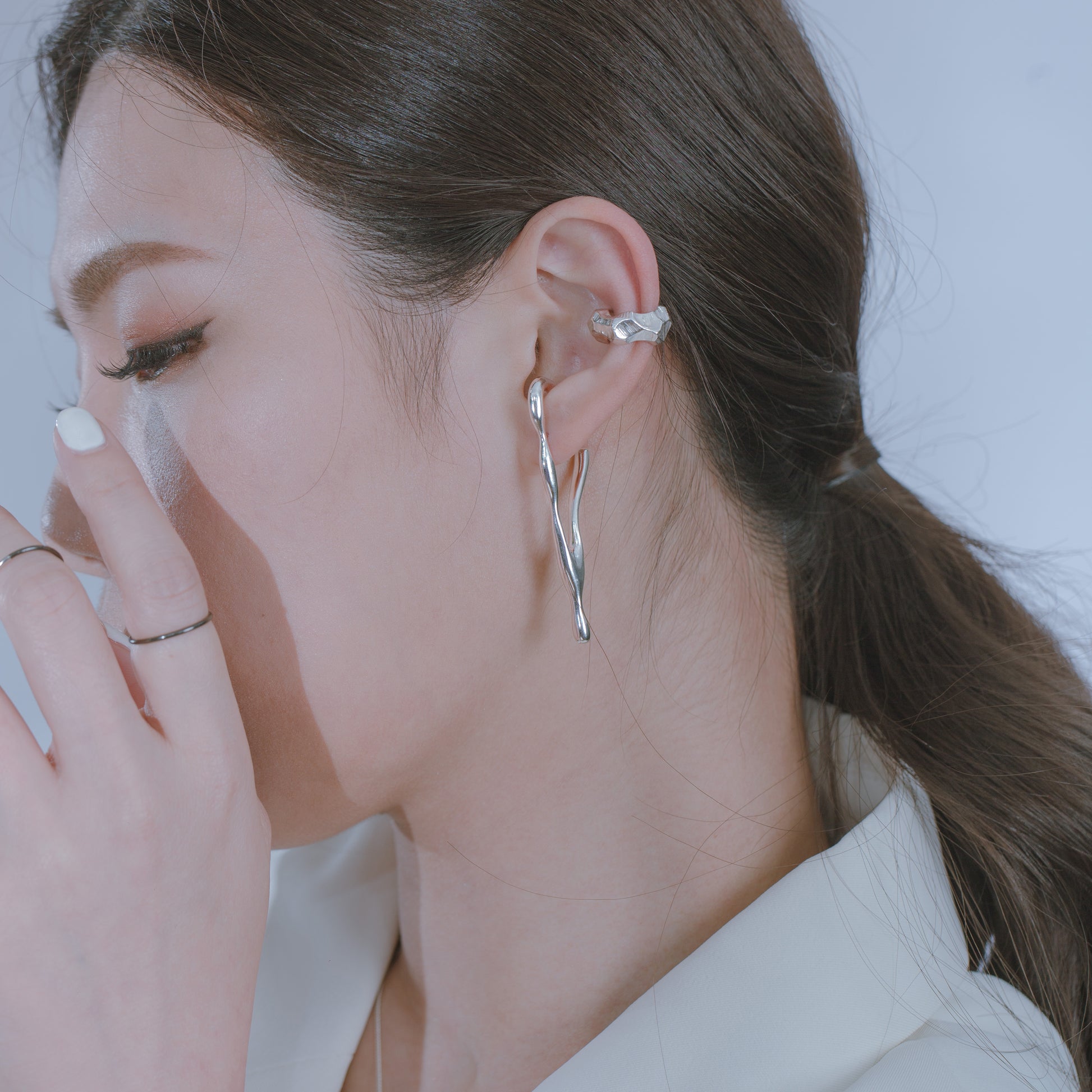 宇宙冰晶系列 - 流線長耳環 - 純銀