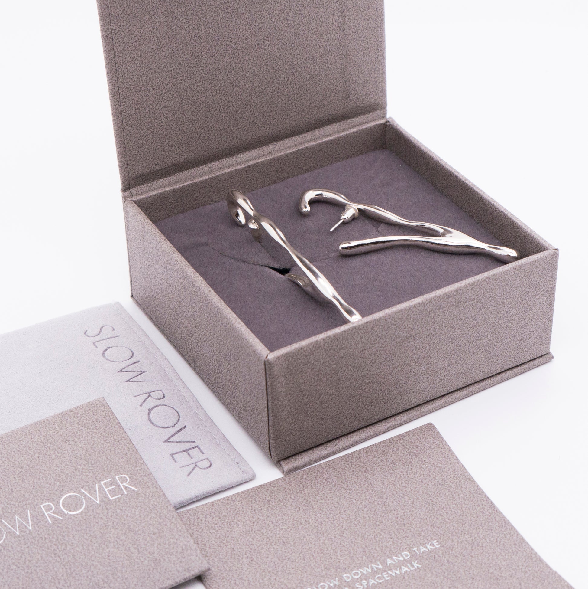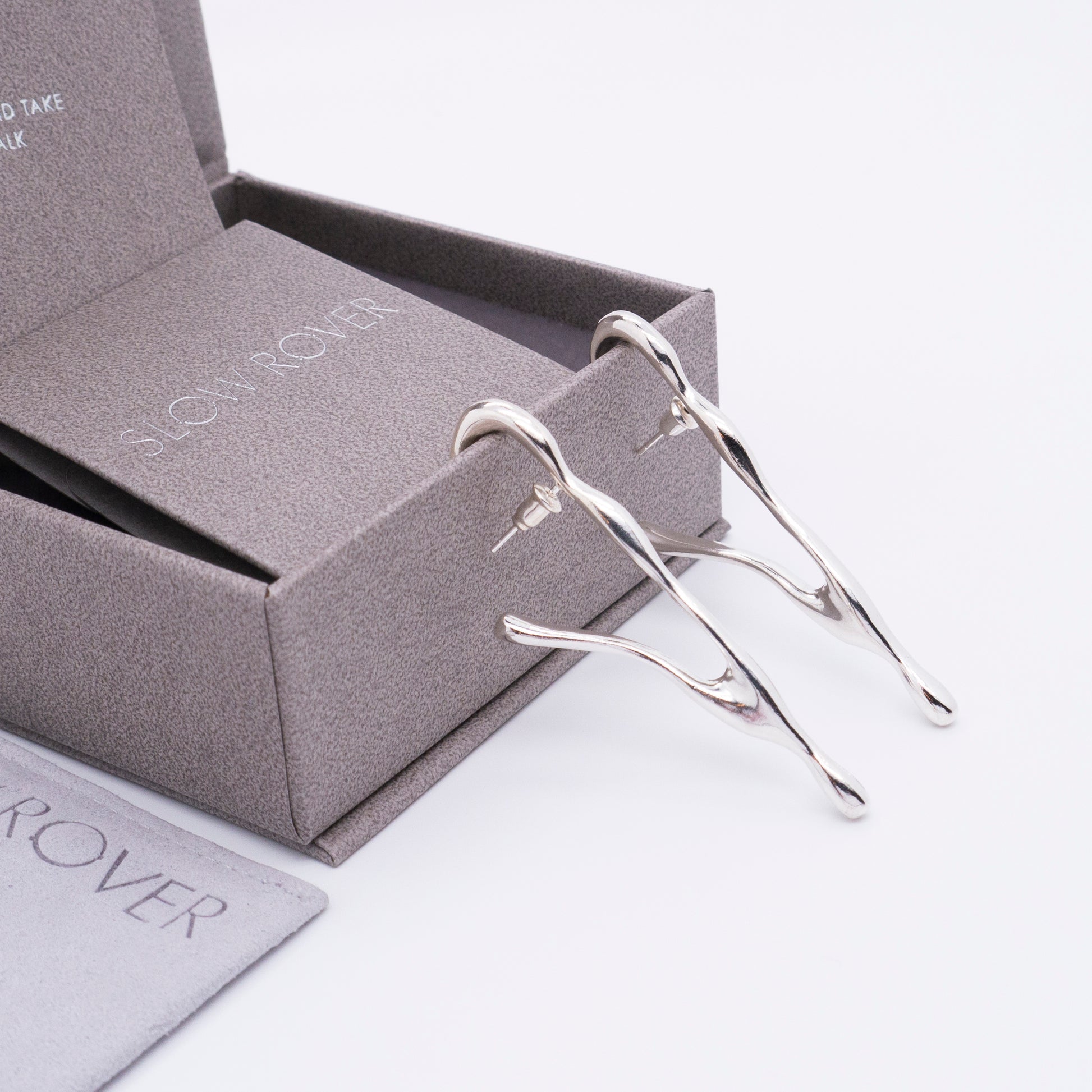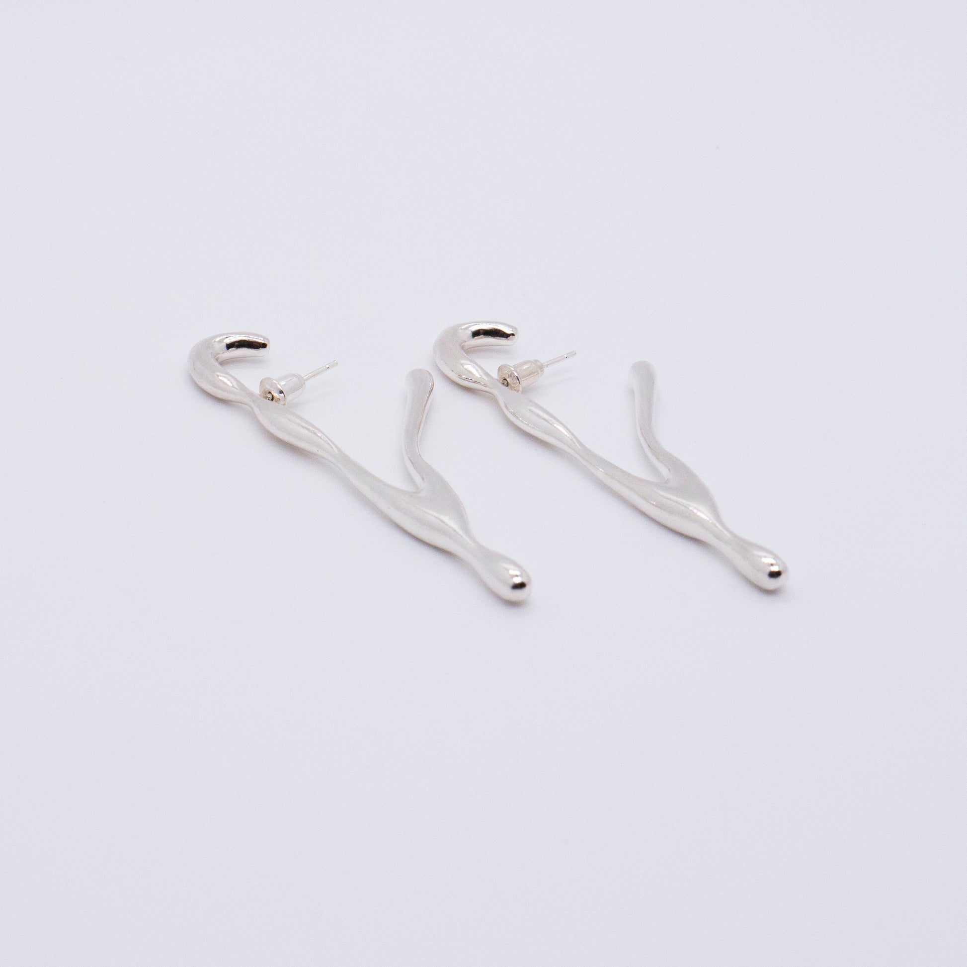 宇宙冰晶系列 - 流線長耳環 - 純銀