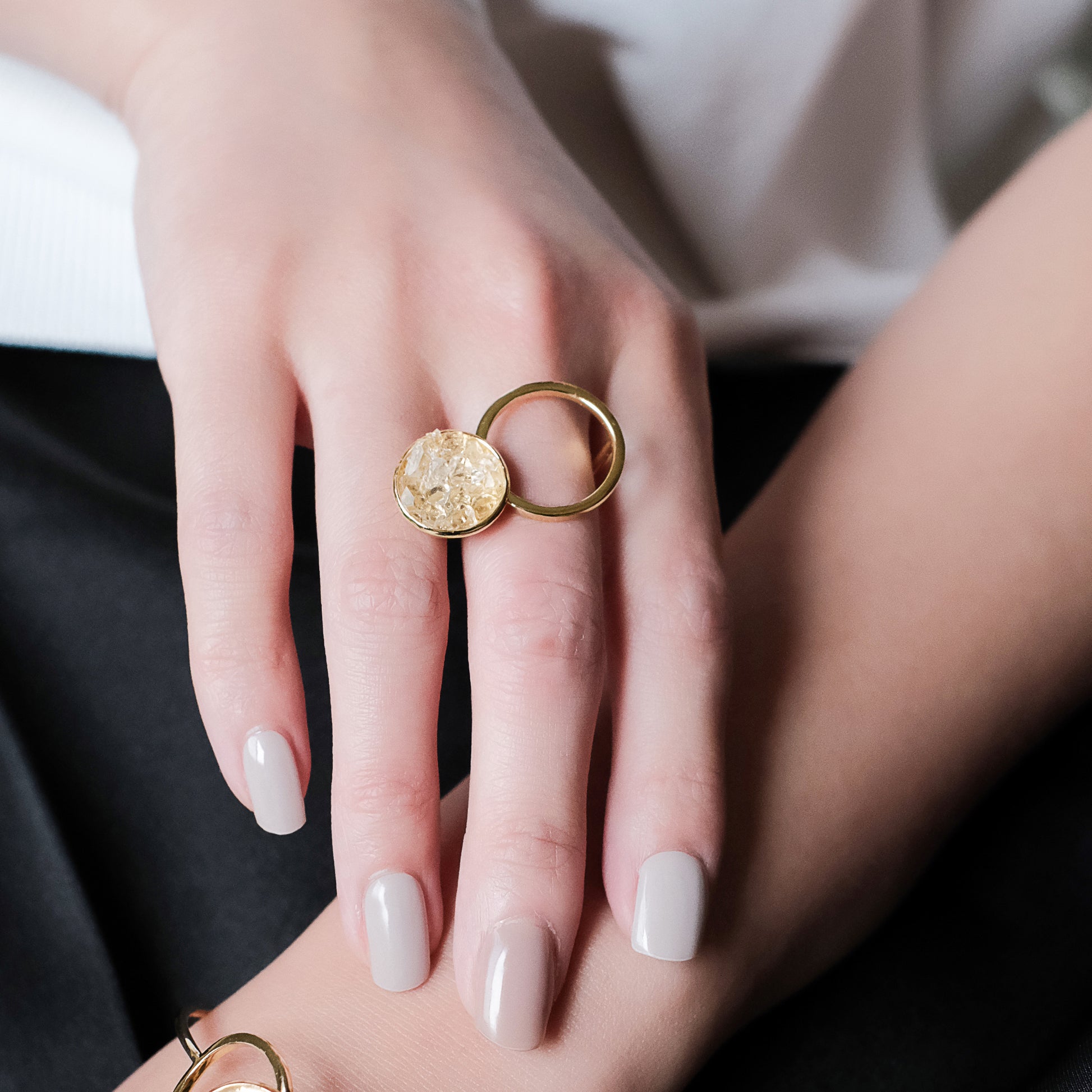 宇宙冰晶系列 - 胭紅薄霧 冰湖戒指 - 厚鍍18K金