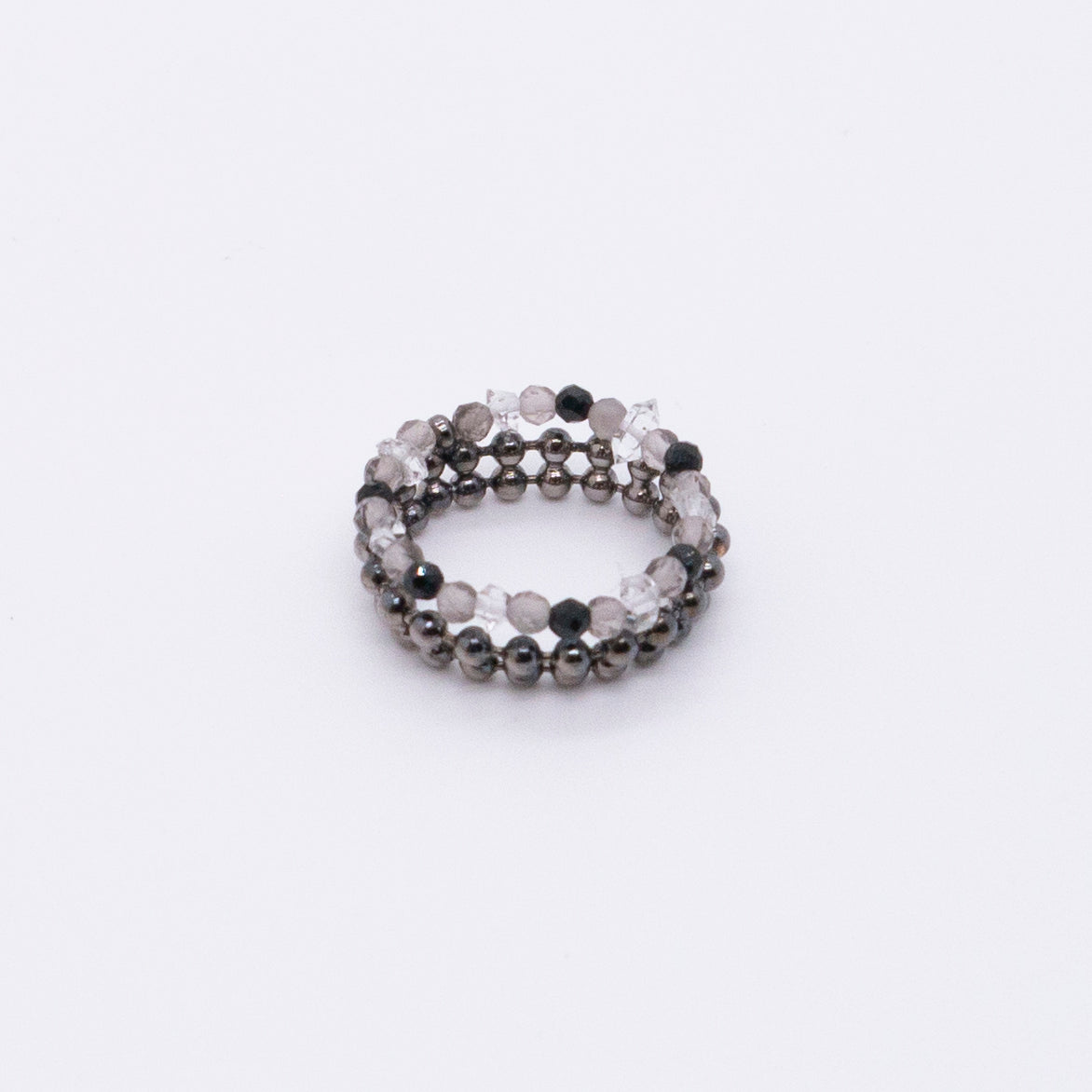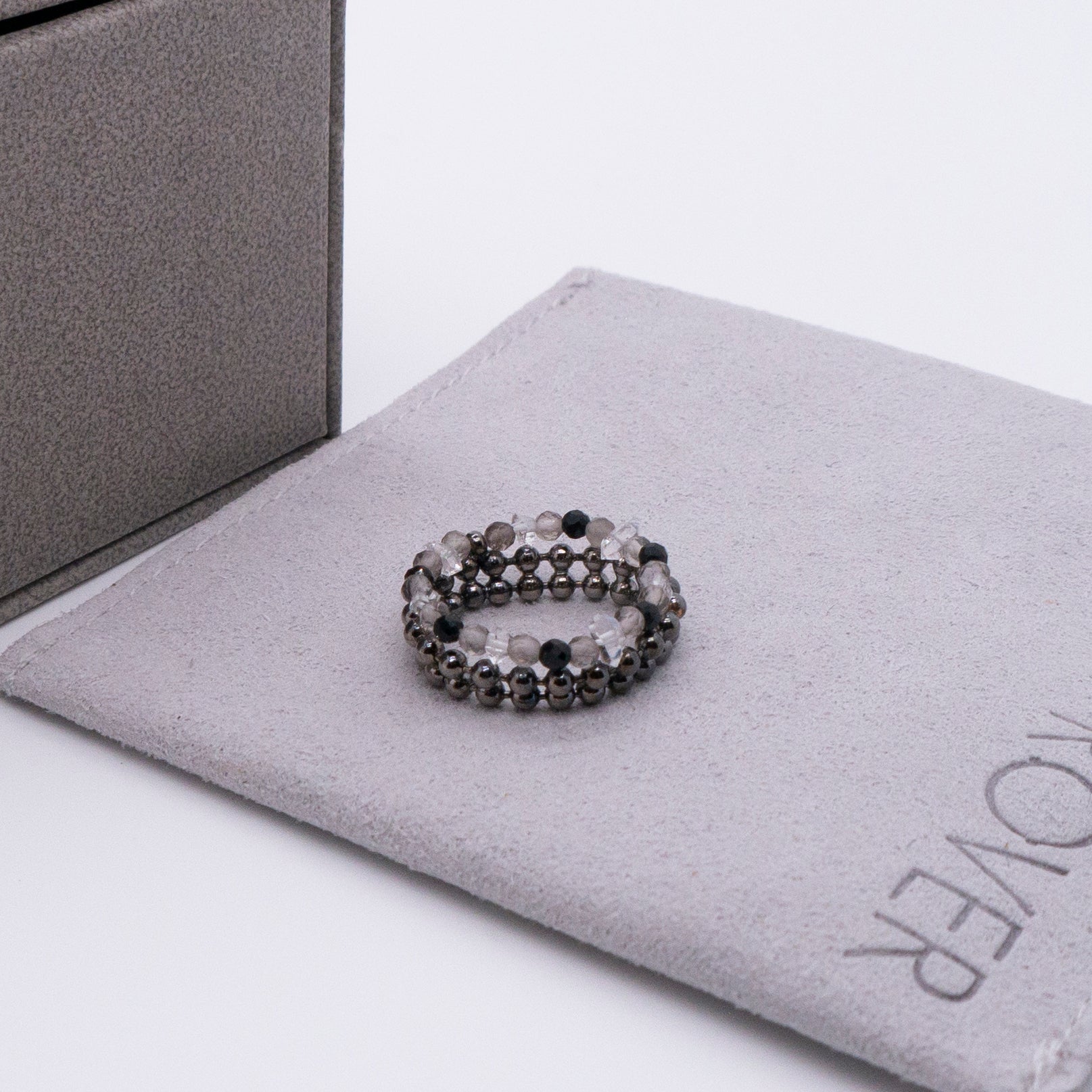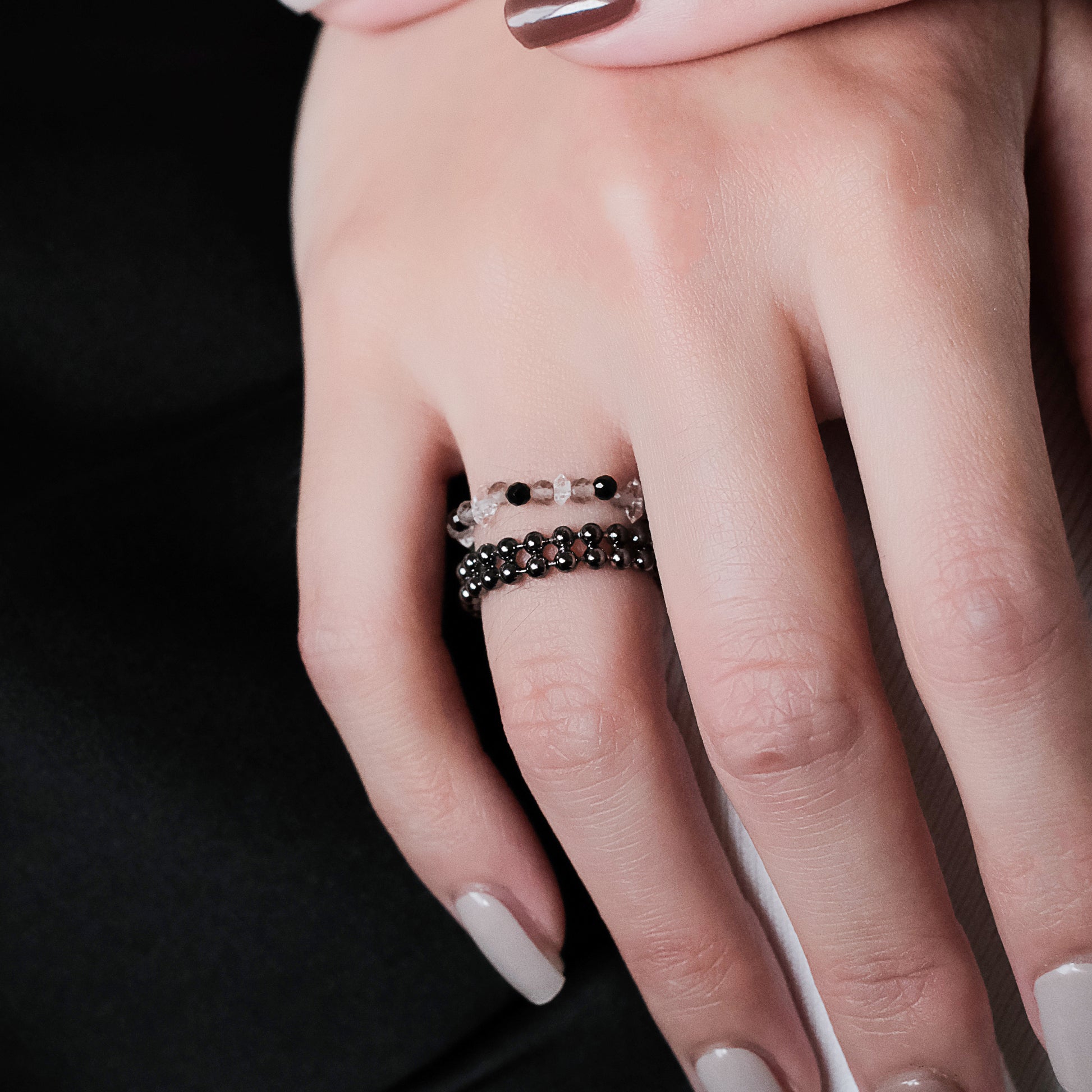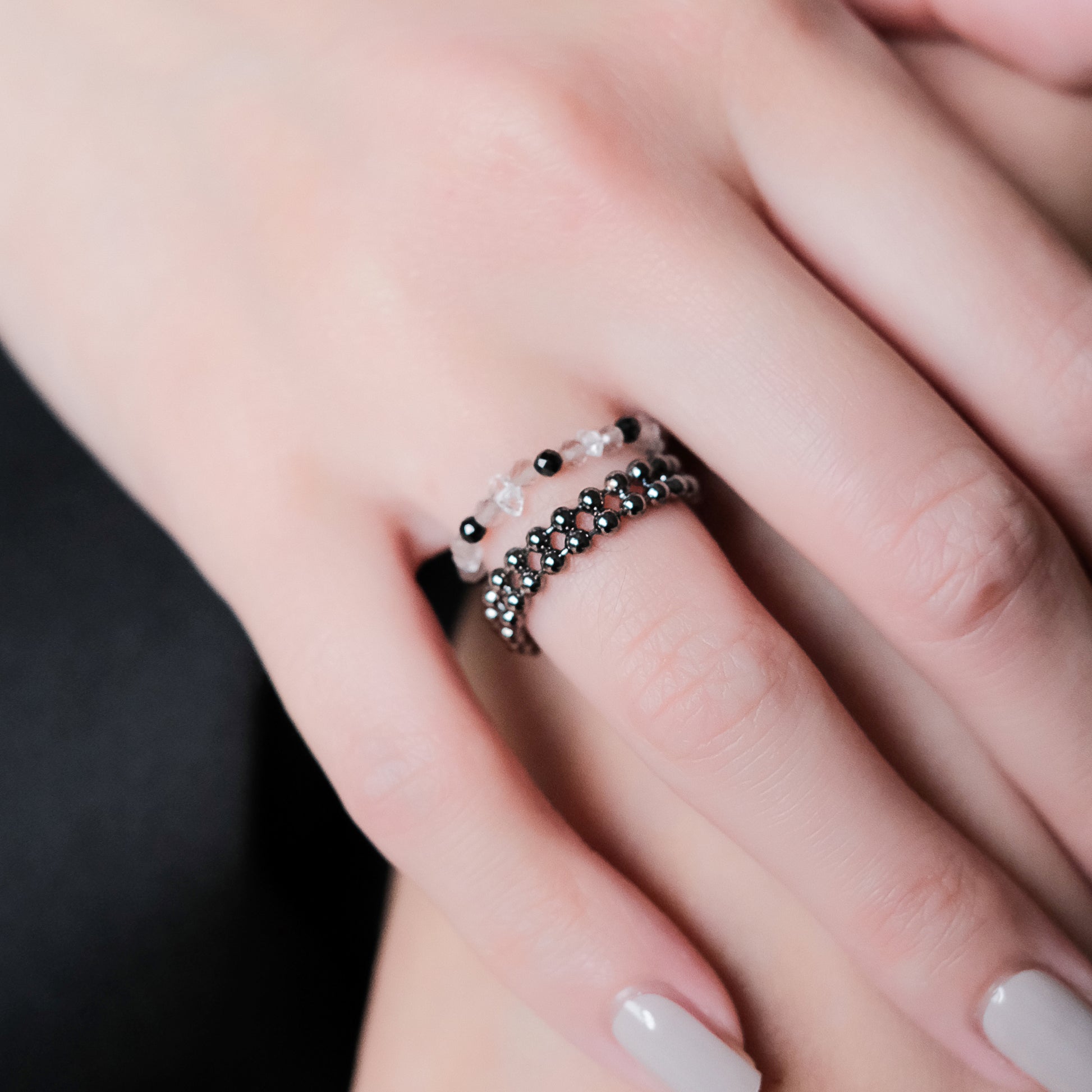 宇宙冰晶系列 胭紅薄霧 冰晶黑尖晶珠鍊戒指 - 厚鍍黑金
