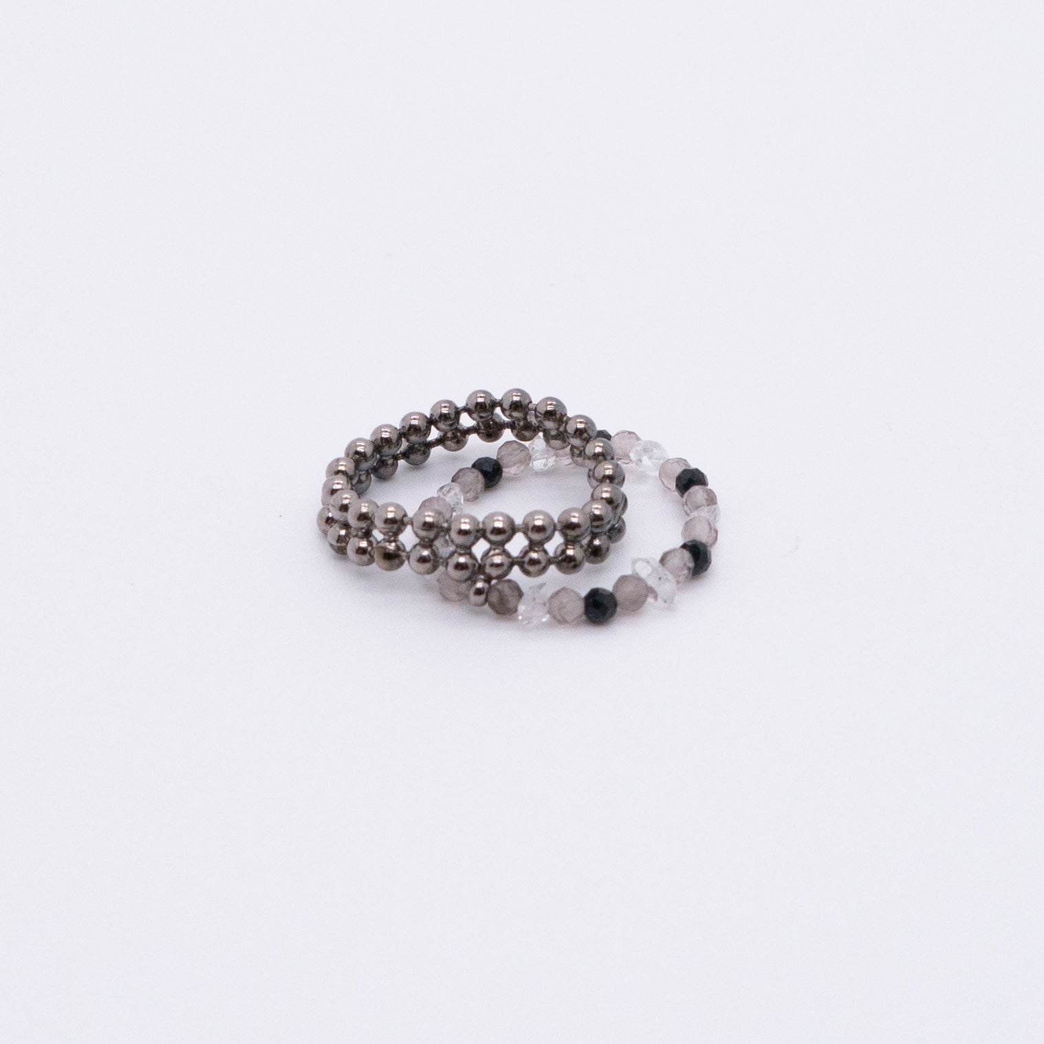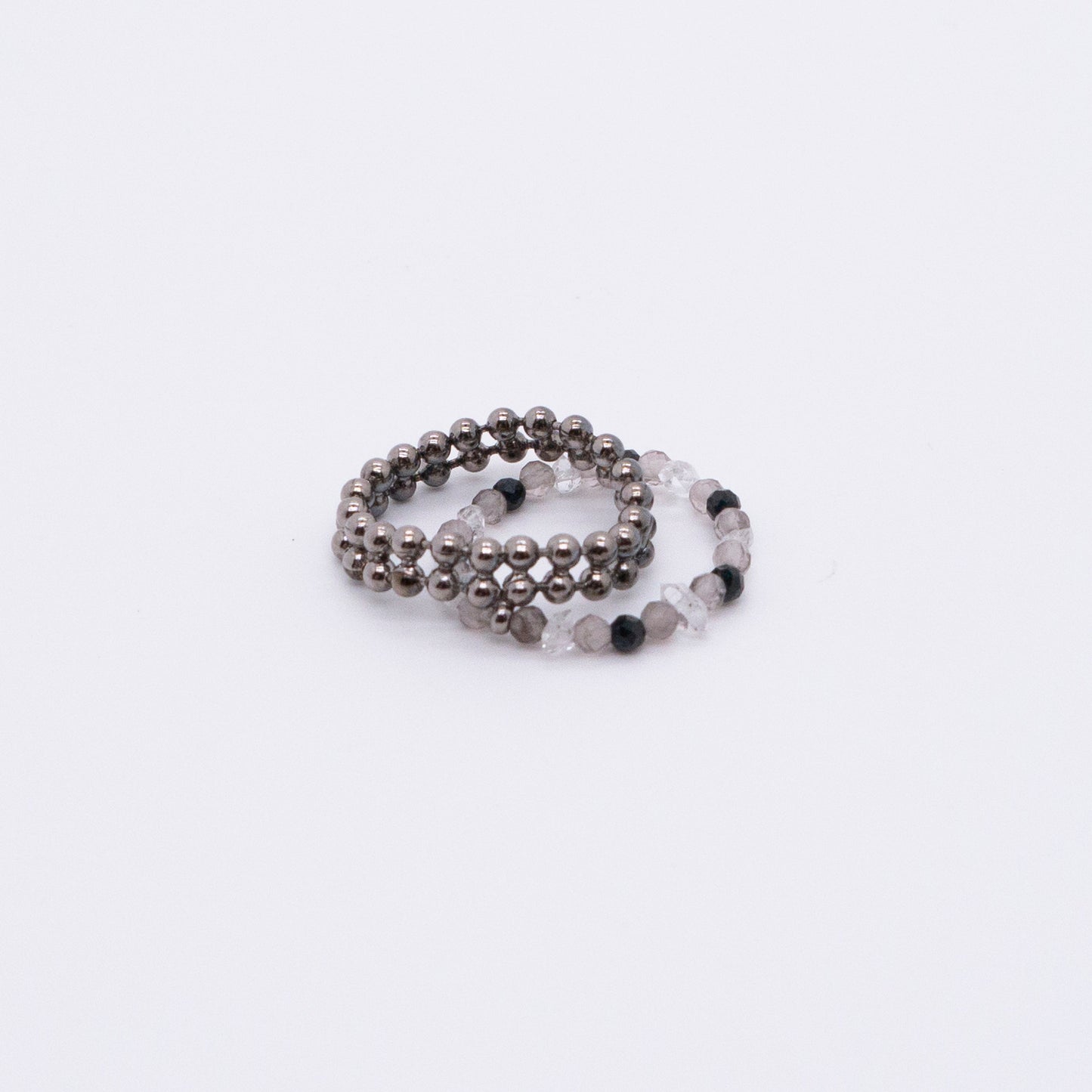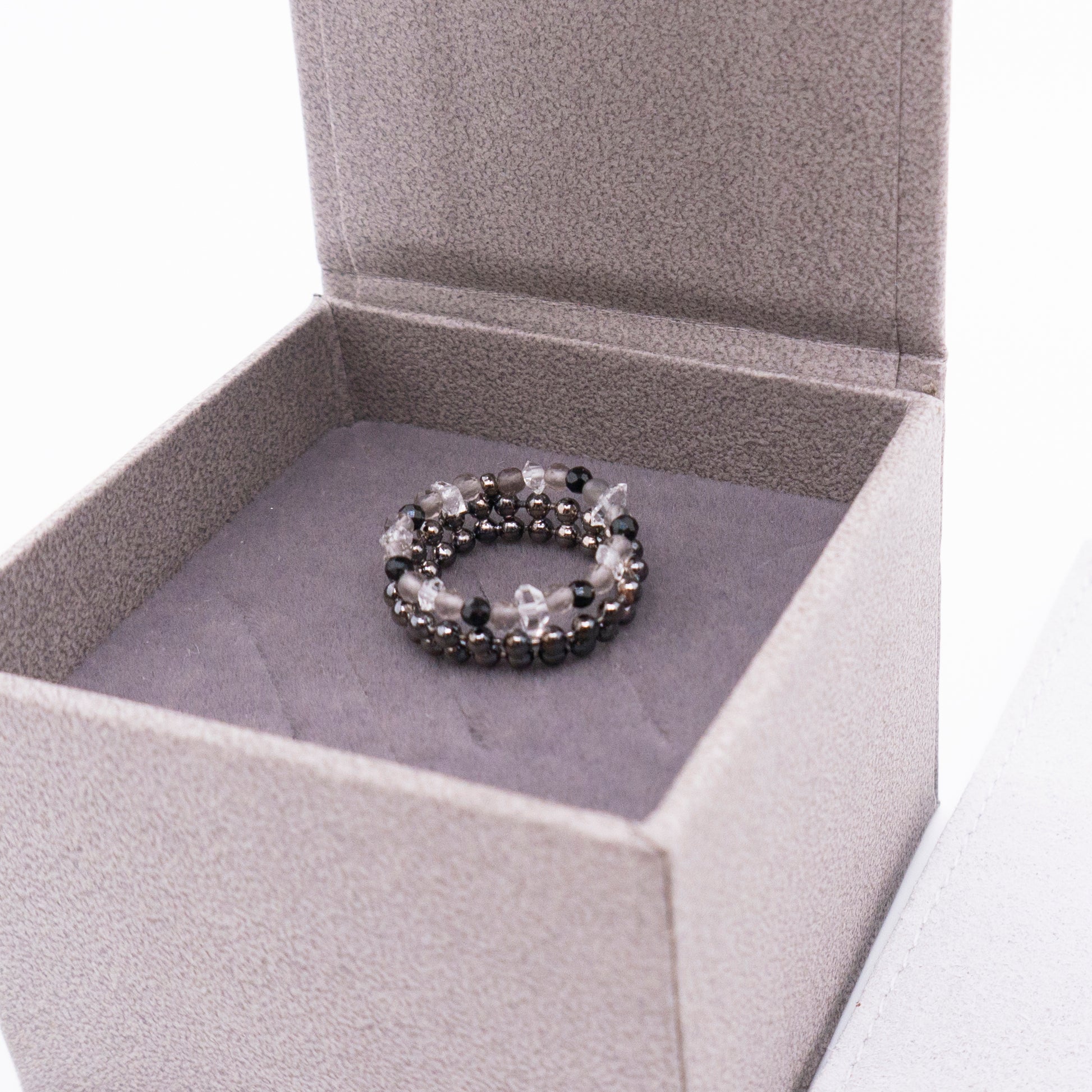 宇宙冰晶系列 胭紅薄霧 冰晶黑尖晶珠鍊戒指 - 厚鍍黑金