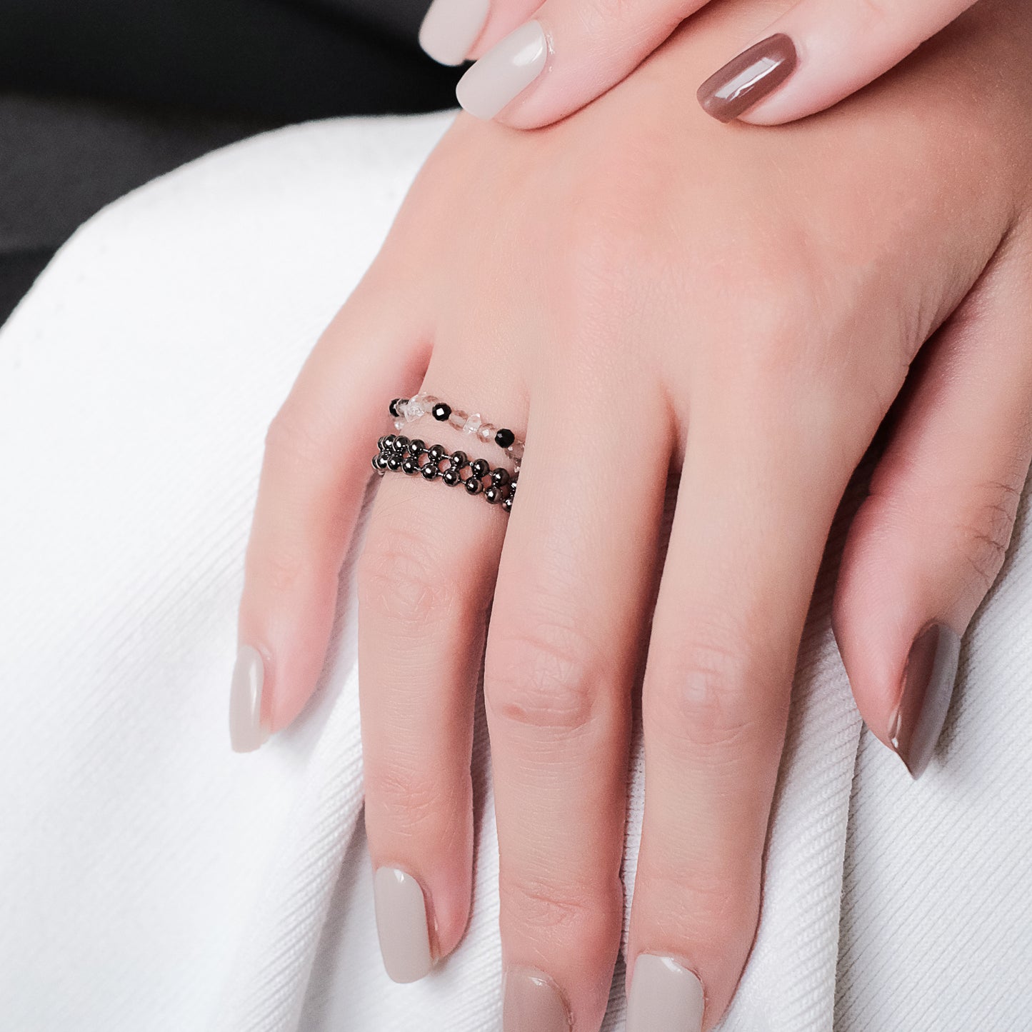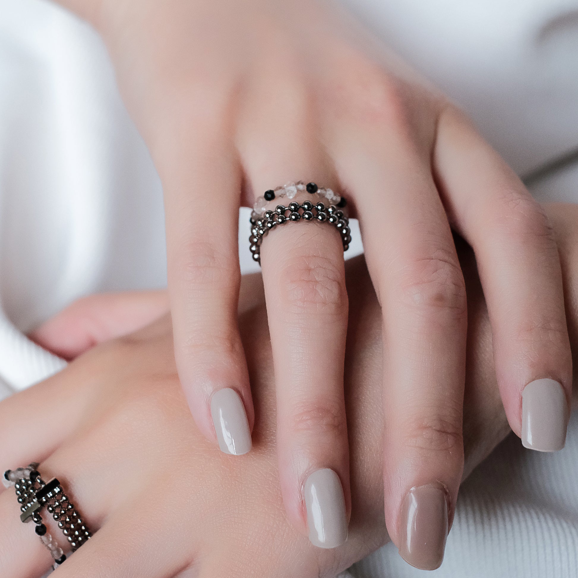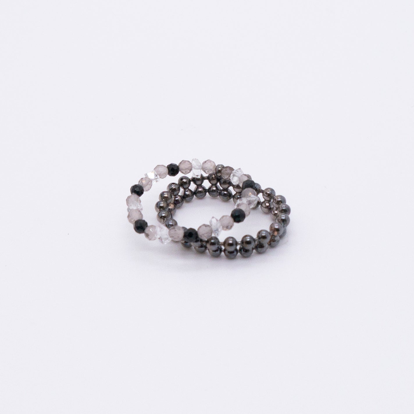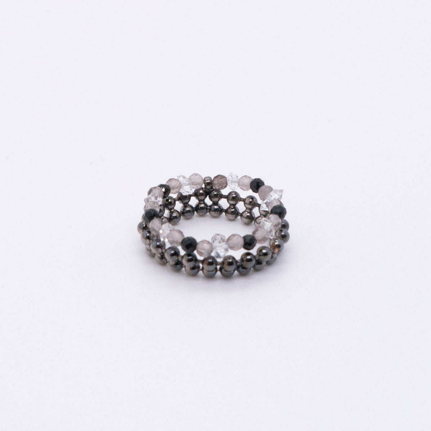 宇宙冰晶系列 胭紅薄霧 冰晶黑尖晶珠鍊戒指 - 厚鍍黑金