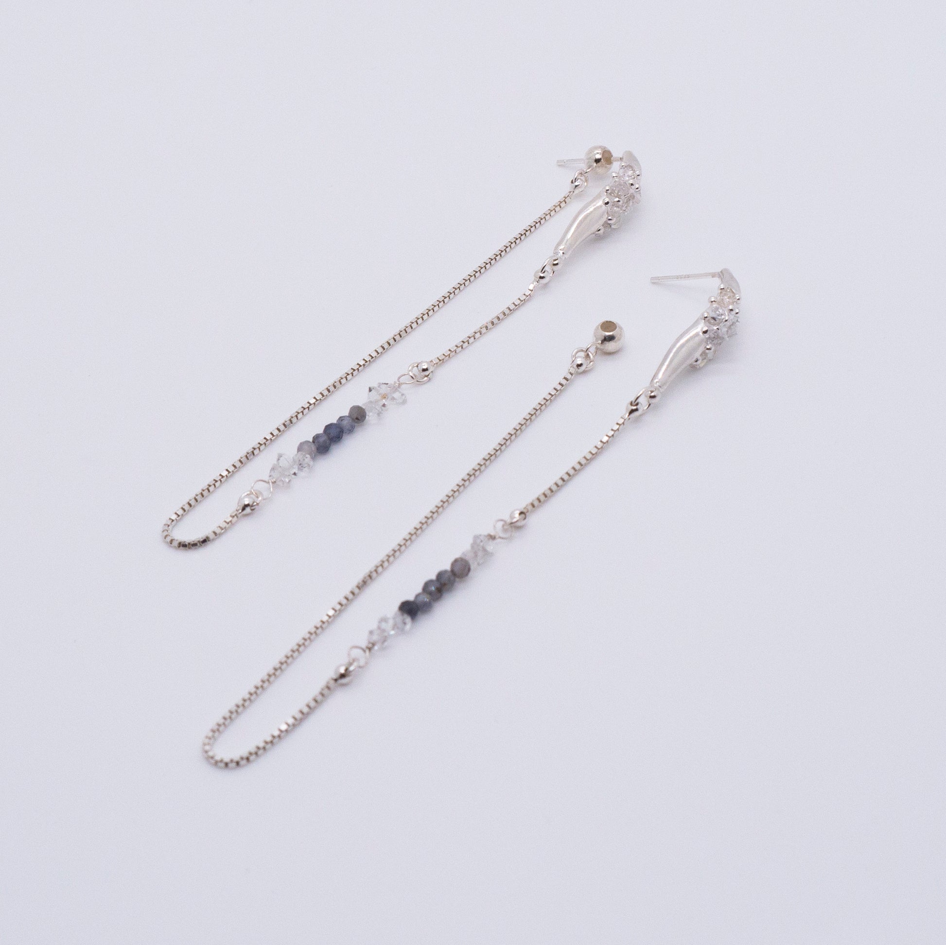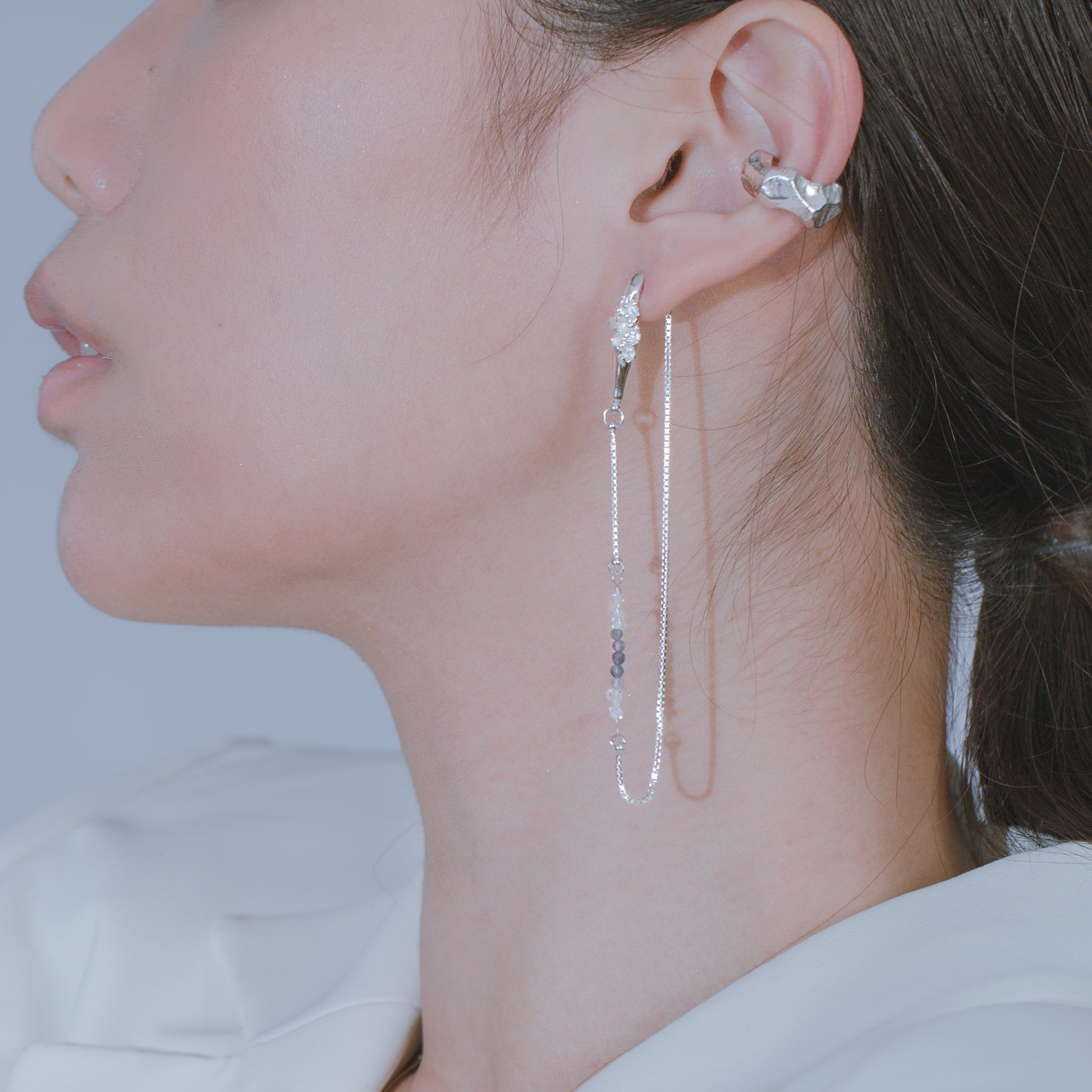 宇宙冰晶系列 冰晶垂墜耳鍊-純銀