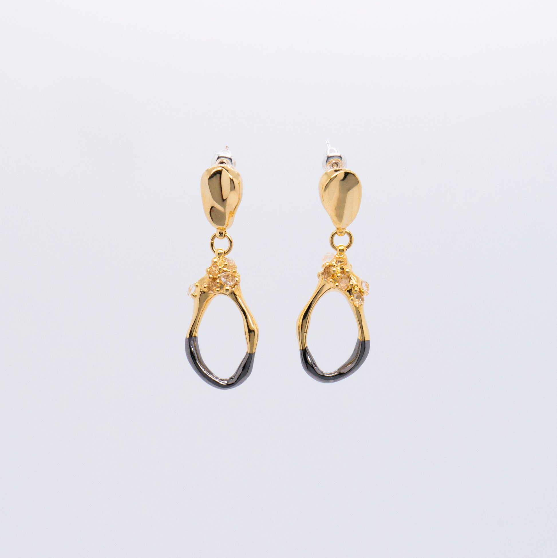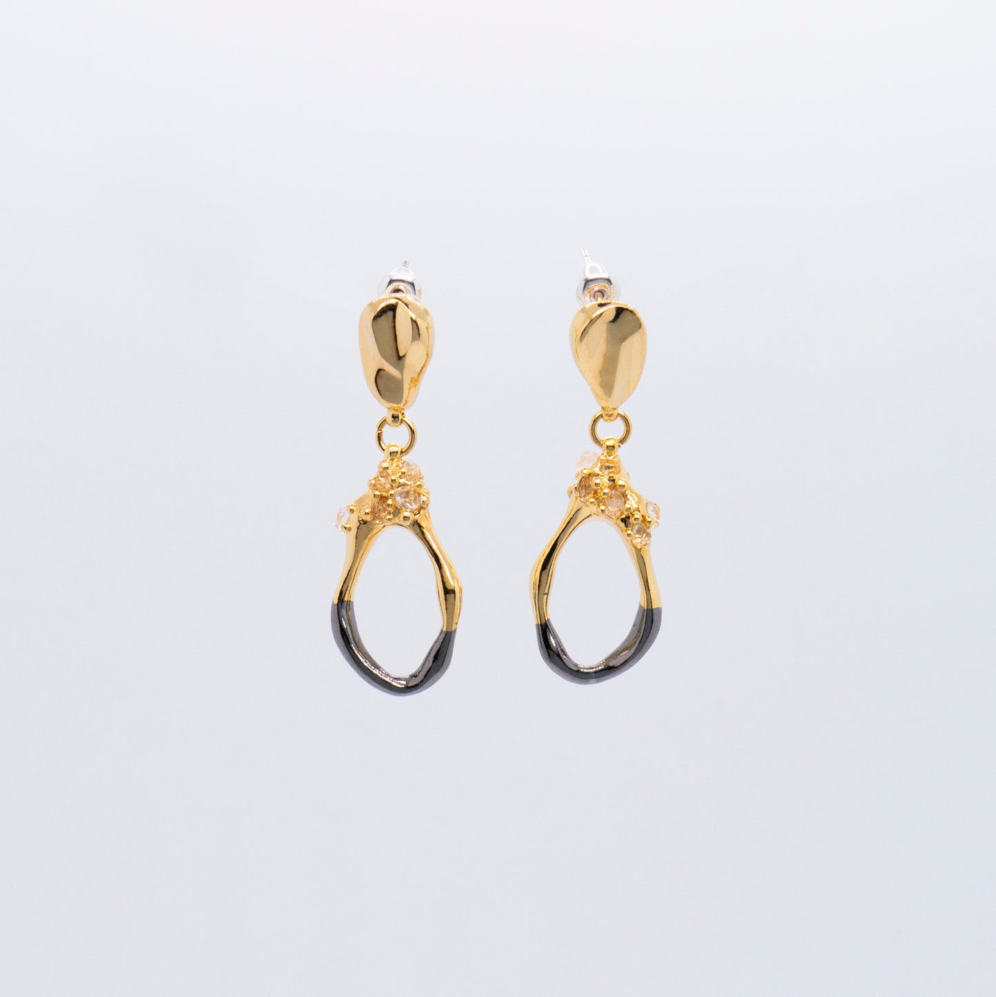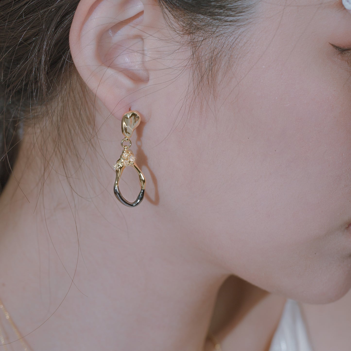 宇宙冰晶系列 冰晶垂墜耳環-厚鍍金黑雙色 (S)
