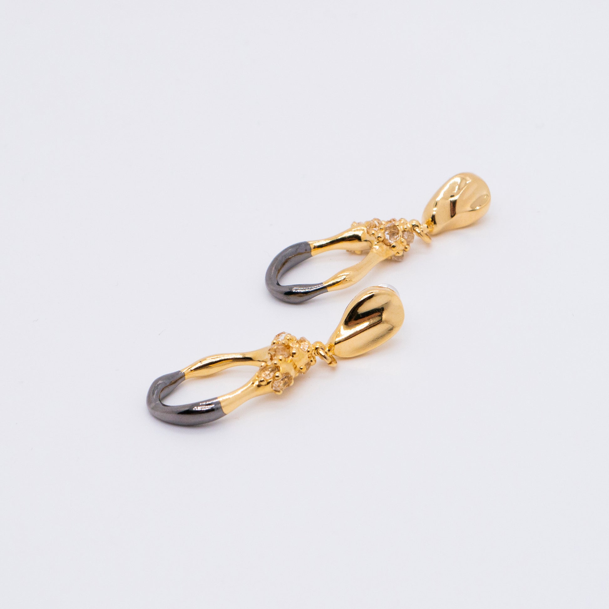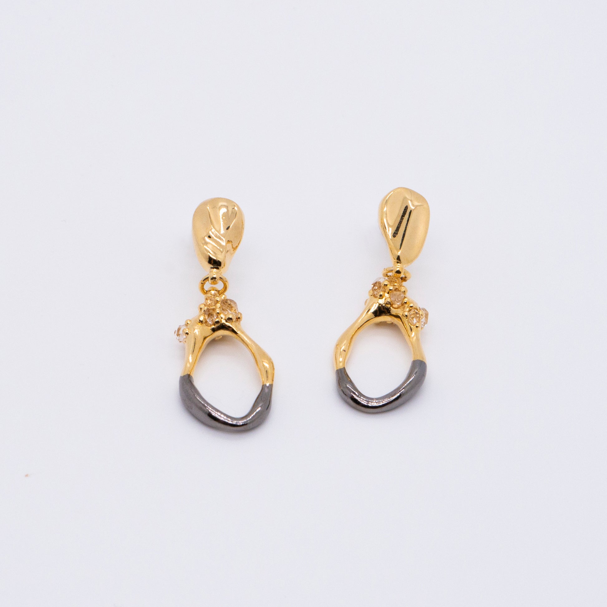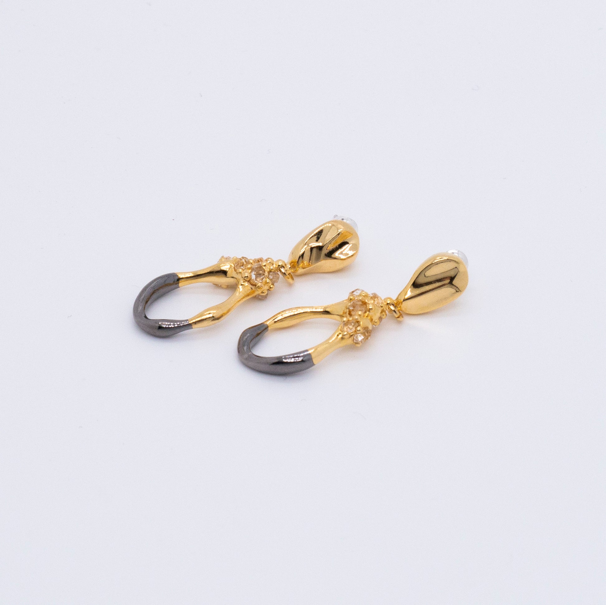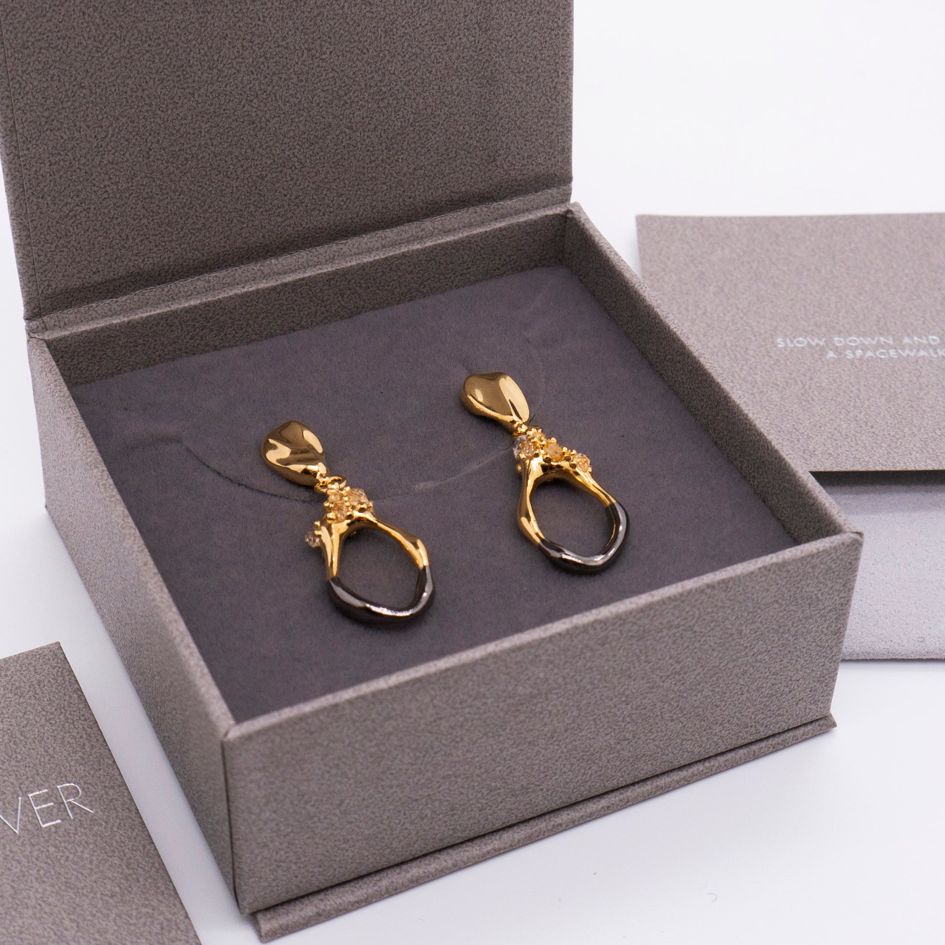 宇宙冰晶系列 冰晶垂墜耳環-厚鍍金黑雙色 (S)