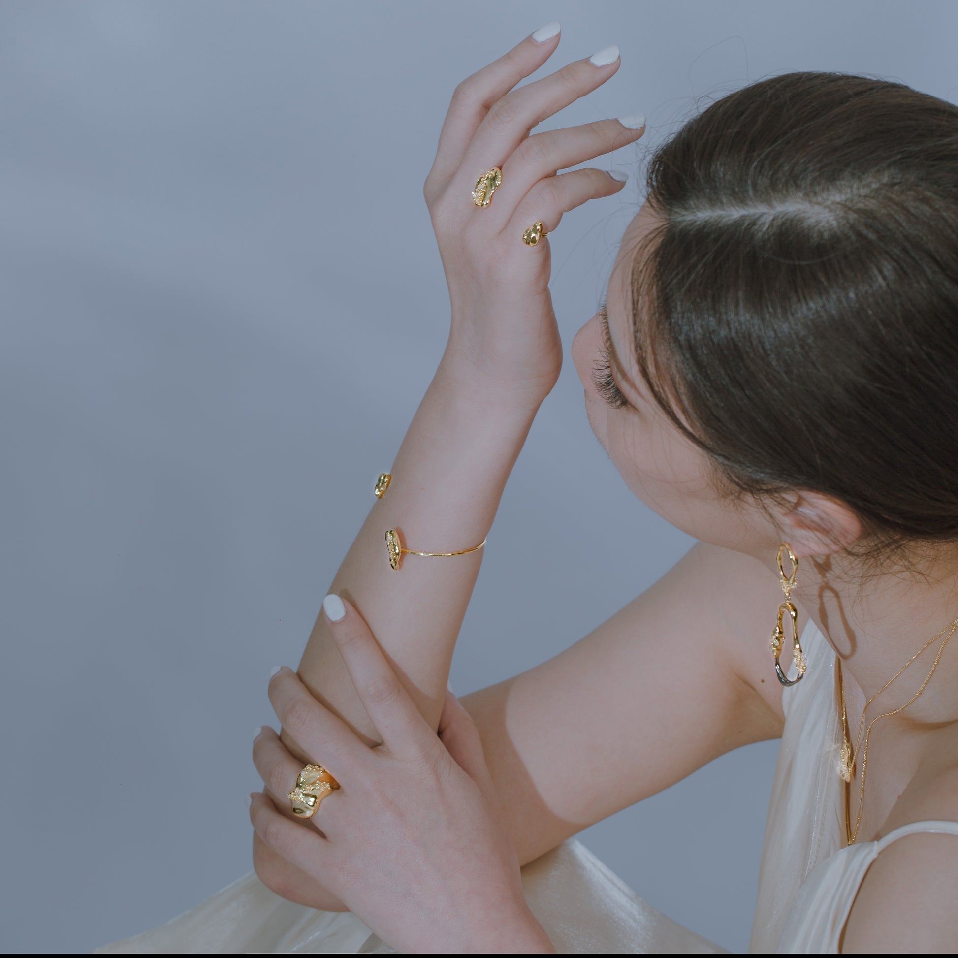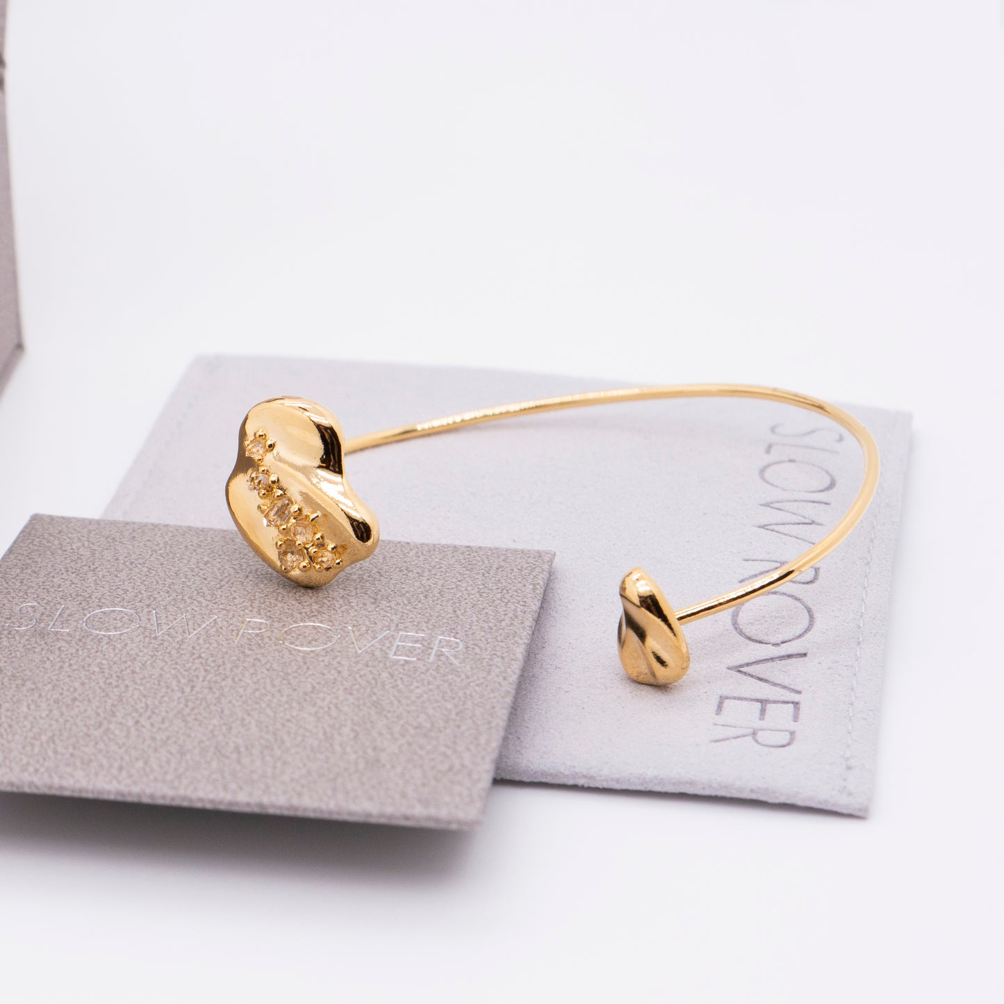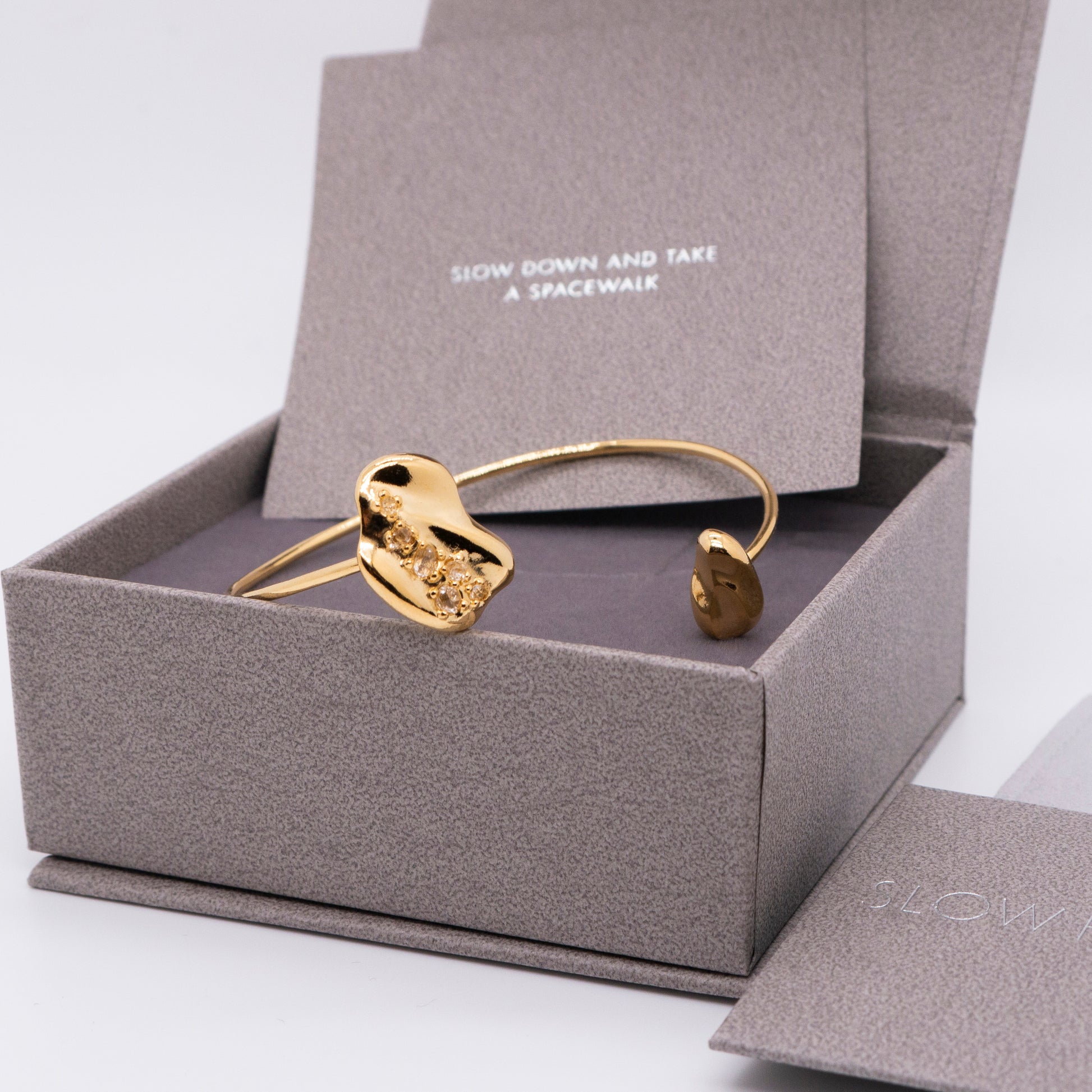 宇宙冰晶系列 冰晶波紋開口手環-厚鍍18K金