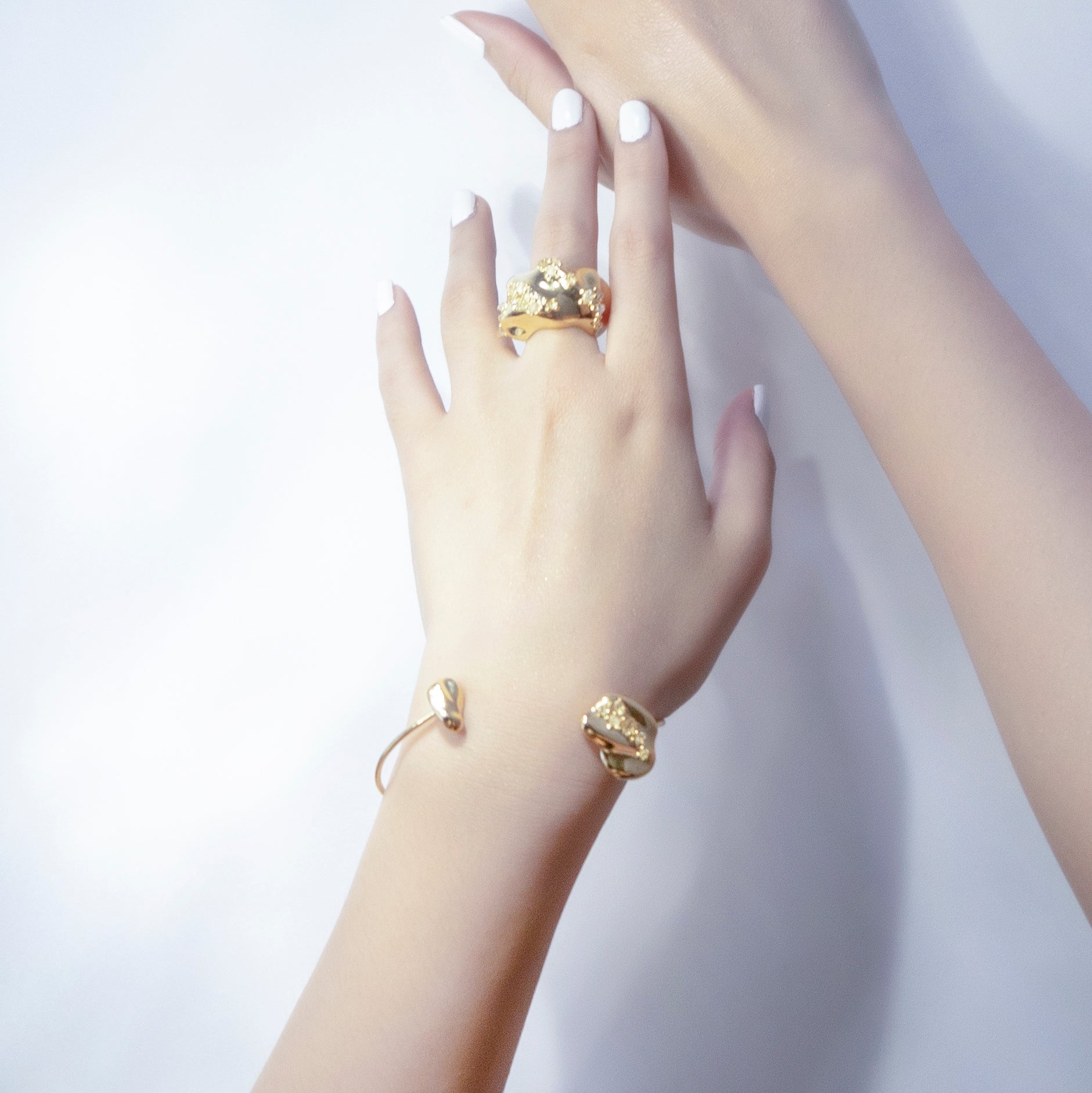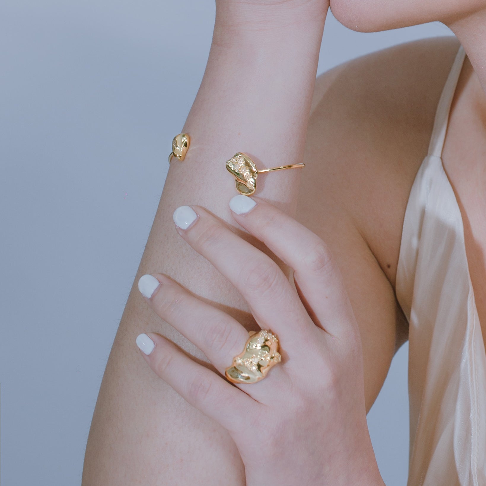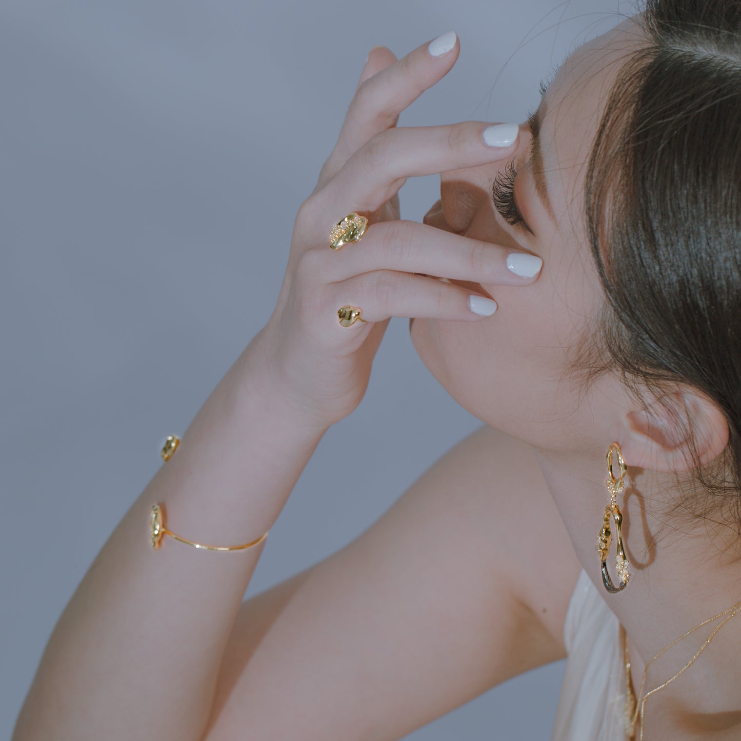 宇宙冰晶系列 冰晶波紋開口手環-厚鍍18K金