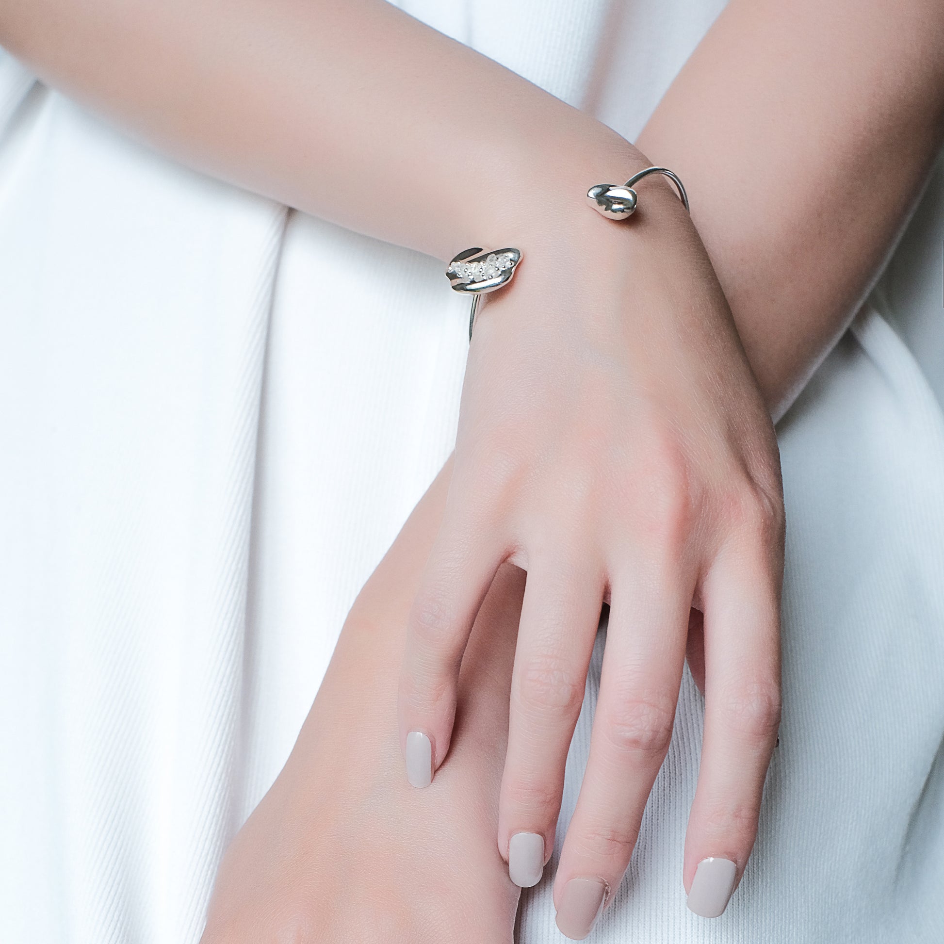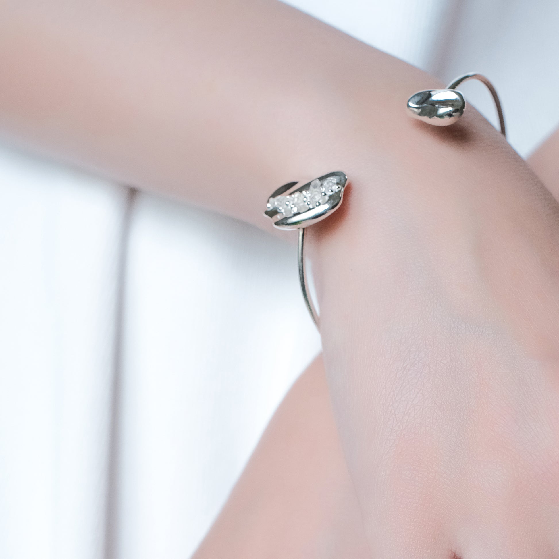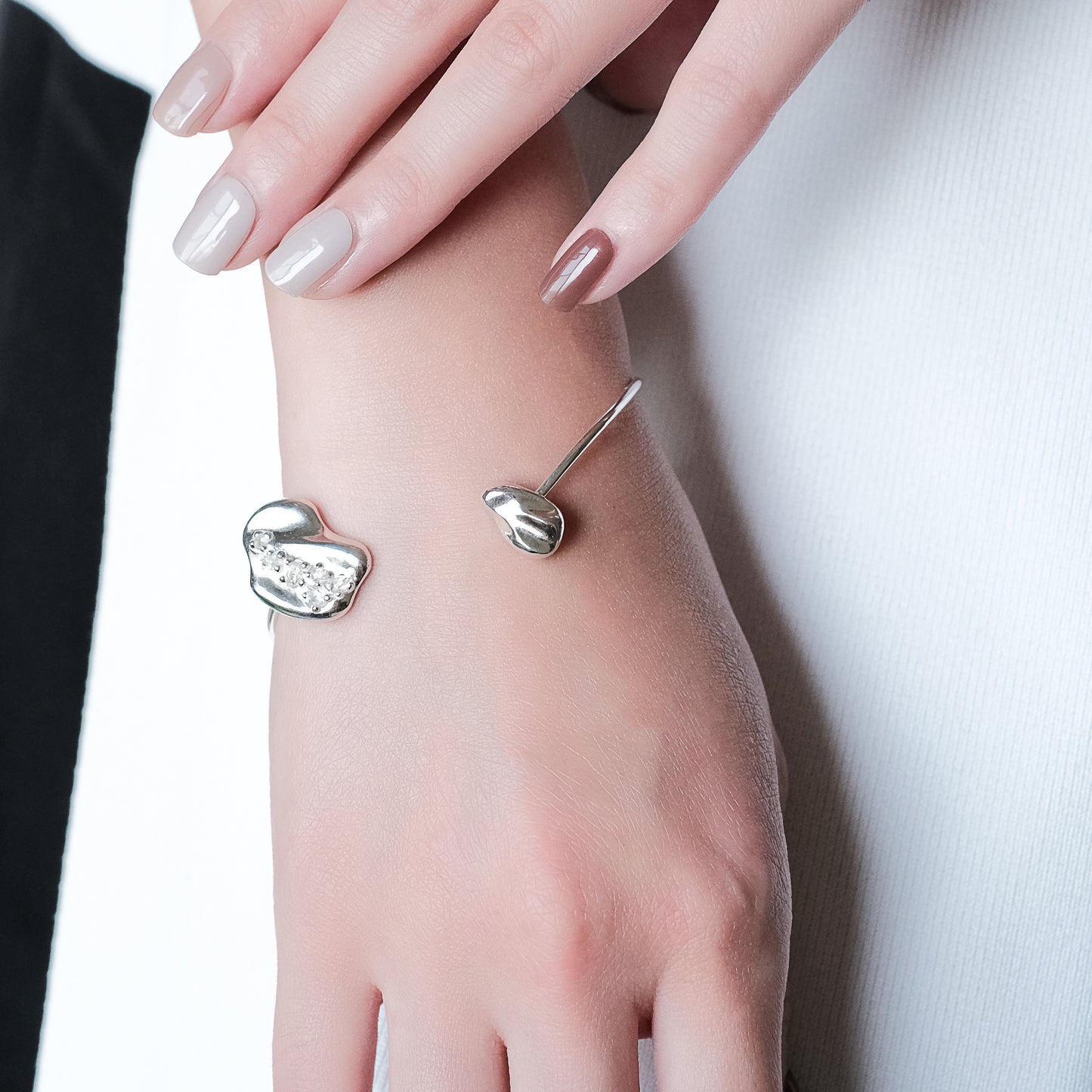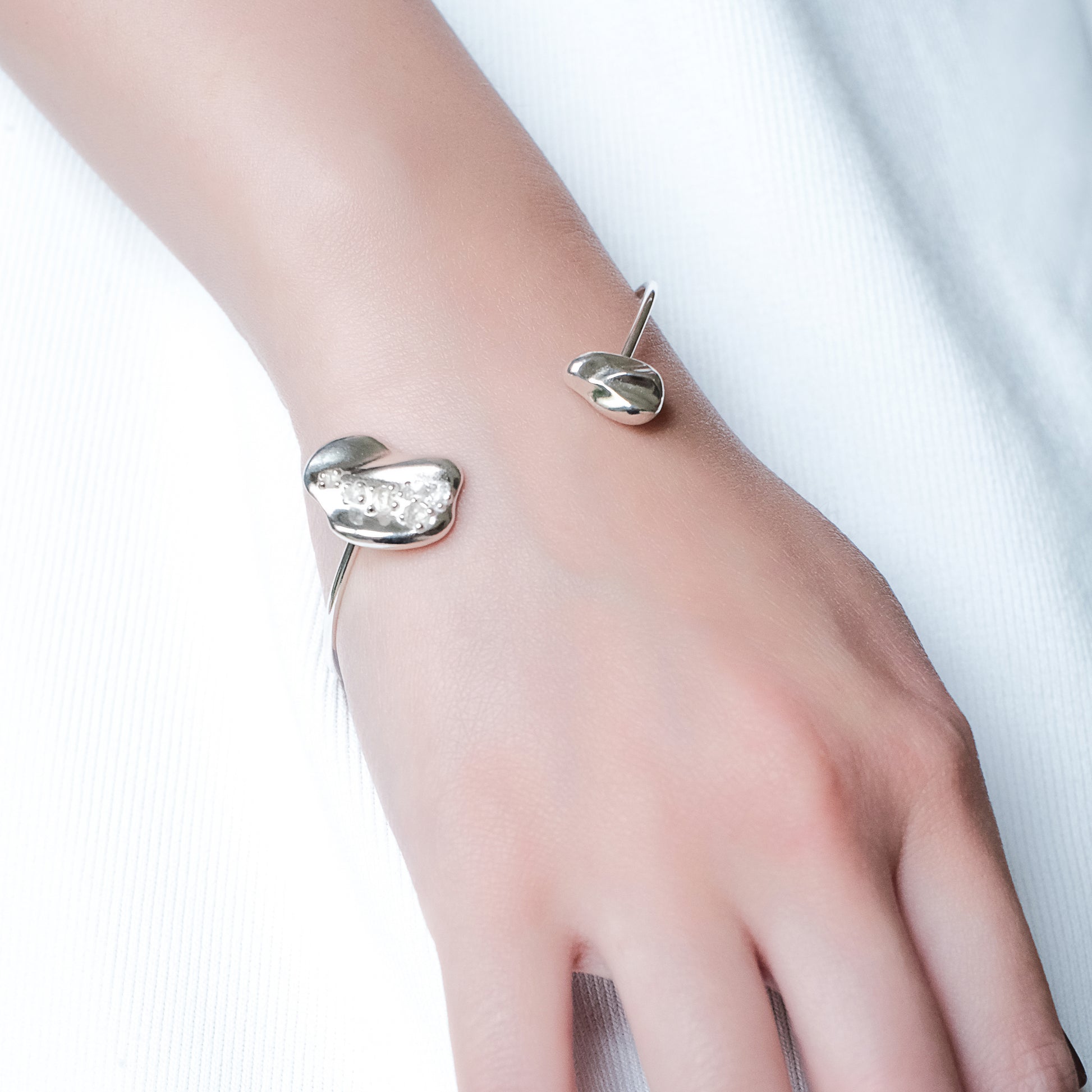 宇宙冰晶系列 冰晶波紋開口手環-純銀