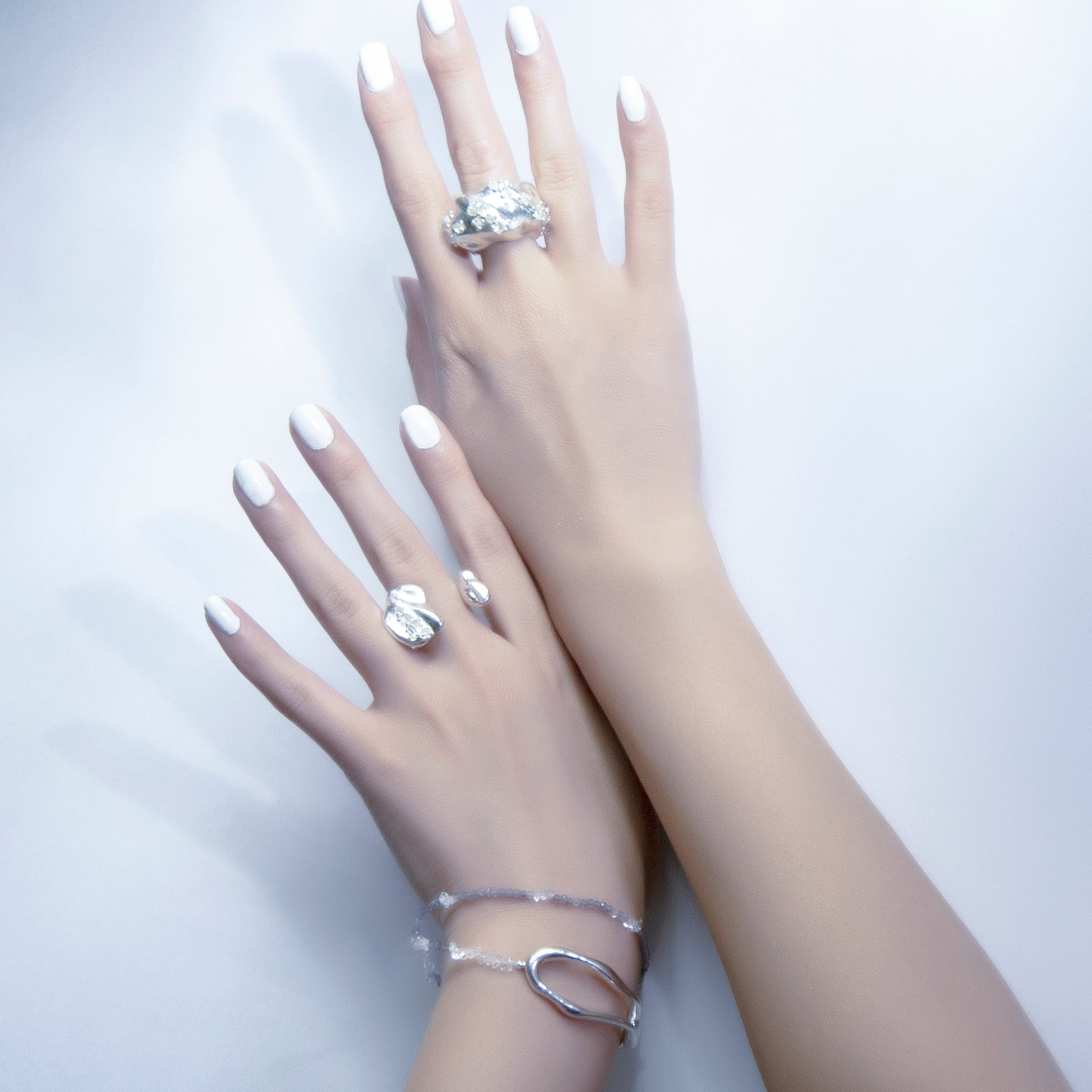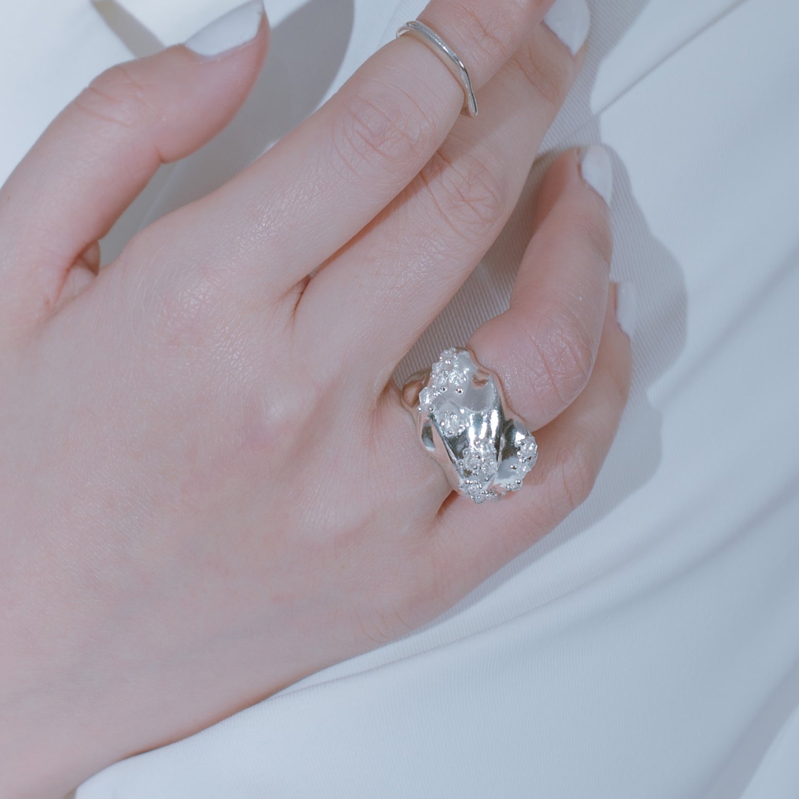 宇宙冰晶 冰晶耳夾/戒指-純銀