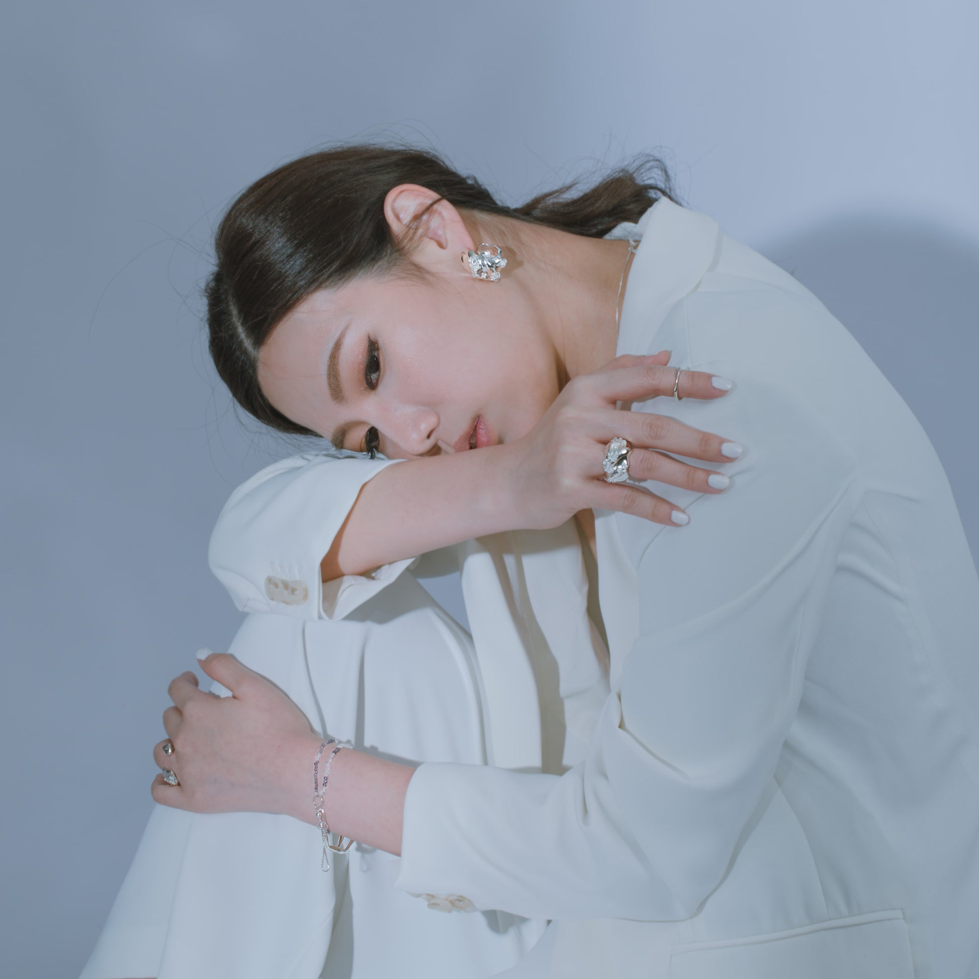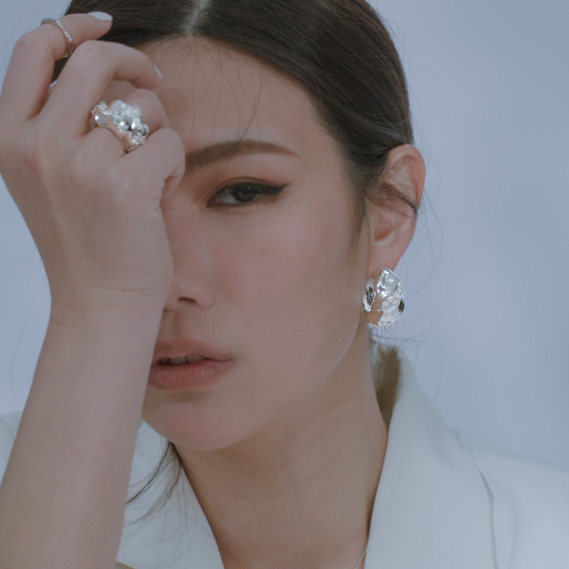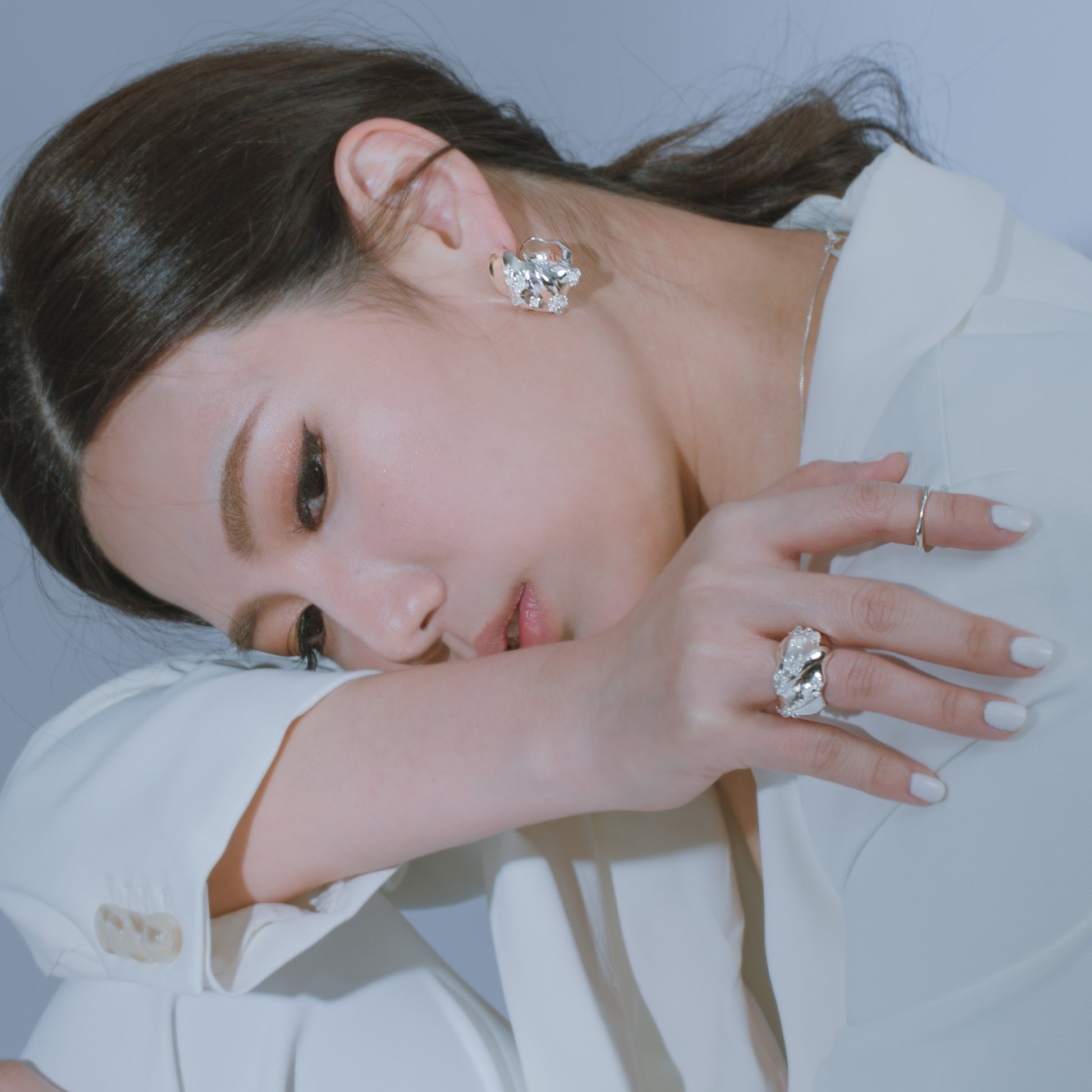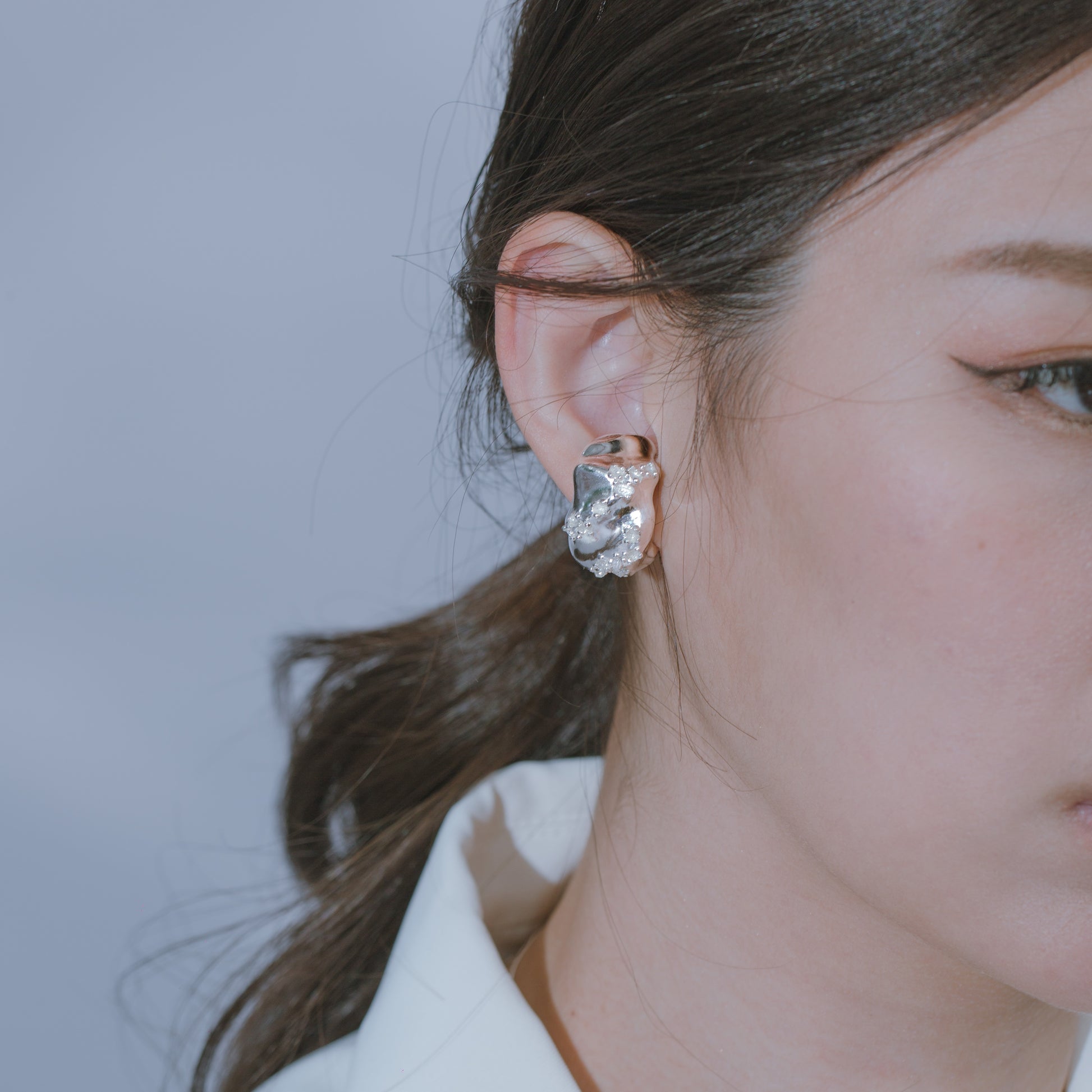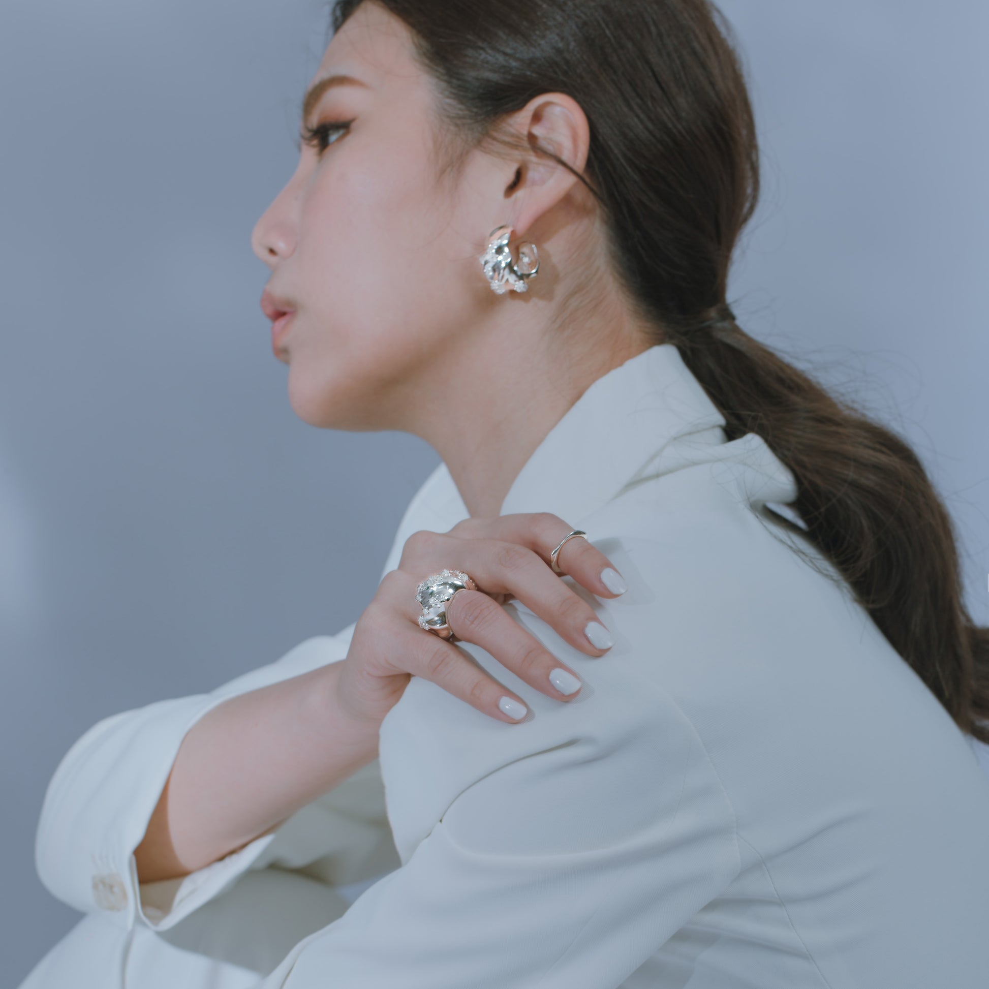 宇宙冰晶系列 冰晶耳夾/戒指-純銀