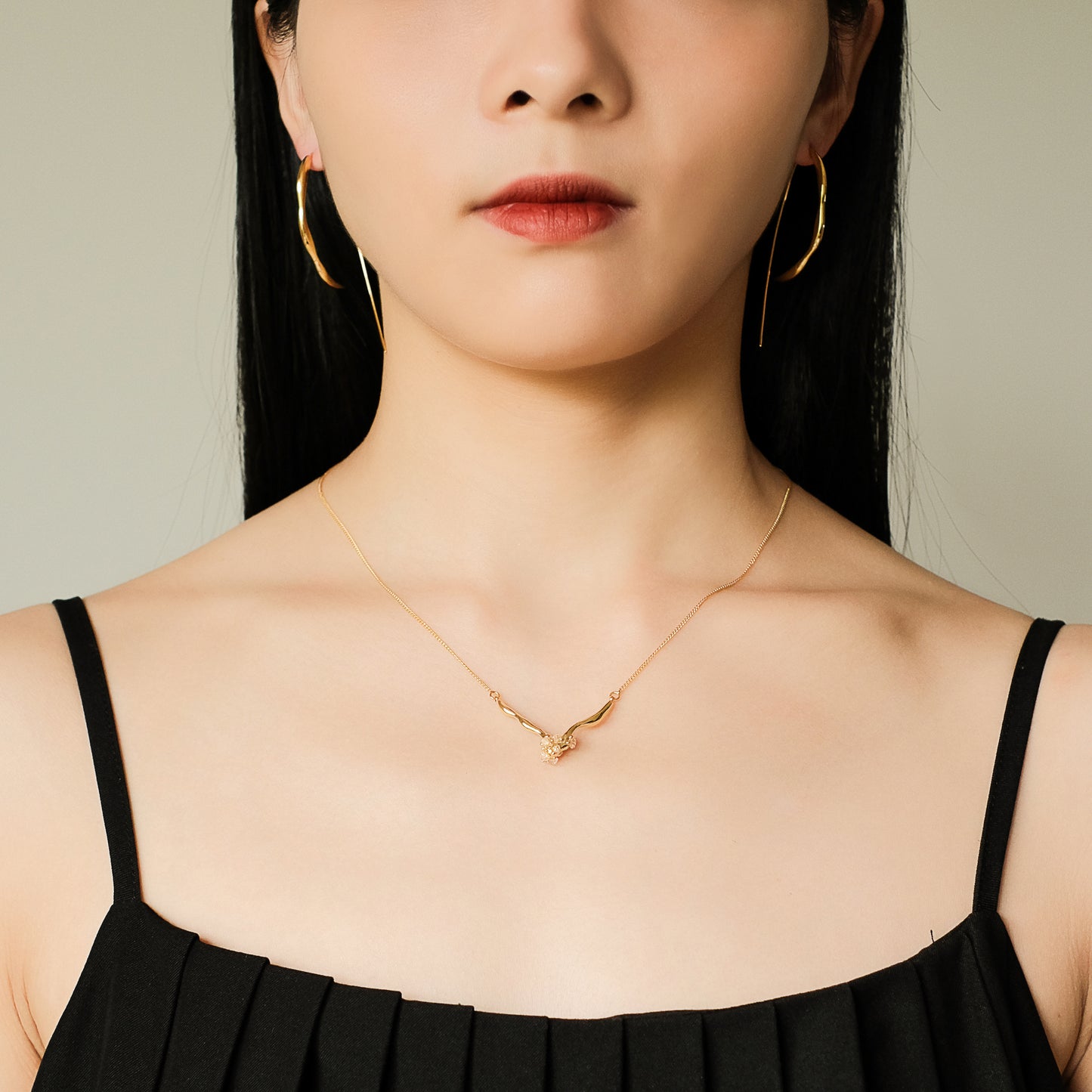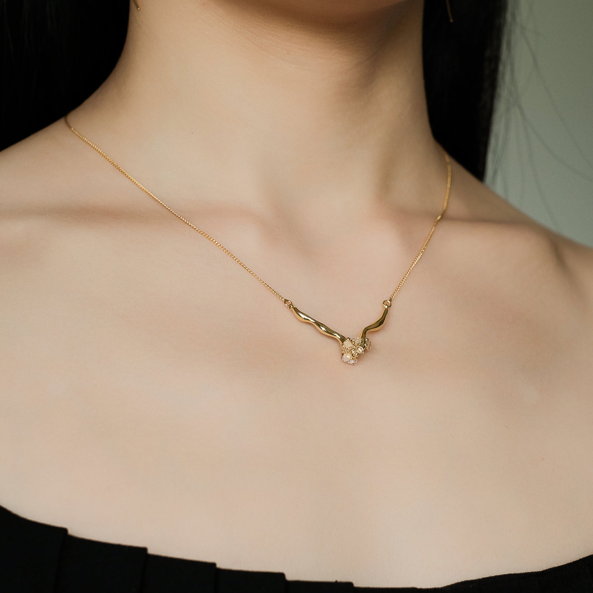 宇宙冰晶系列 - 胭紅薄霧 冰晶V項鍊 - 厚鍍18K金